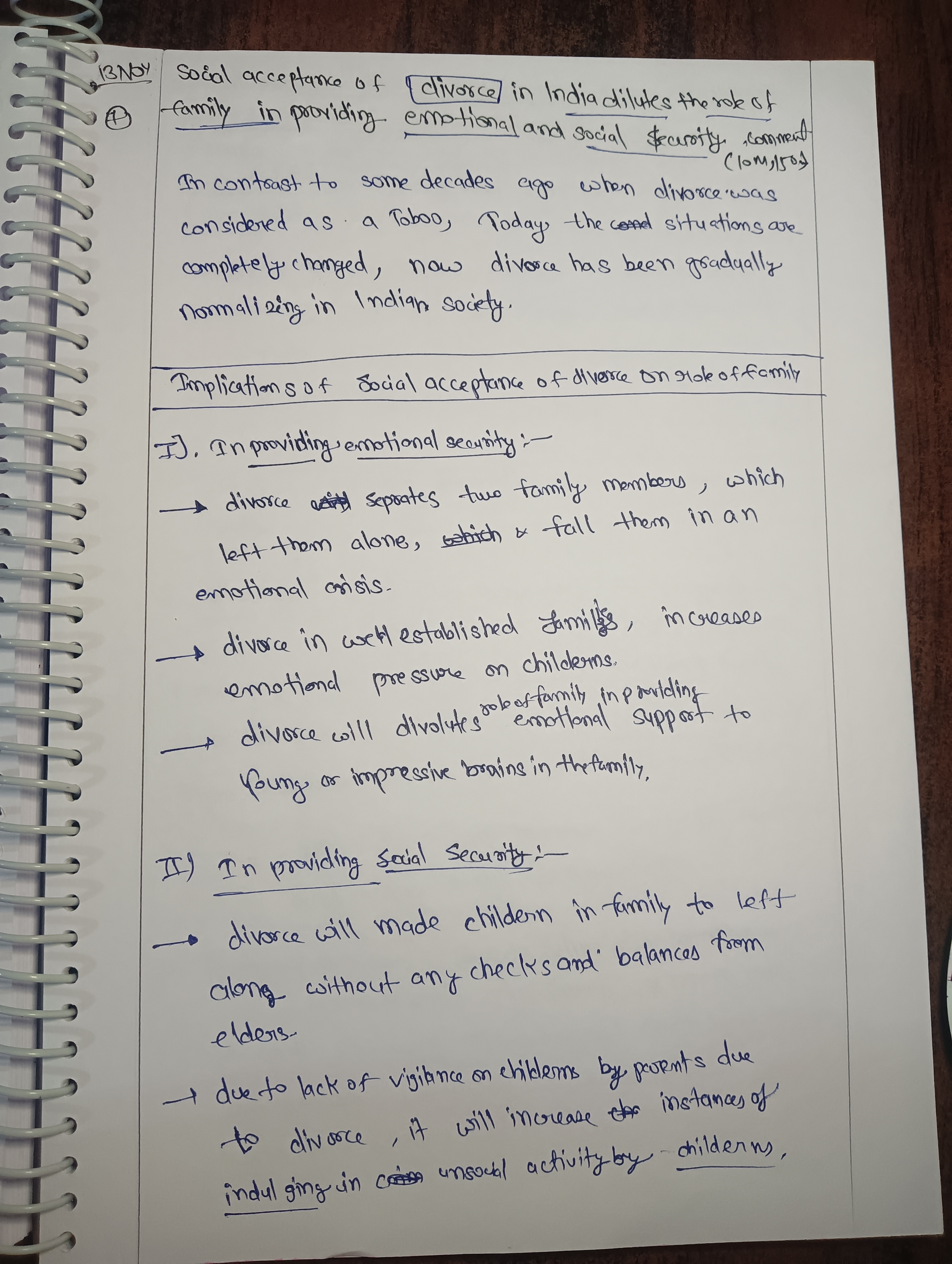 - Discuss how the social acceptance of divorce in India dilutes the role of family in providing social security.