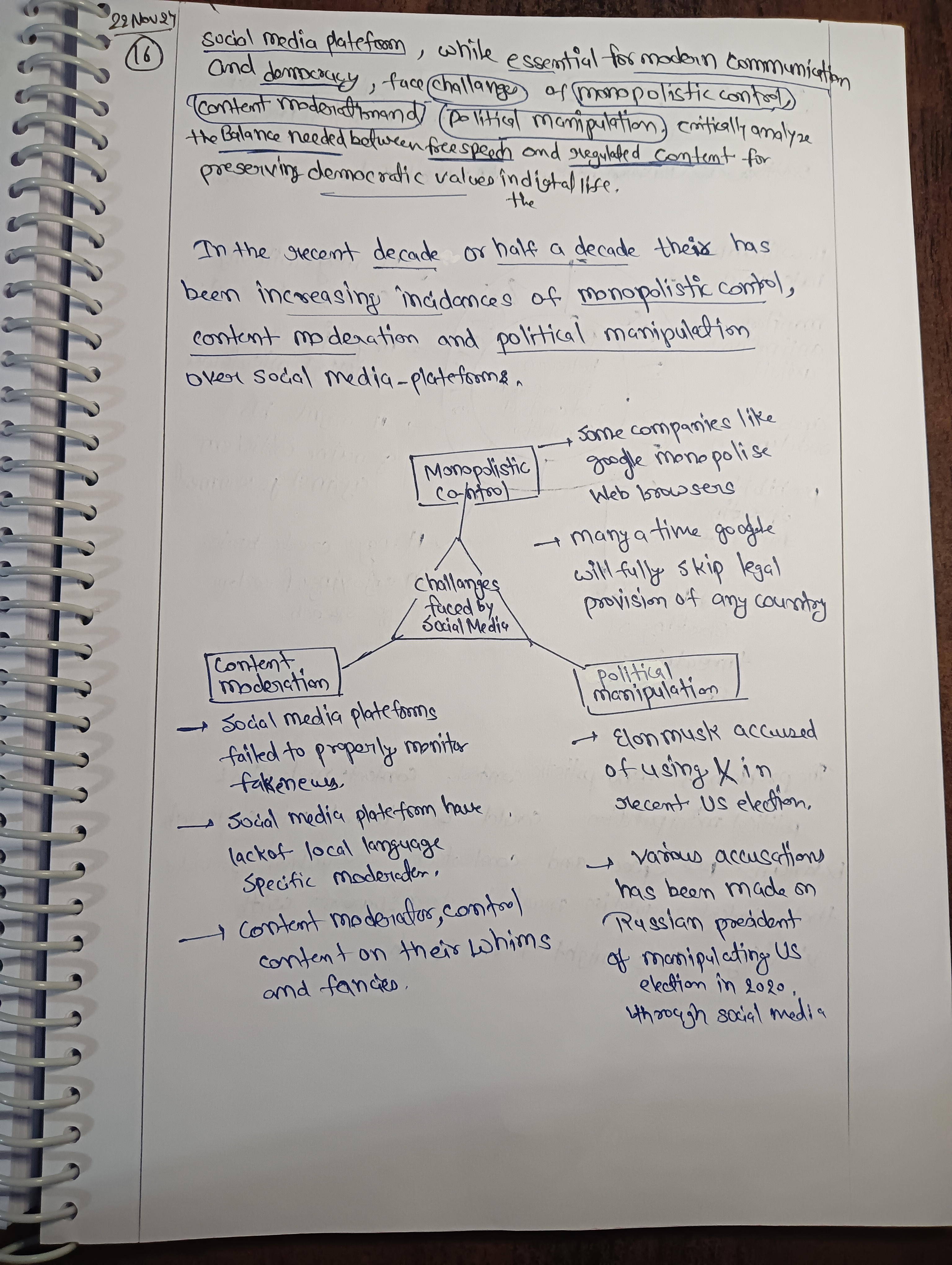 Striking a balance between free speech and content regulation is essential for preserving democracy in the digital age. Adopting global best practices like the EU’s Digital Services Act, 2022 ensures safe, inclusive, and transparent online spaces. Promoting transparency, accountability, and collaboration will help social media platforms support democratic values while mitigating harm.