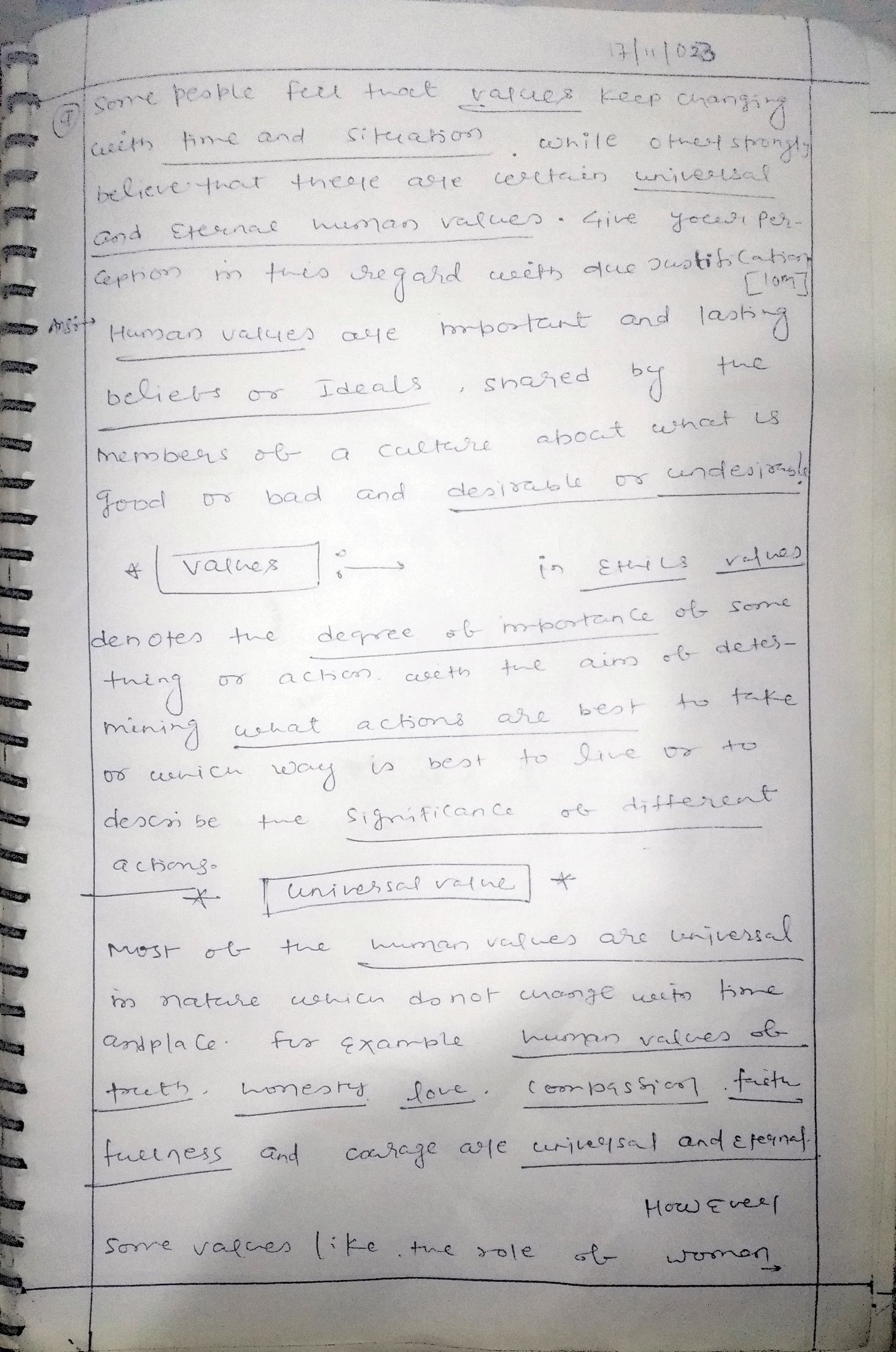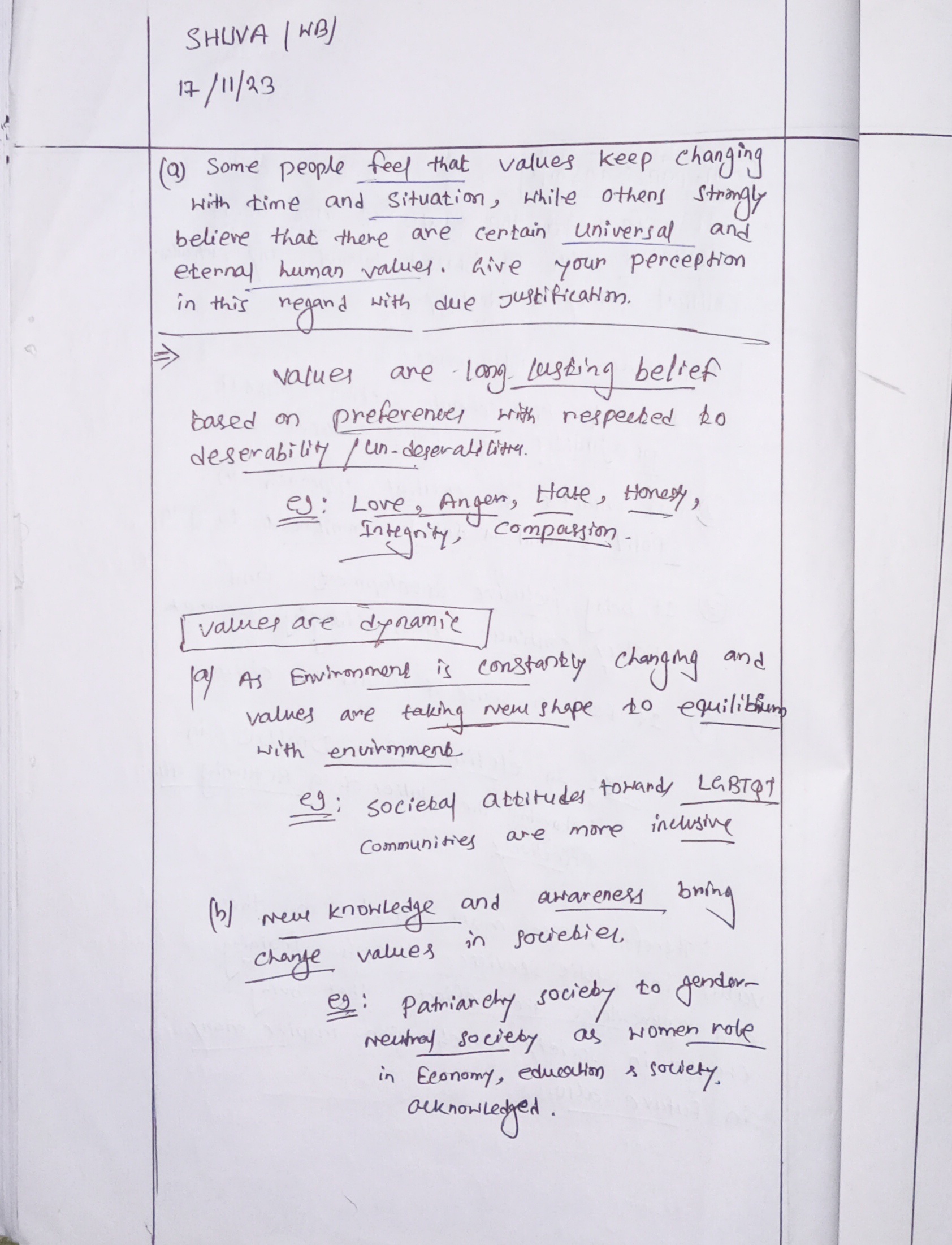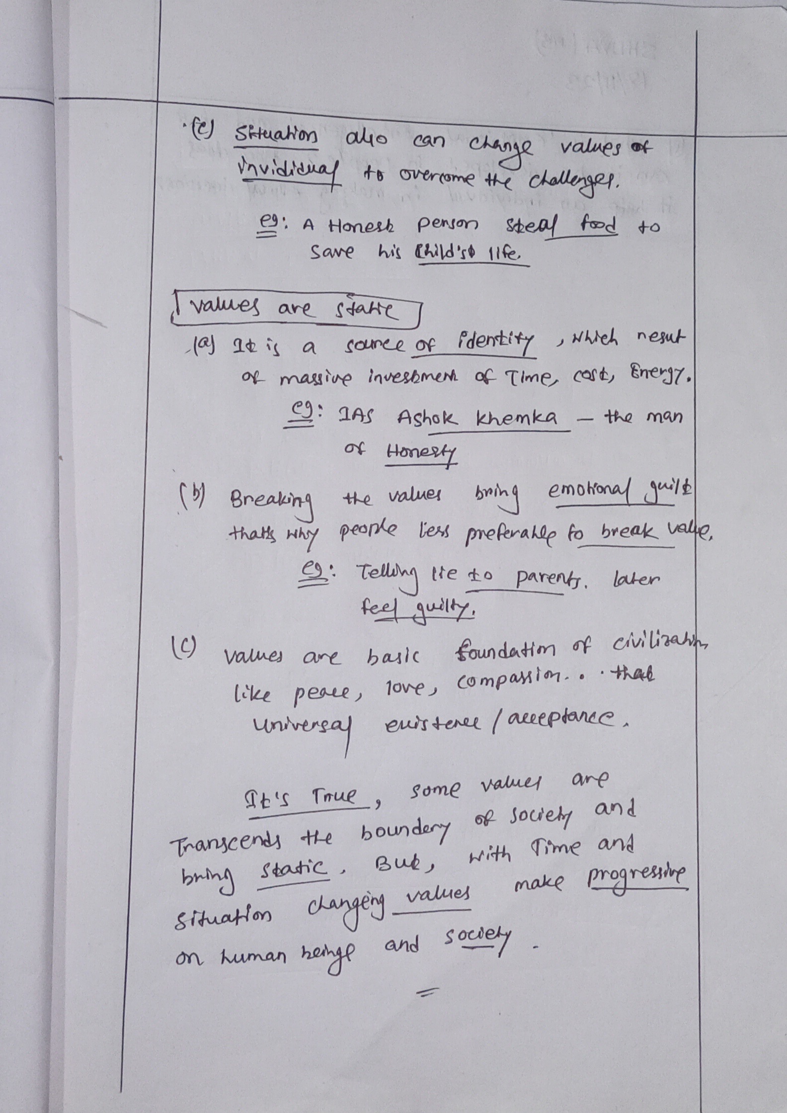 - Mention about dynamic and universal values.