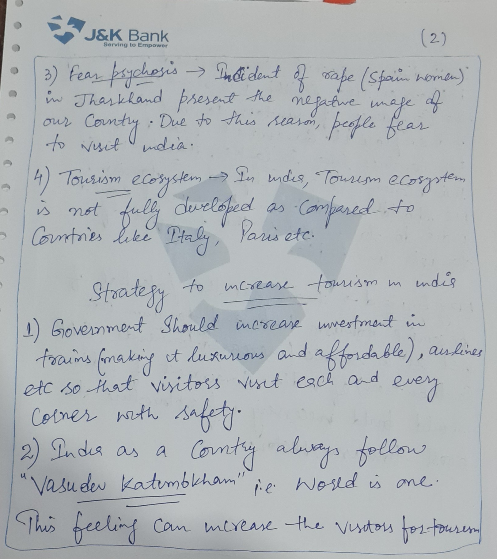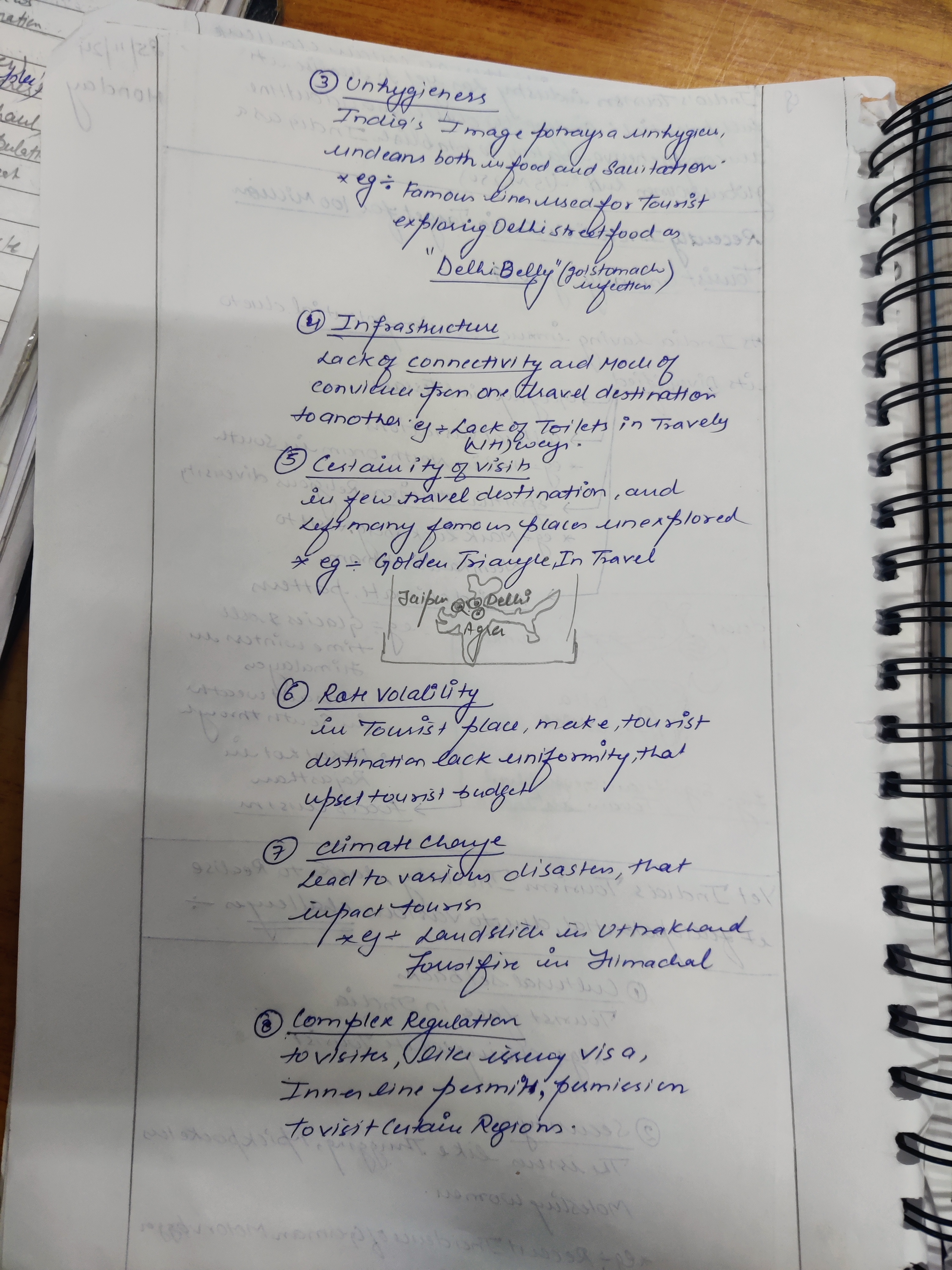 For example: Northeast India, with immense natural beauty, suffers from inadequate connectivity and a lack of quality accommodations, deterring tourists.