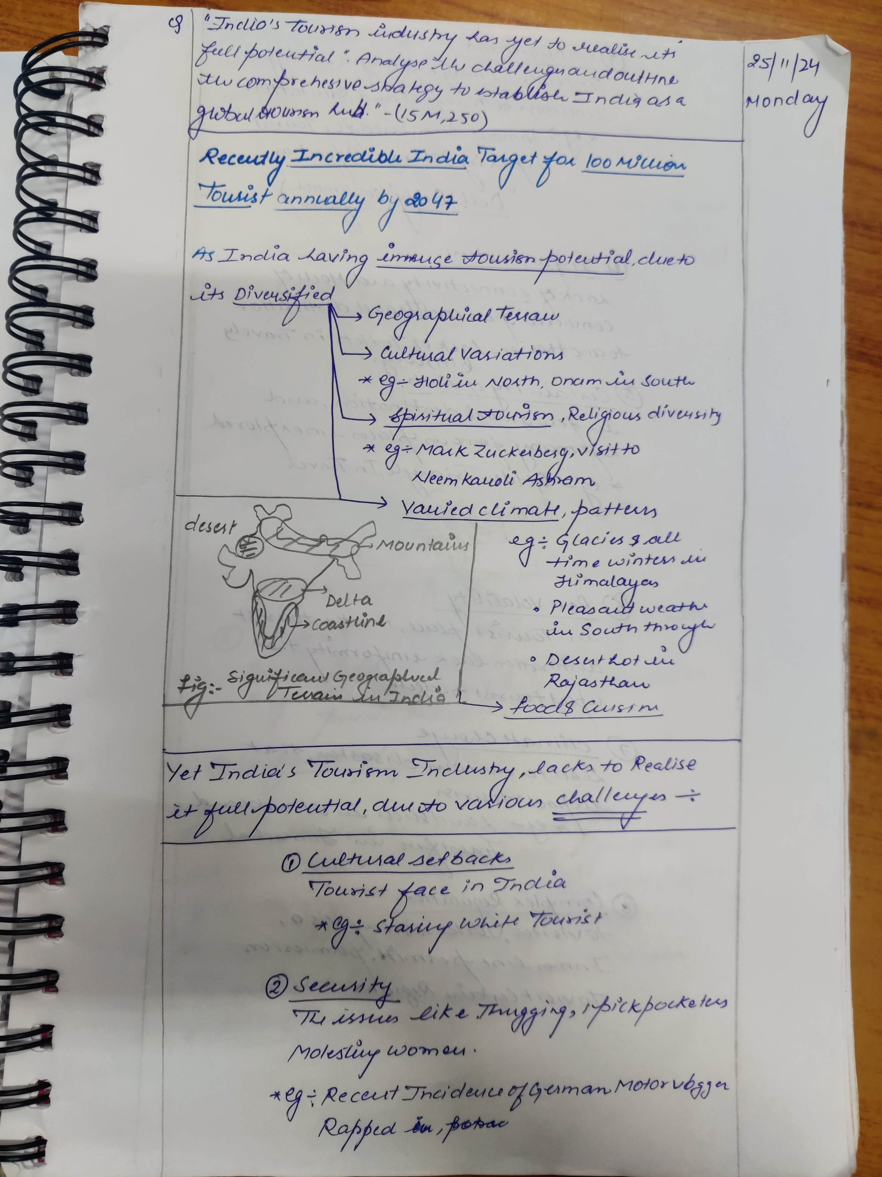 - Outline a comprehensive strategy to establish India as a global tourism hub.