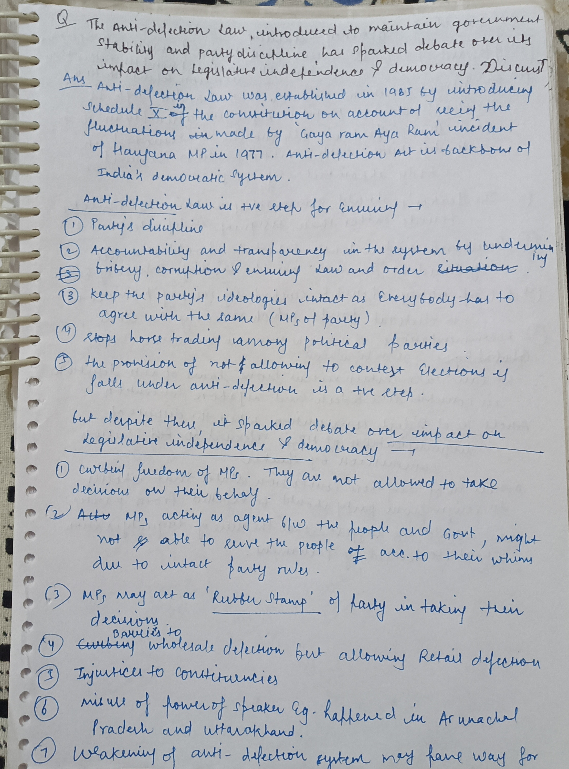 - Discuss how the Anti-Defection law contributes to government stability.