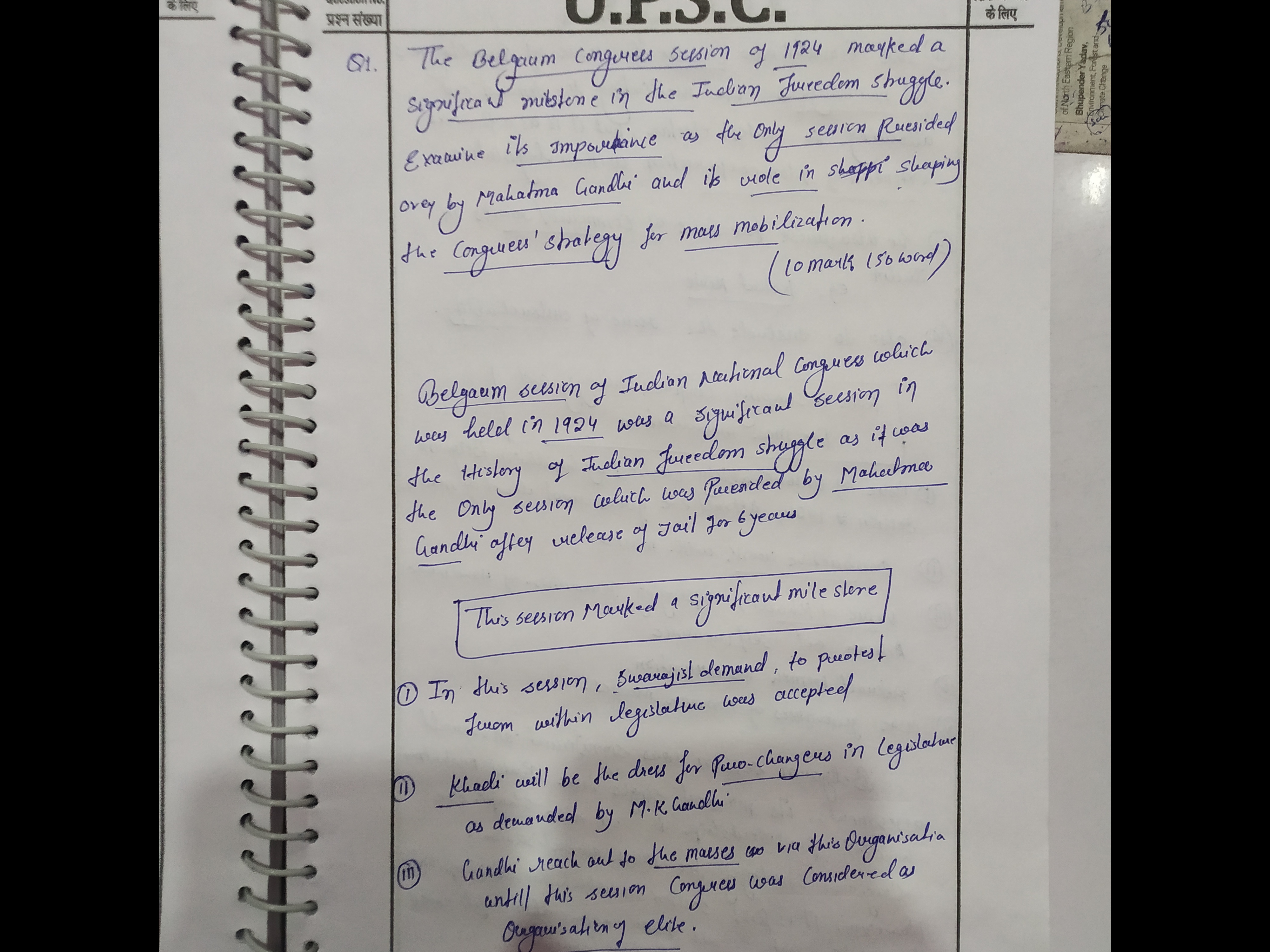 - Highlight the significant milestone in the Indian freedom struggle during Belgaum Congress Session of 1924