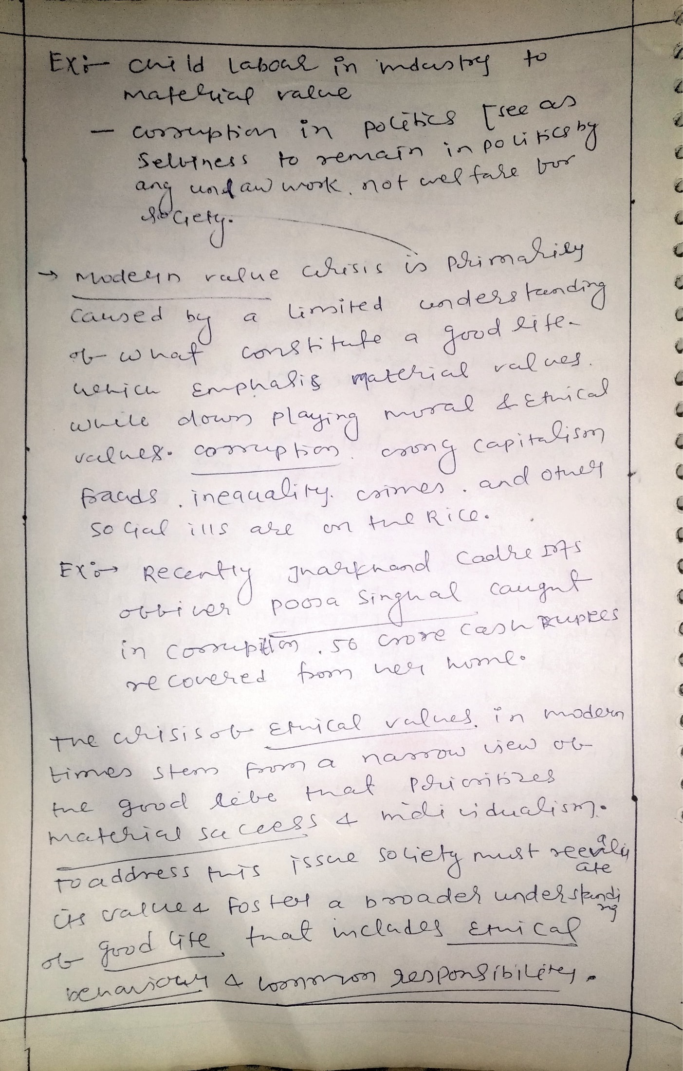 Some more examples to illustrate the crisis of ethical values in modern times that can be traced to a narrow perception of the good life: