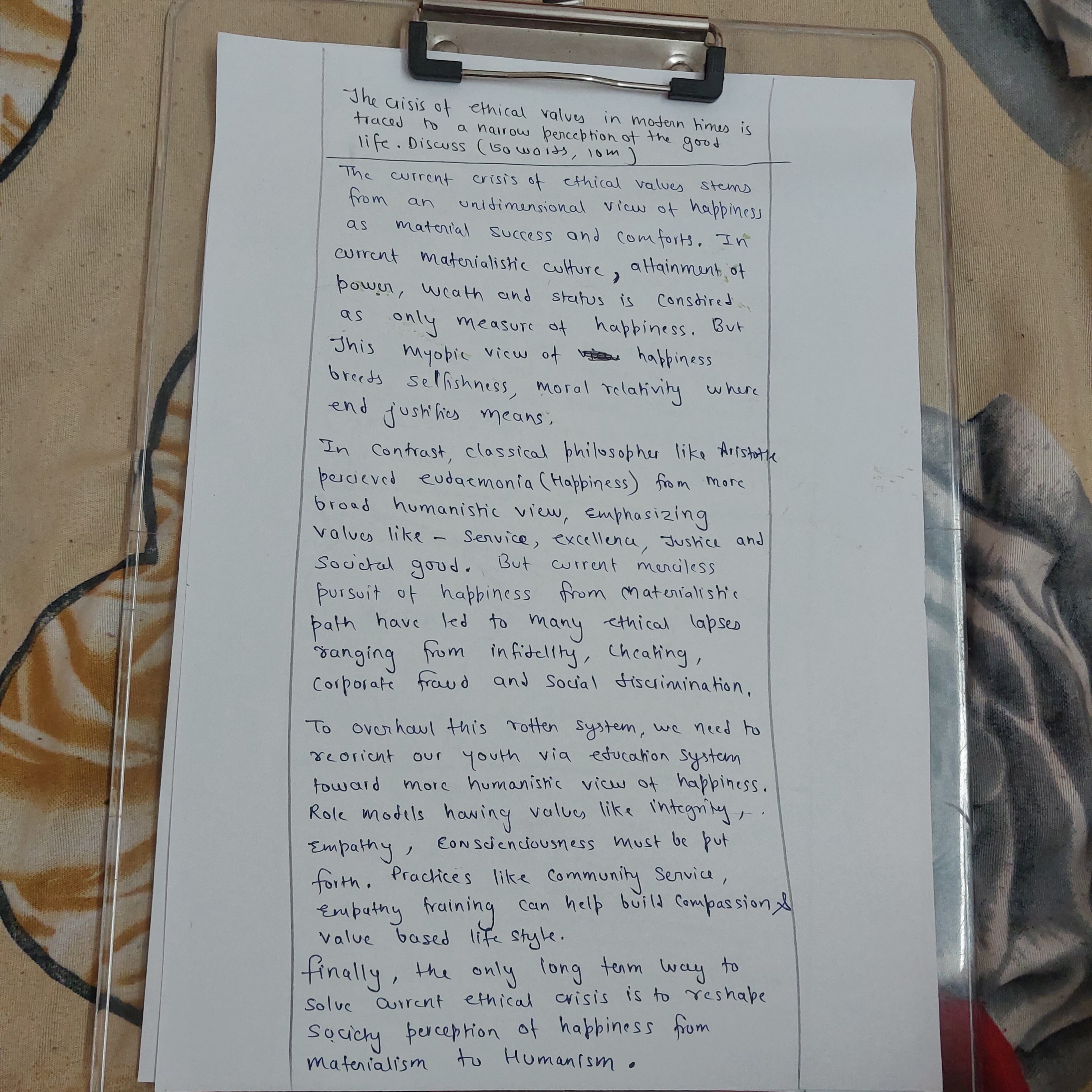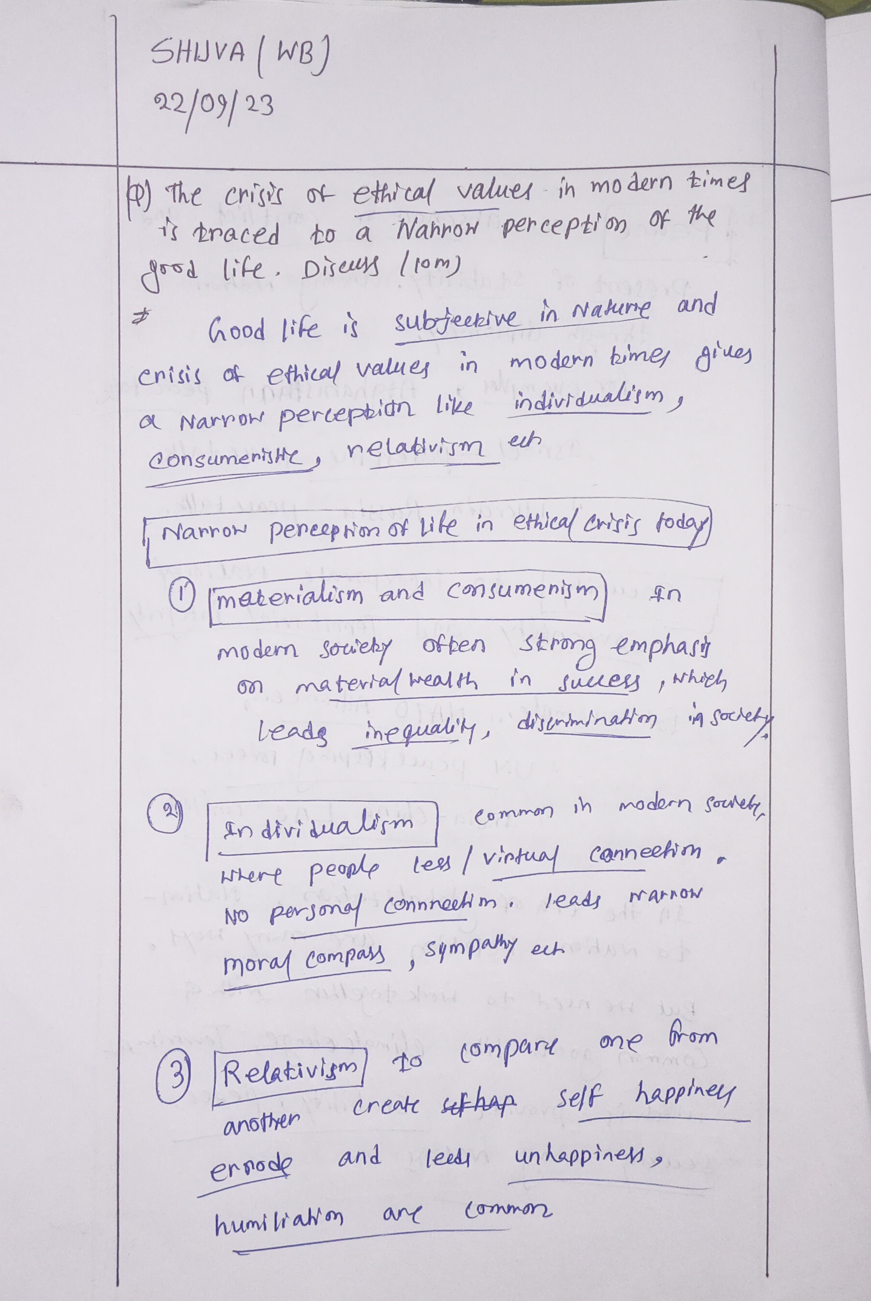 - Secondly, the emphasis on individualism in modern society has also contributed to a loss of ethical values. Many individuals prioritize their own self-interest, rather than considering the needs and well-being of others. This narrow perception of the good life has resulted in a lack of concern for social justice, equality, and other important ethical issues.