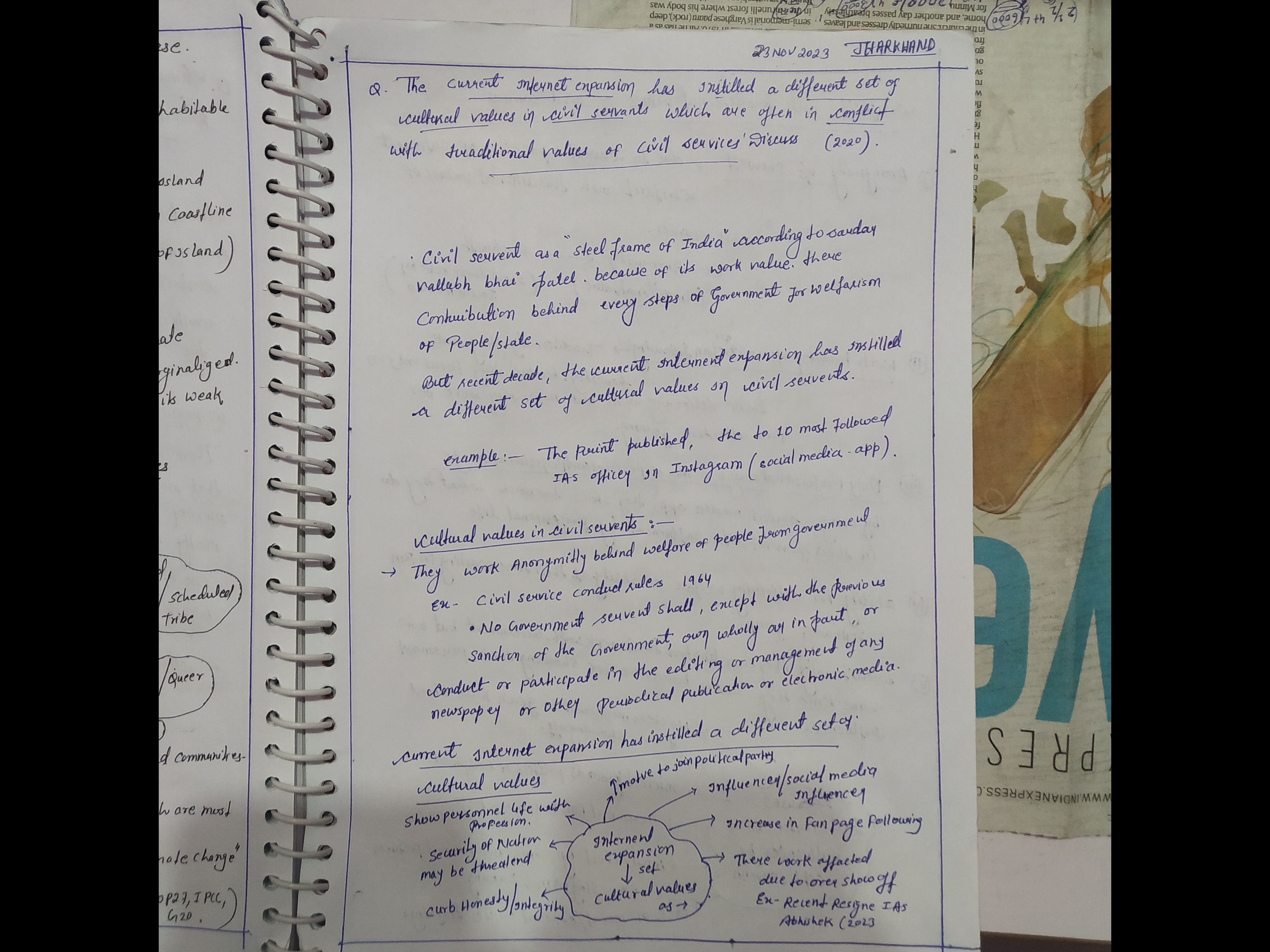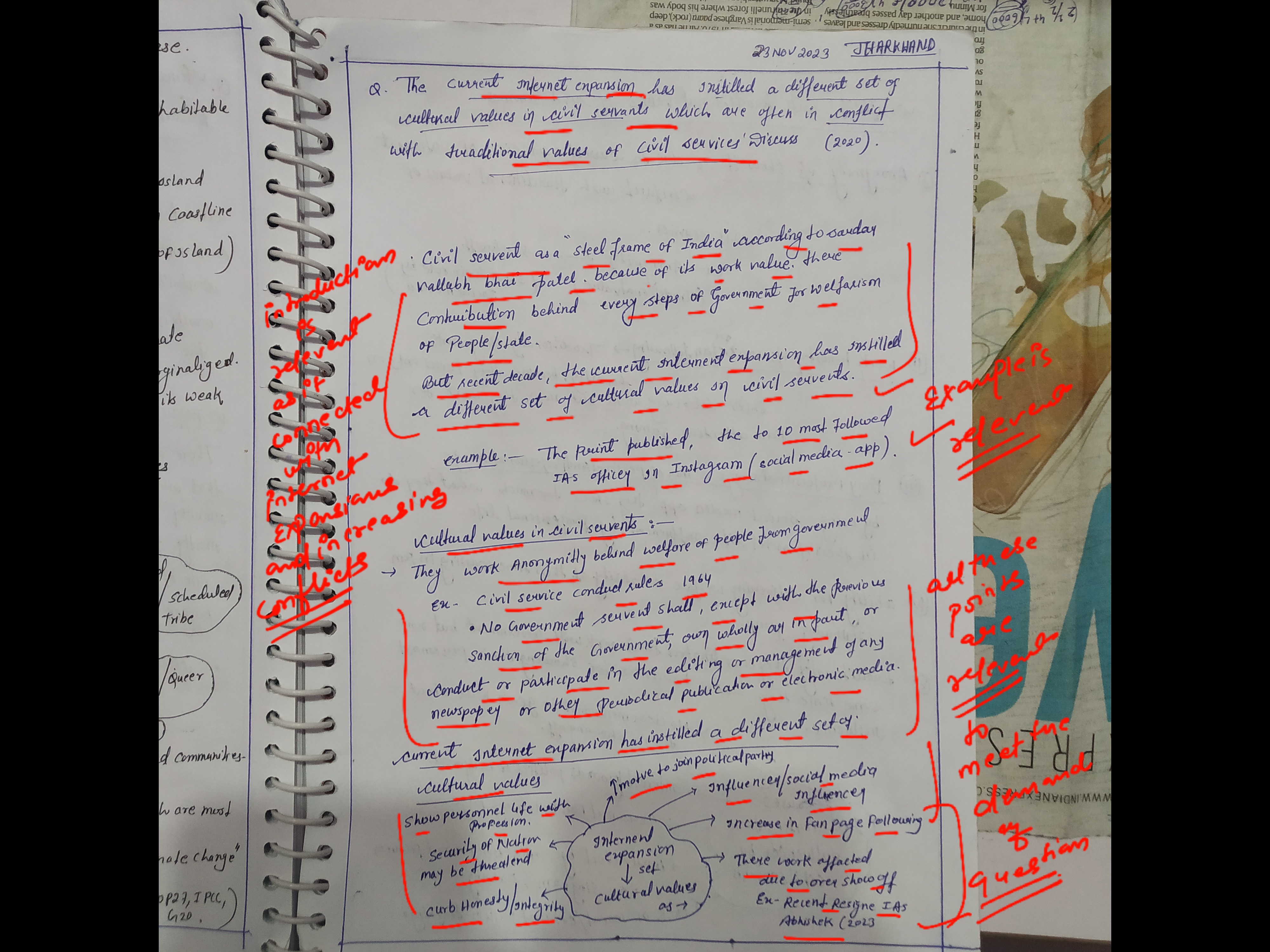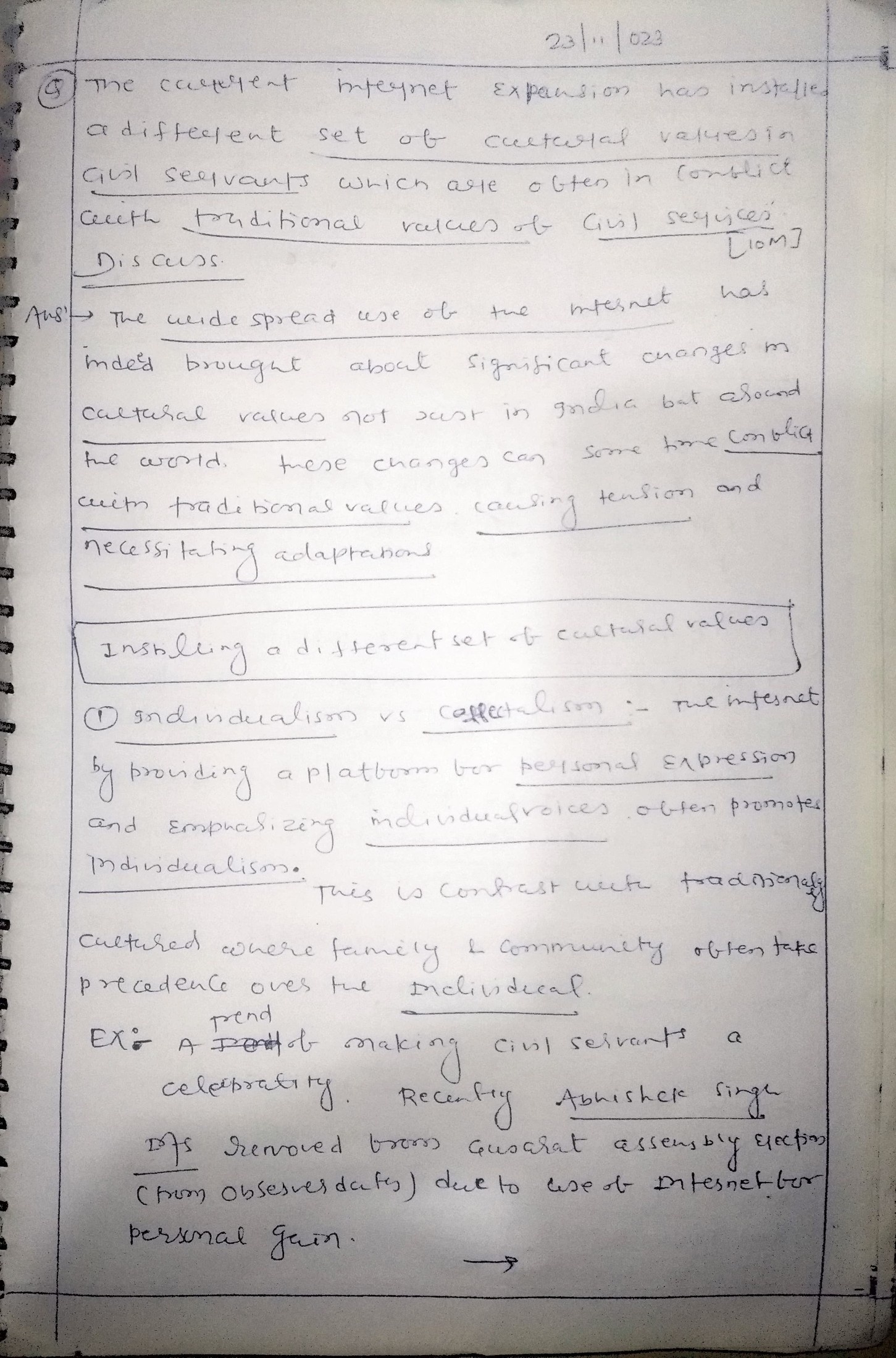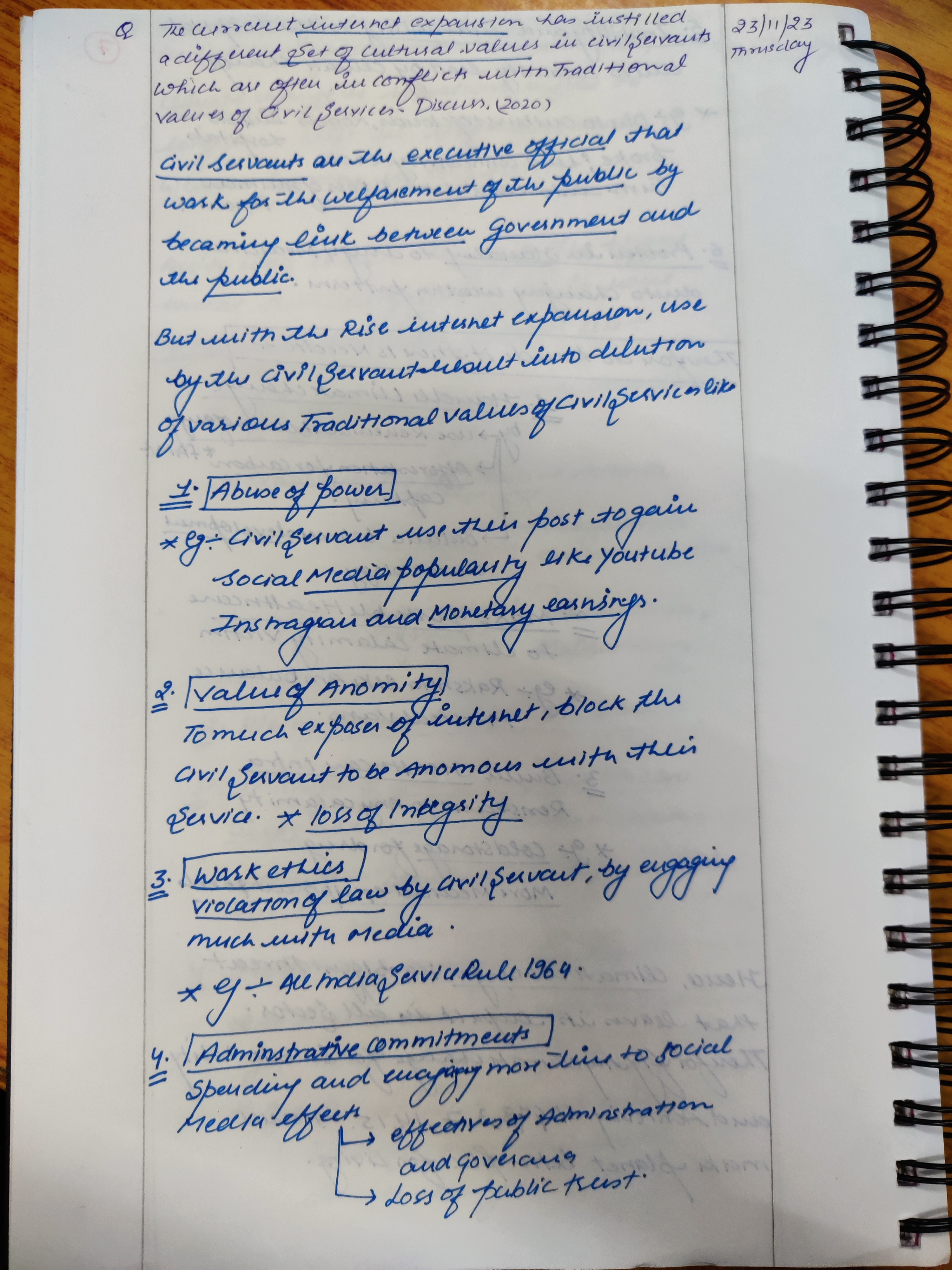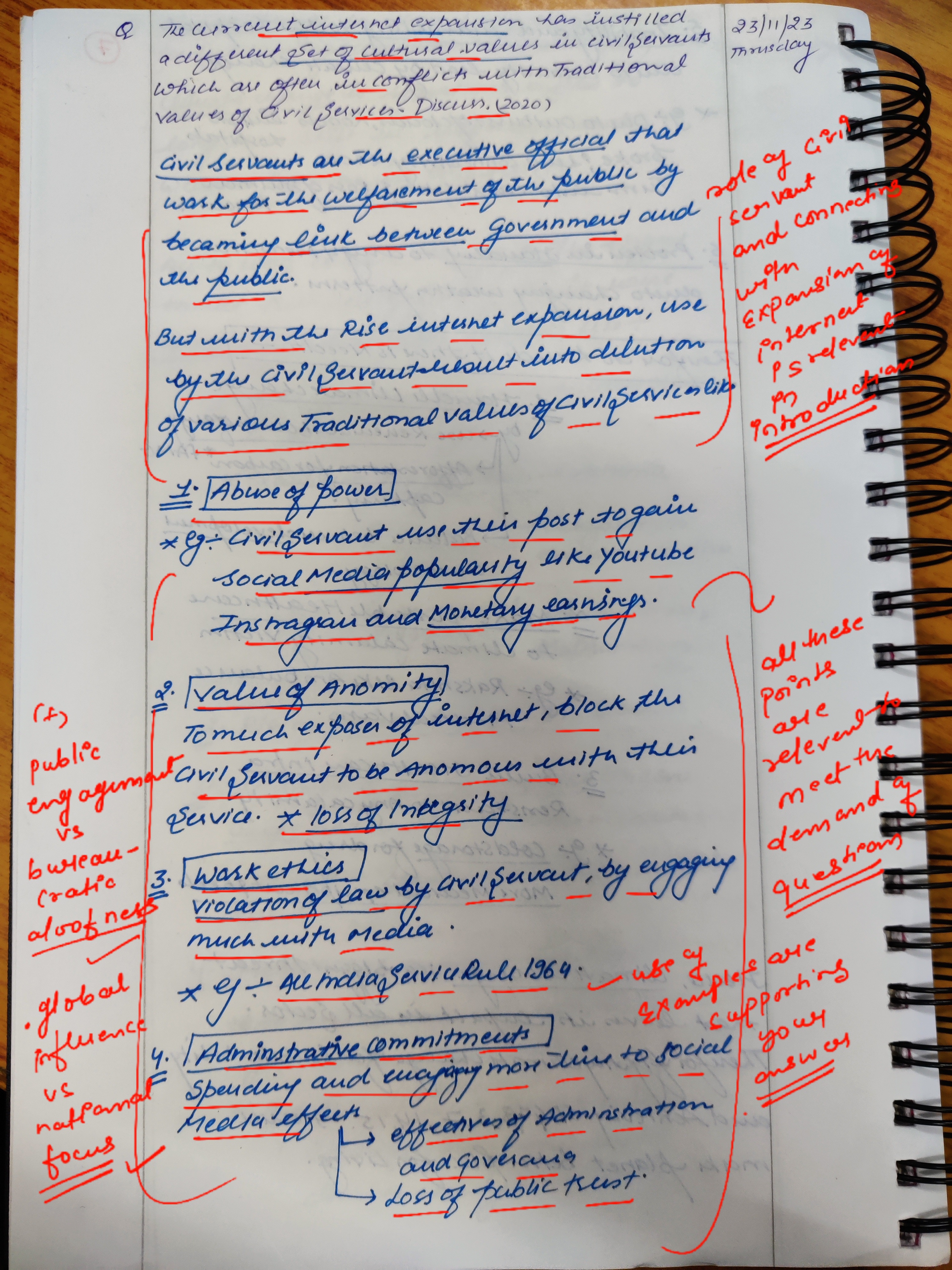 - Introduction: Introduce by acknowledging the impact of the internet on various societal sectors, focusing on its influence on the Indian Civil Services and the potential conflict between new cultural values and traditional civil service ethos.