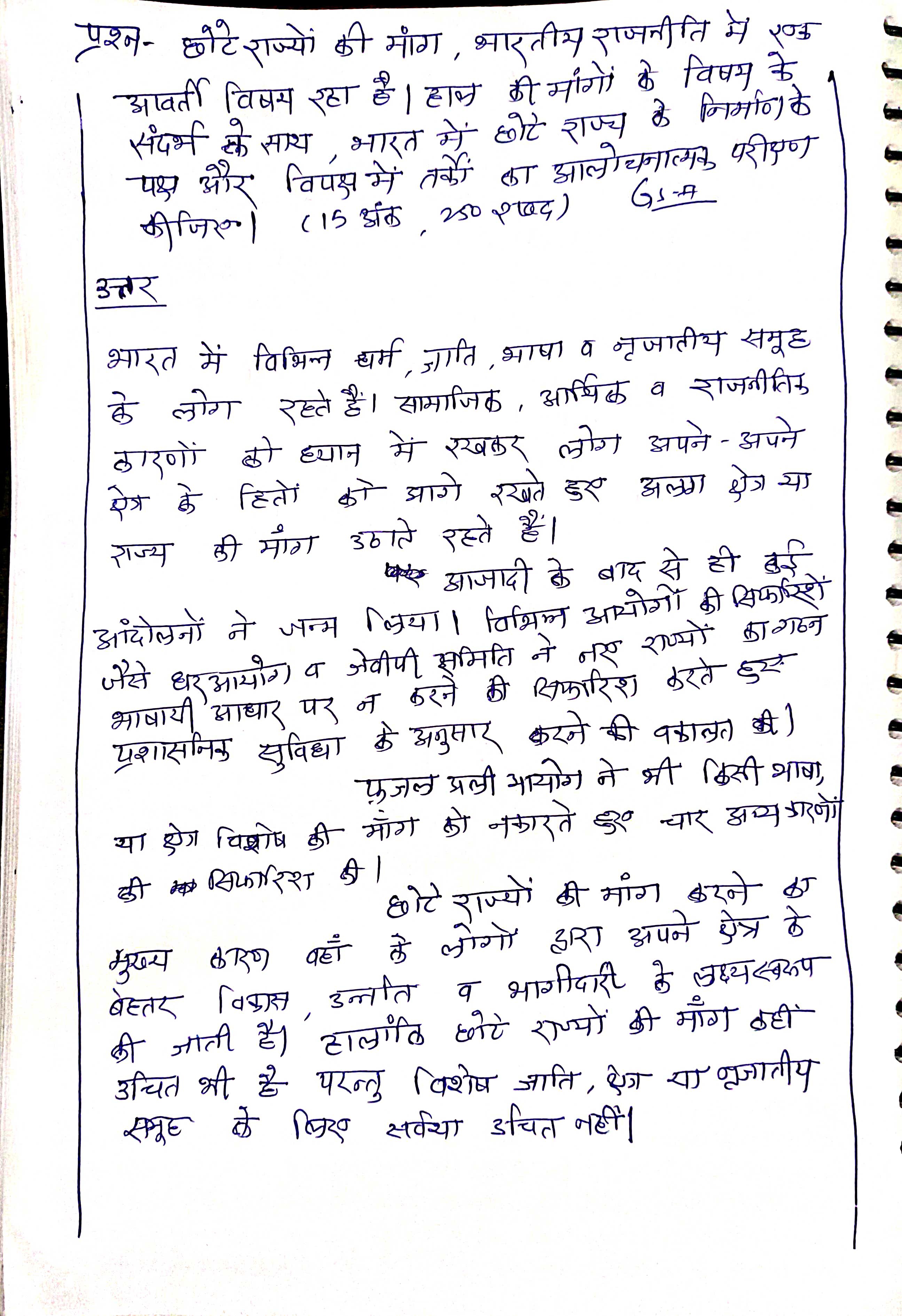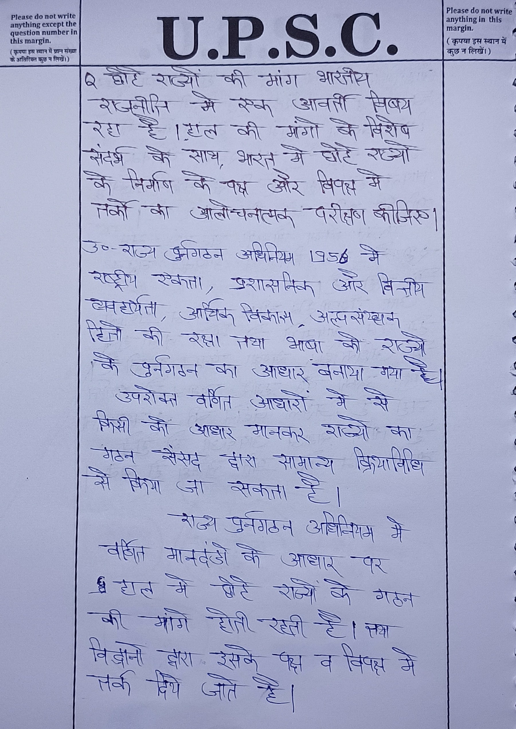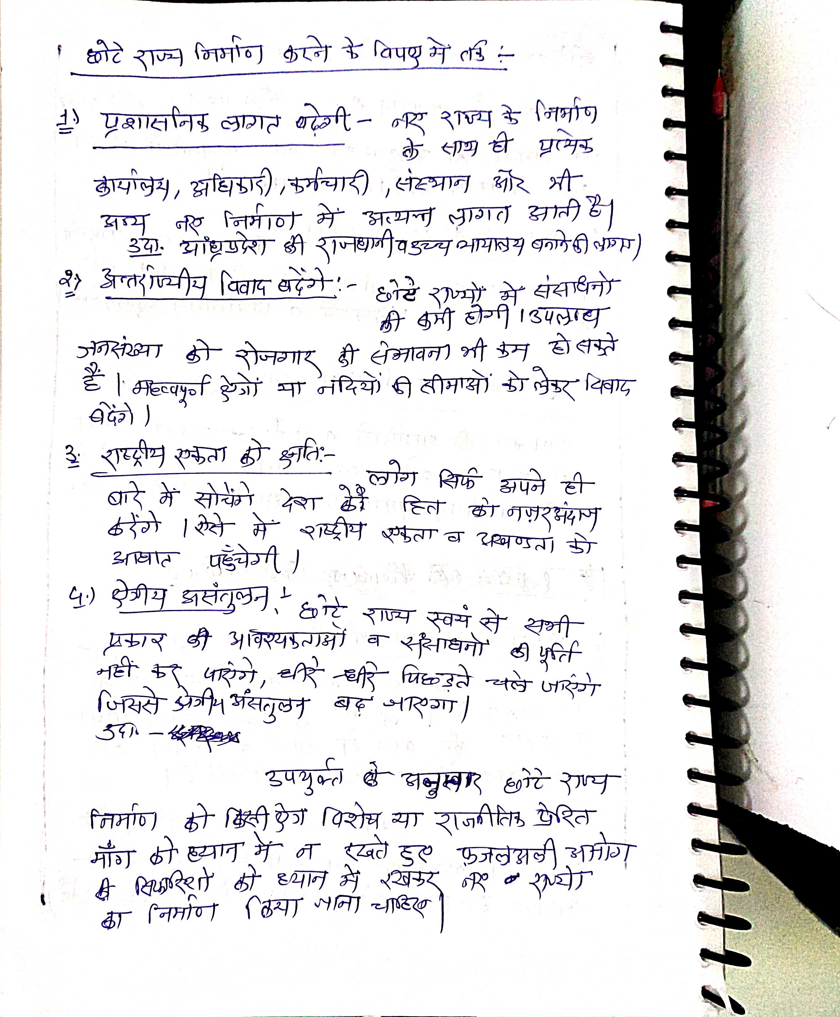 - भारत में लघु राज्यों के निर्माण के समर्थन में तर्कों का परीक्षण कीजिए।