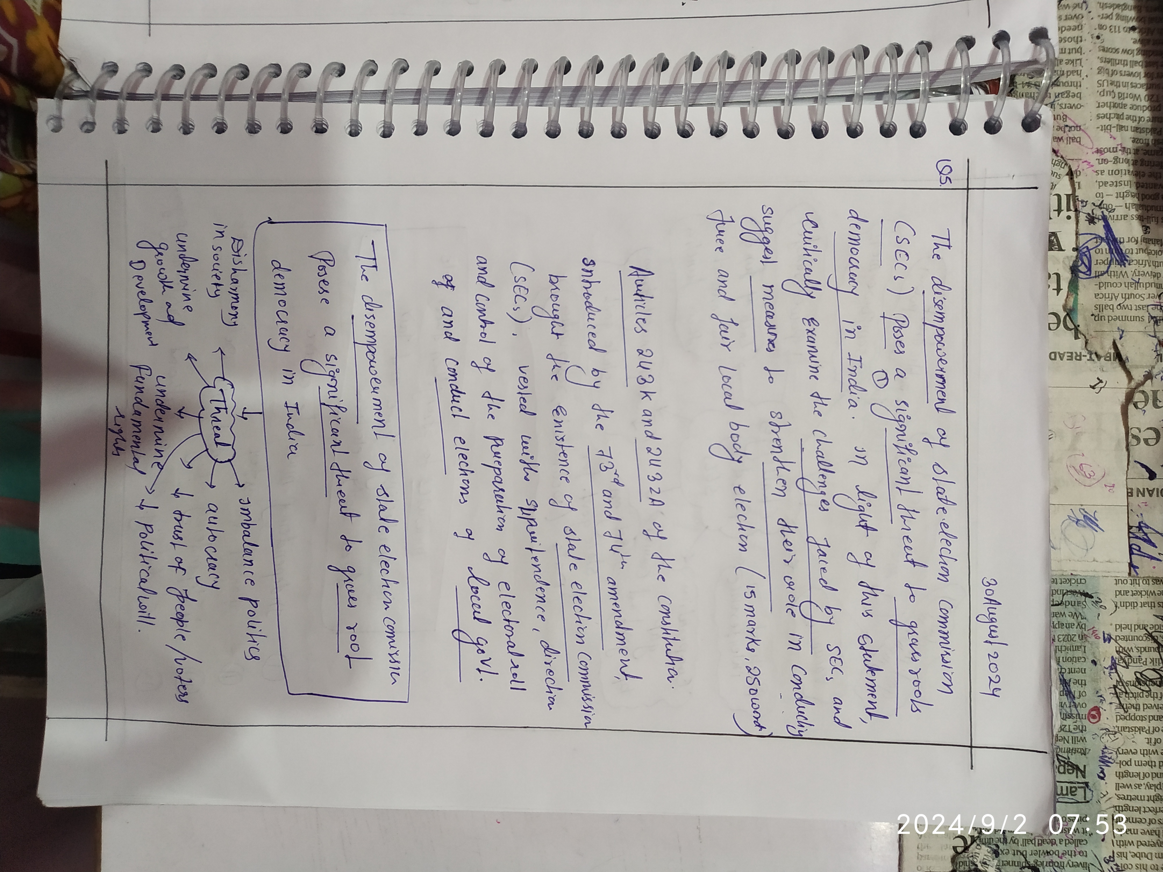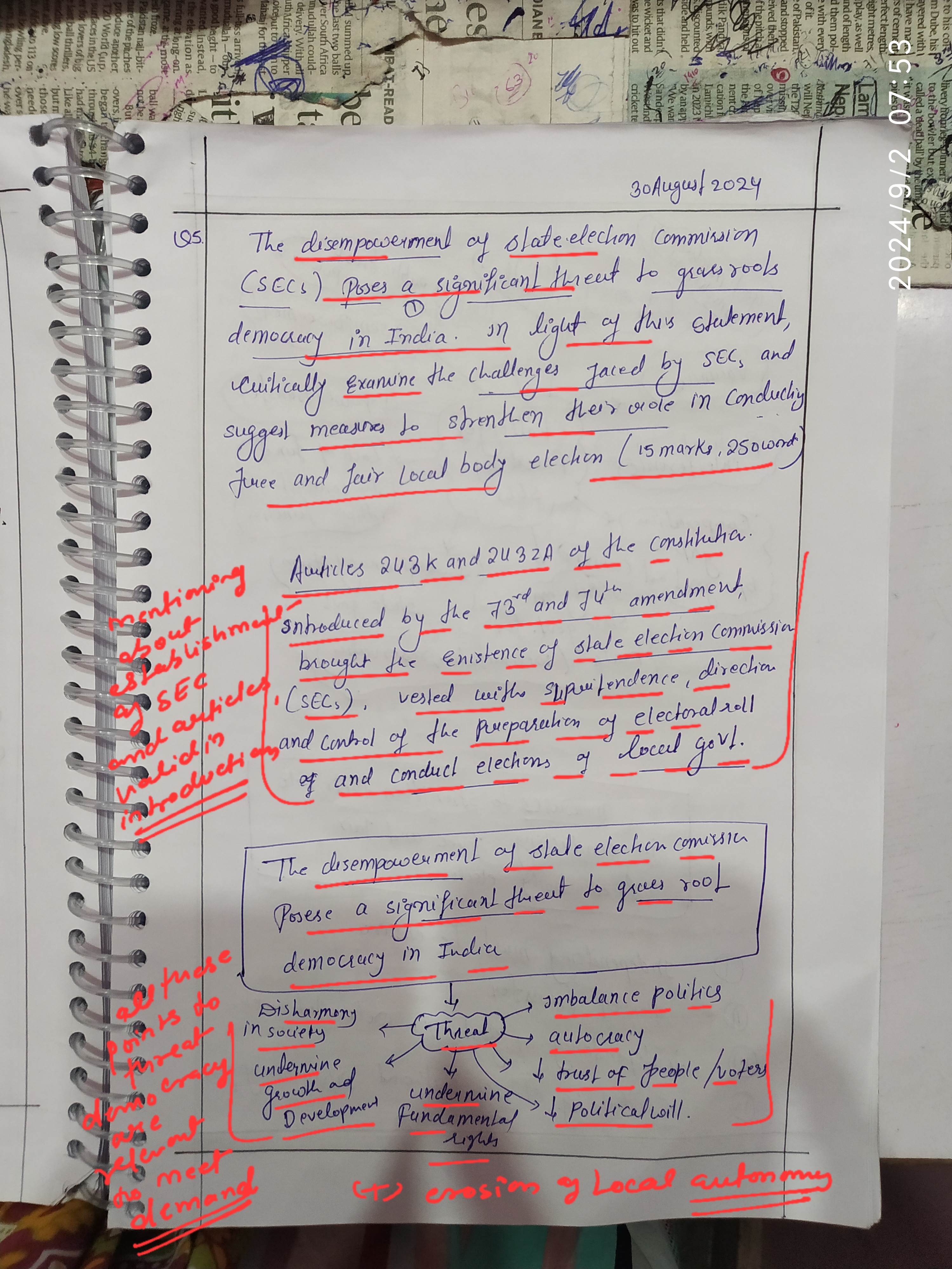 - Discuss how the disempowerment of State Election Commissions (SECs) poses a significant threat to grassroots democracy in India.
