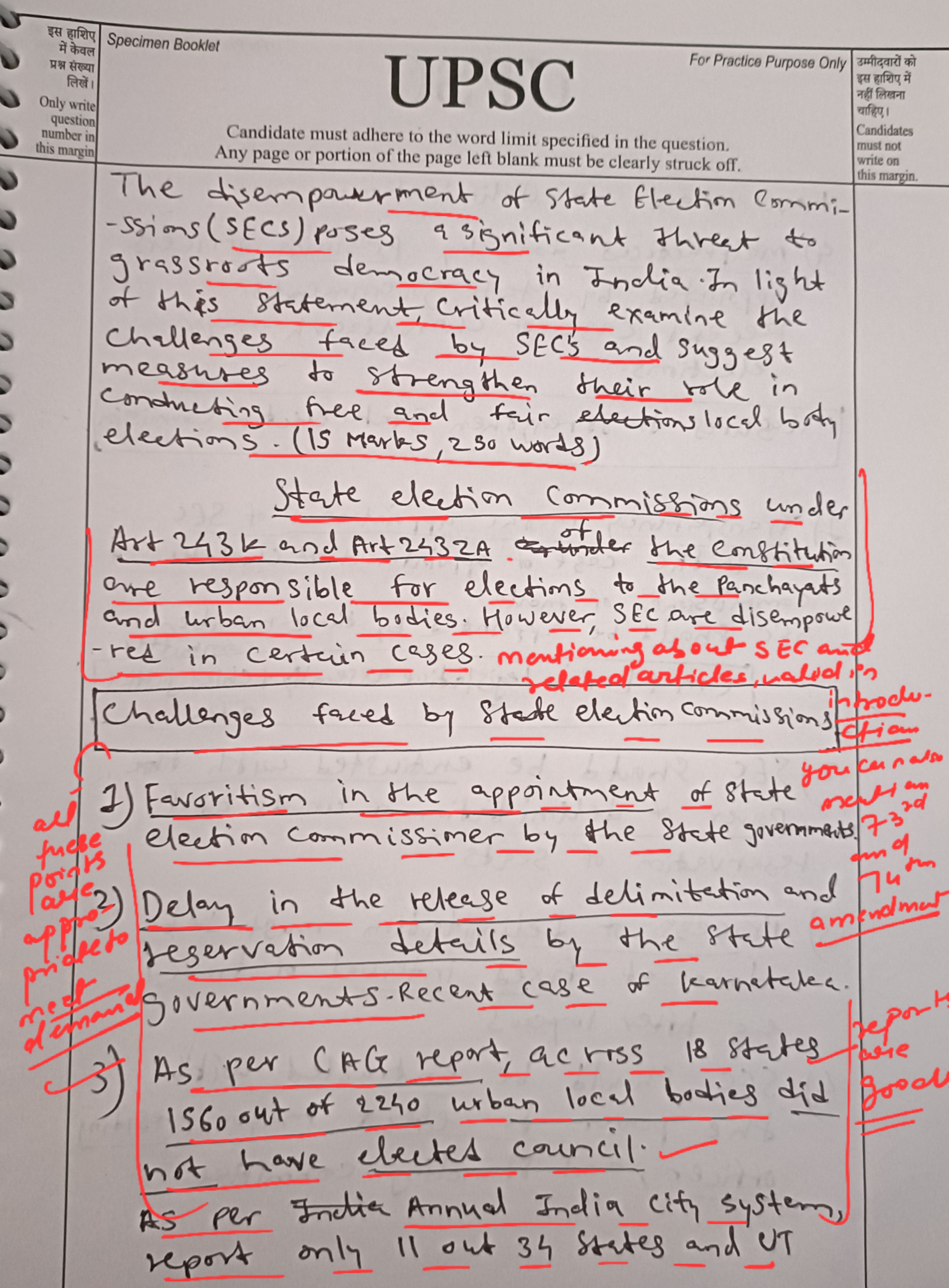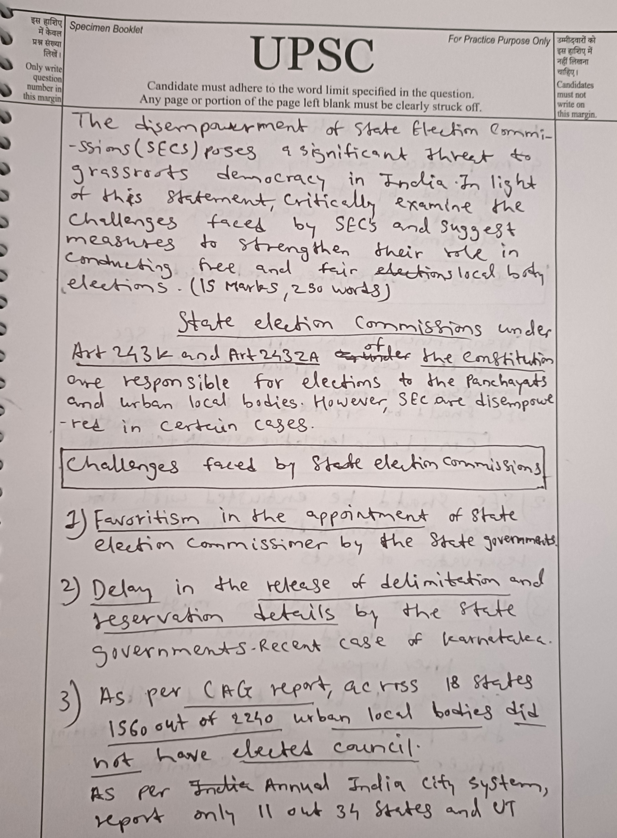 For example: CAG’s performance audits found that 70% of urban local governments in 18 states lacked elected councils due to delays, highlighting SECs’ disempowerment.