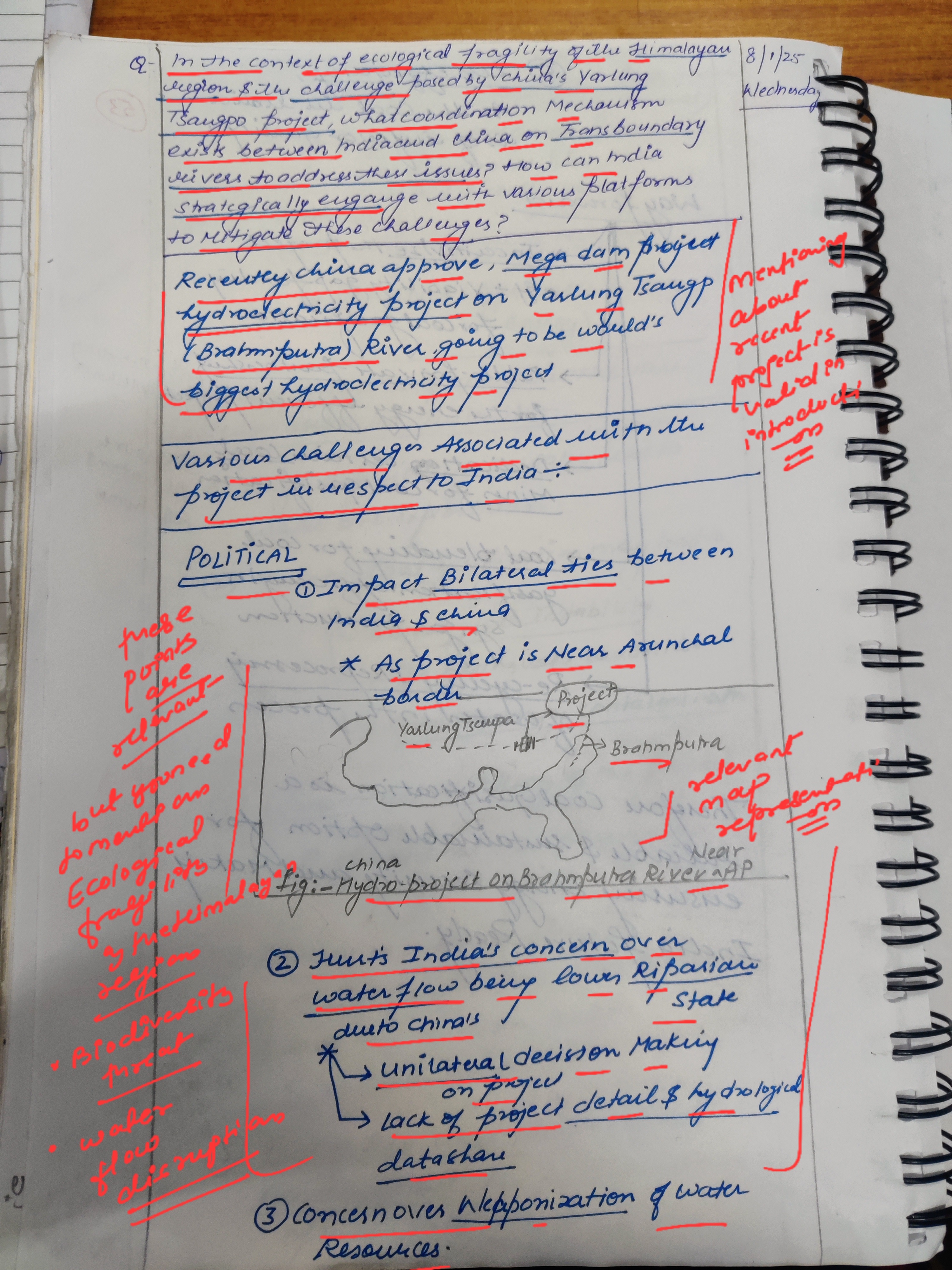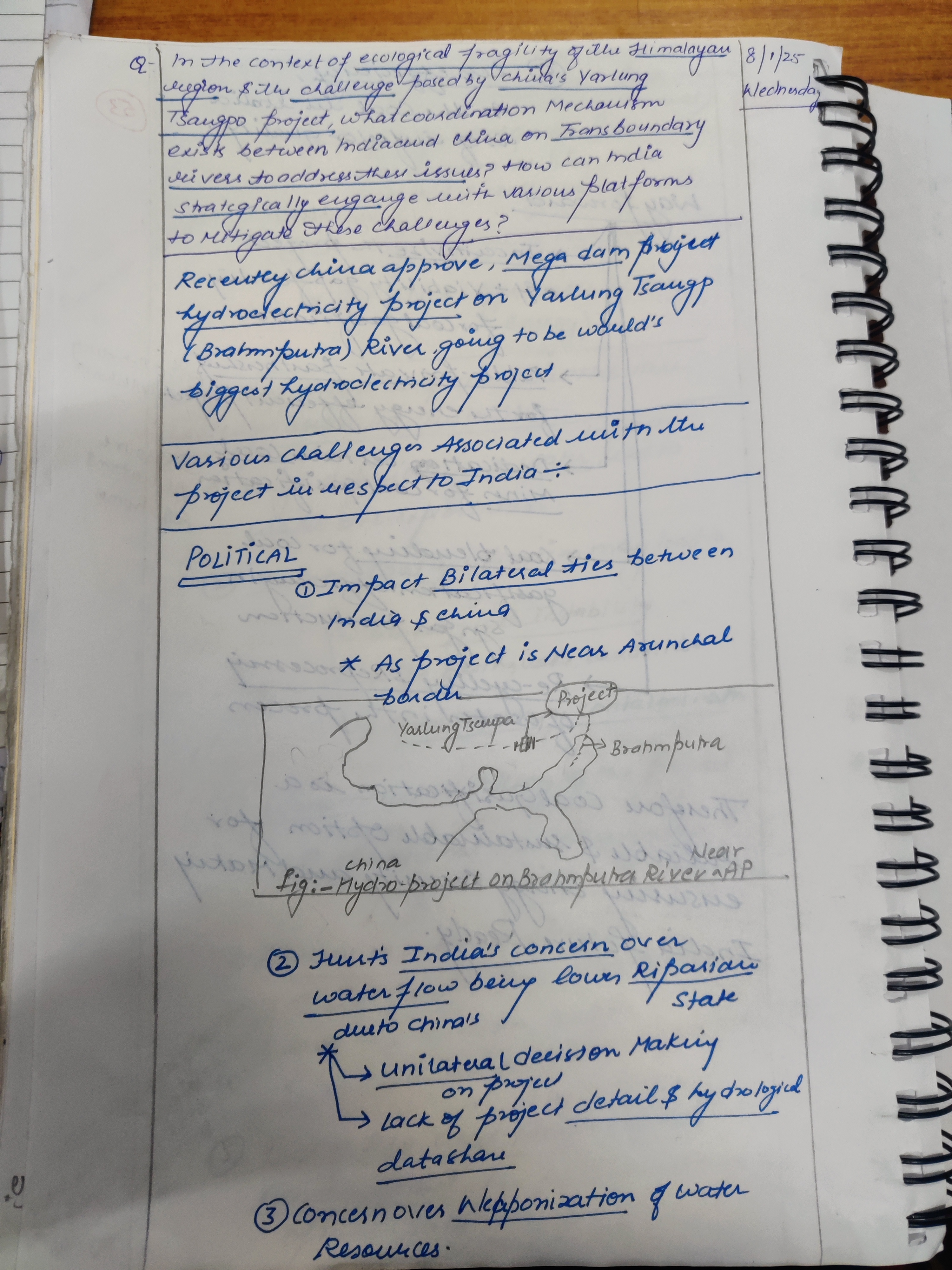 - Discuss the coordination mechanisms that exist between India and China on transboundary rivers to address these issues