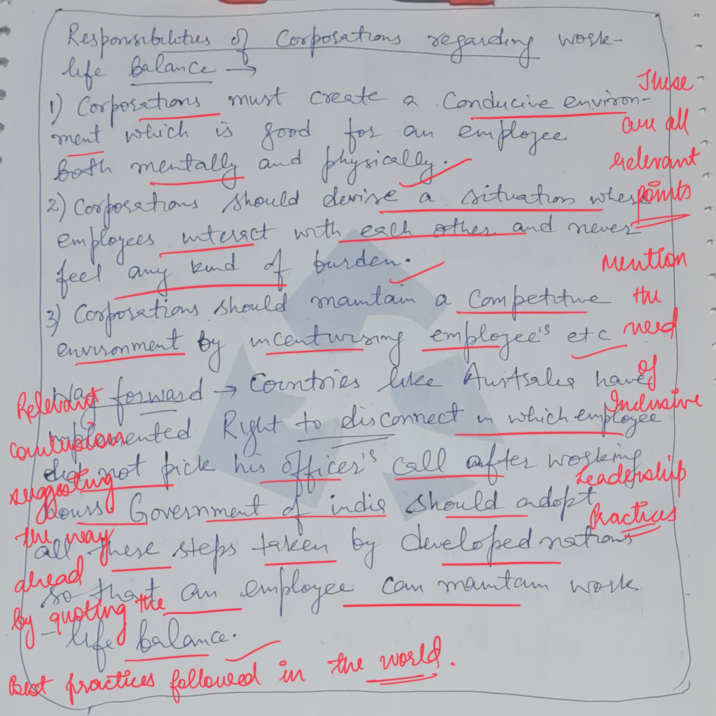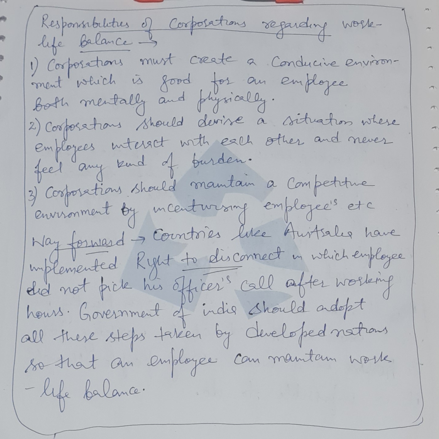 Addressing work-life balance issues is crucial to ensuring a healthy, ethical, and productive workforce in India. Corporations hold the ethical responsibility to protect employees from excessive working hours and support their personal well-being. By fostering an inclusive and balanced work culture, companies can not only enhance employee satisfaction but also contribute positively to their professional integrity and overall productivity.