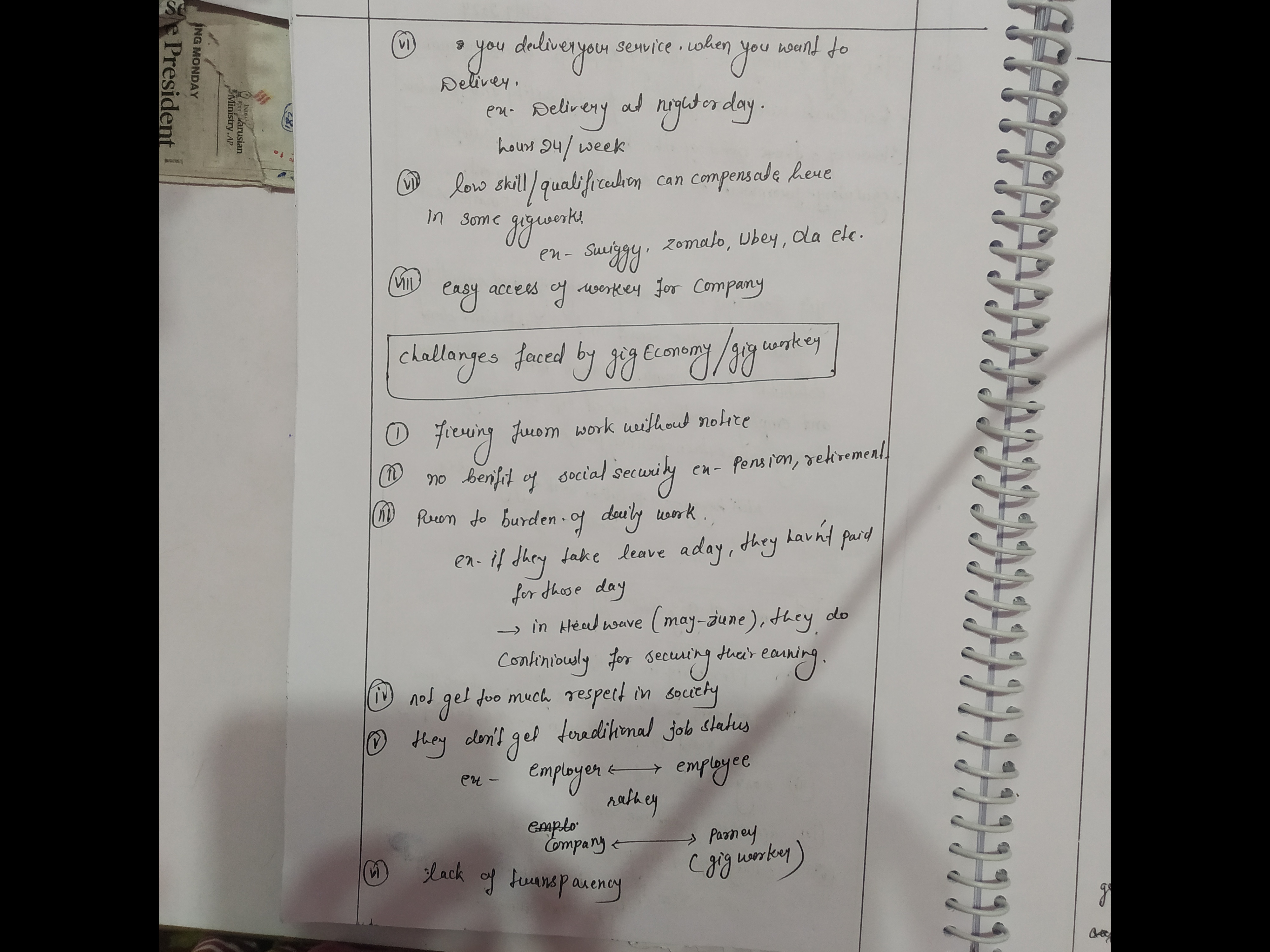For example: Many gig workers on platforms like Swiggy and Uber do not receive these benefits, lacking essential social security nets.
