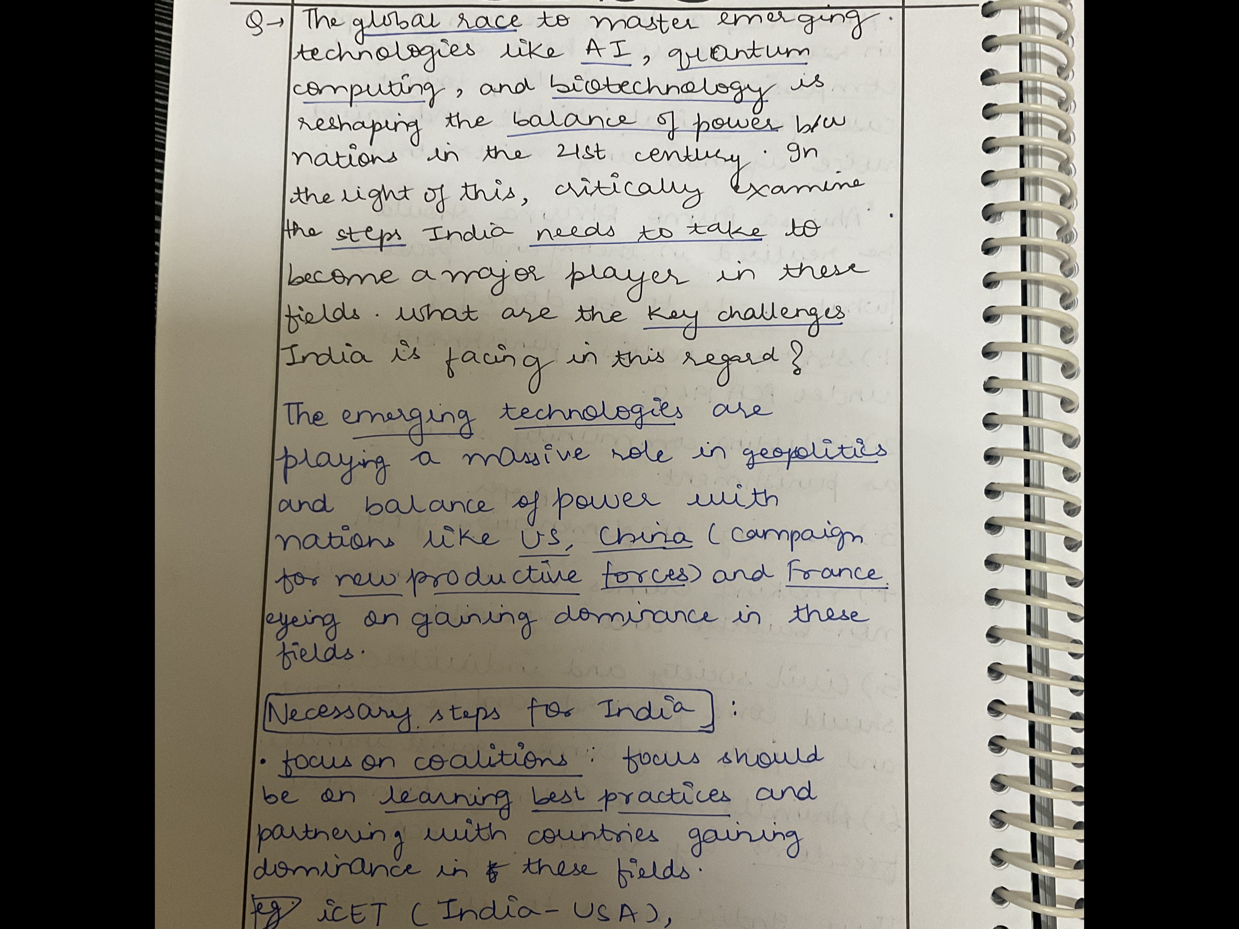 - Briefly list India’s efforts in AI, quantum computing, and biotechnology.