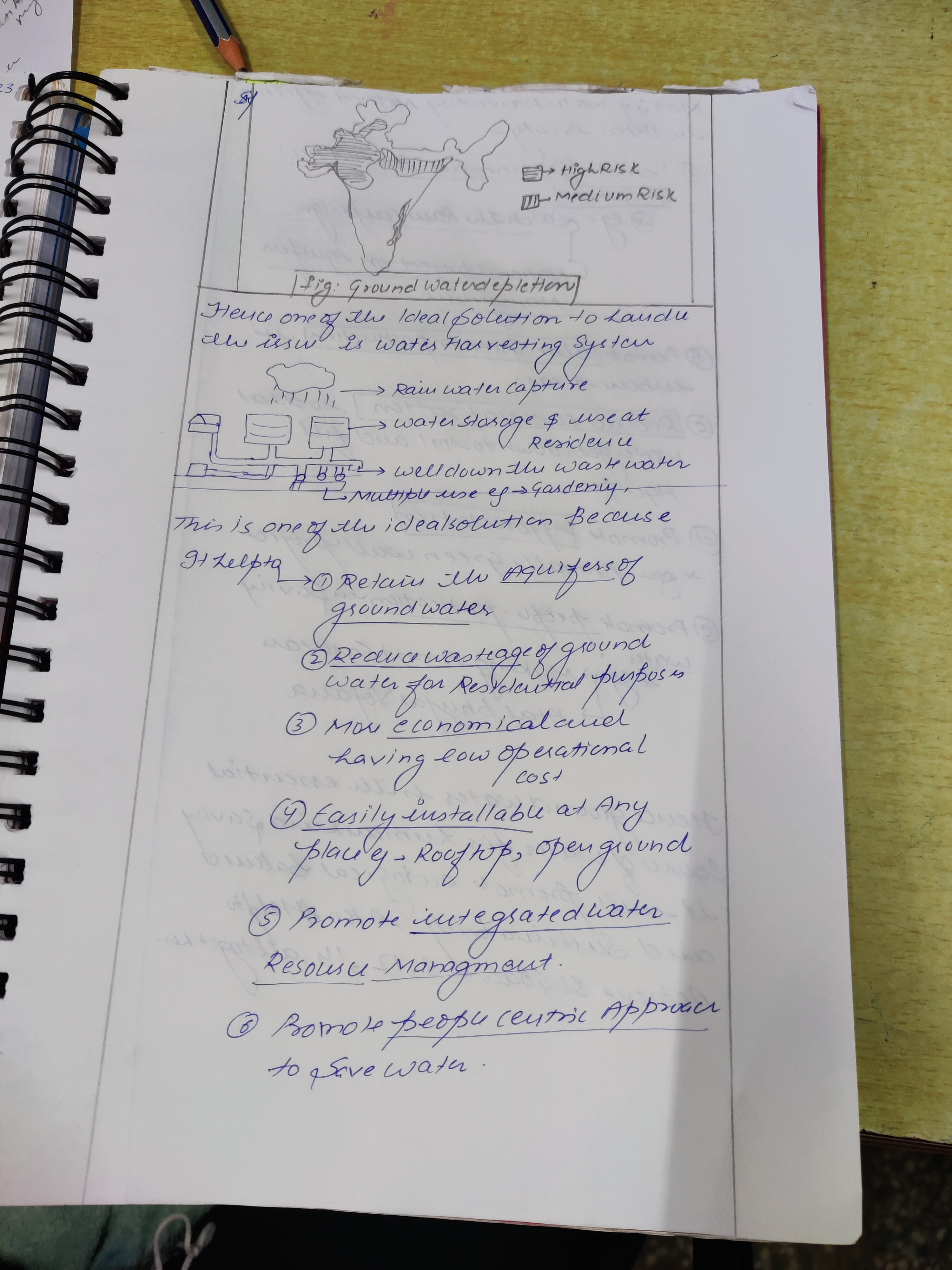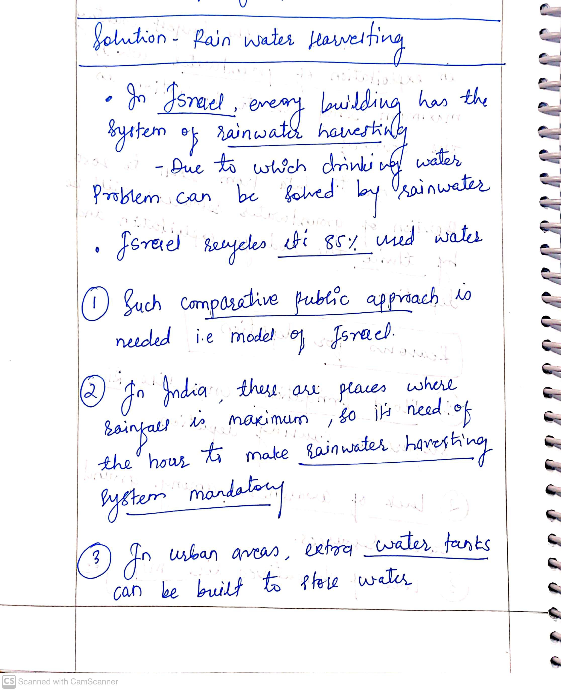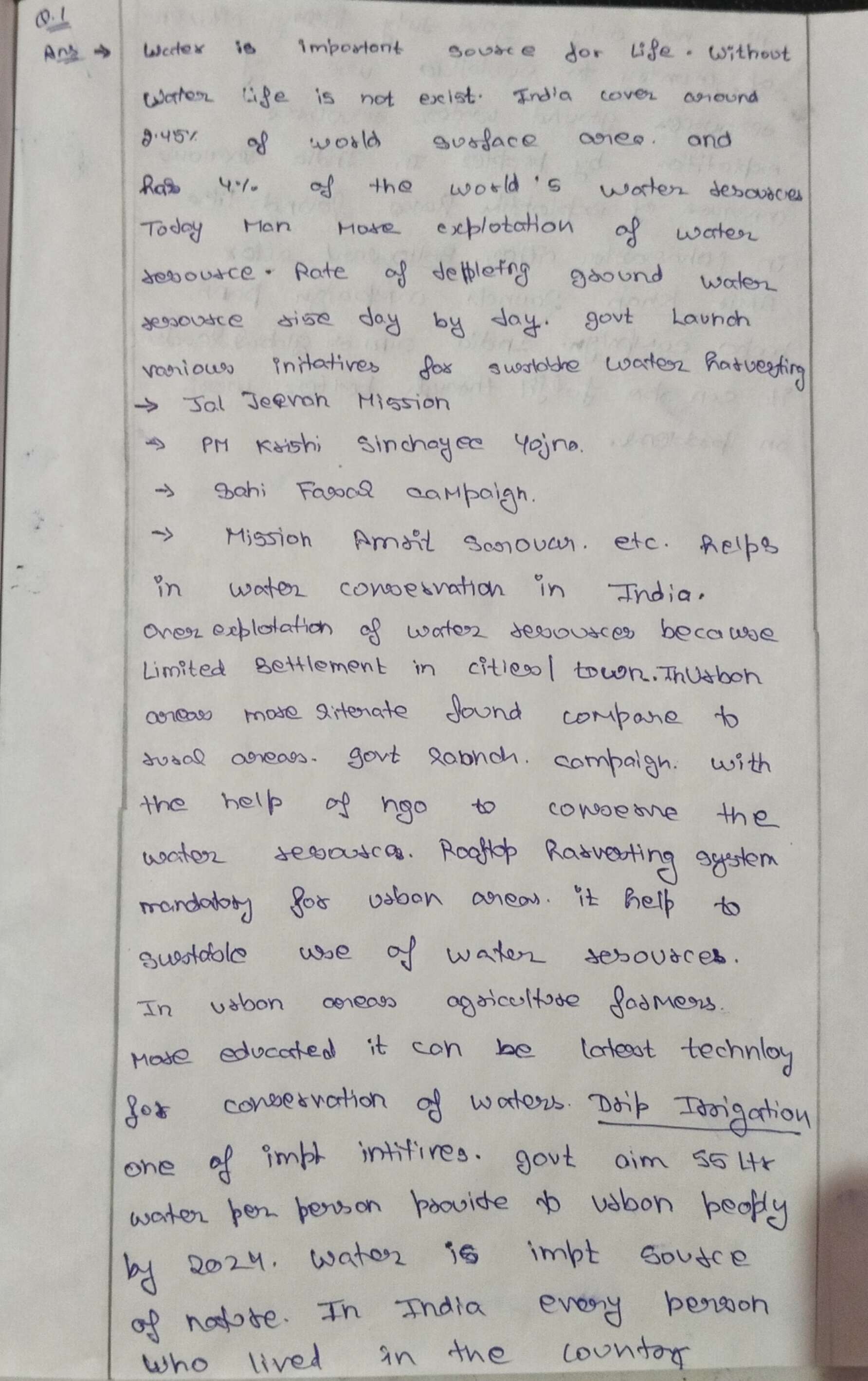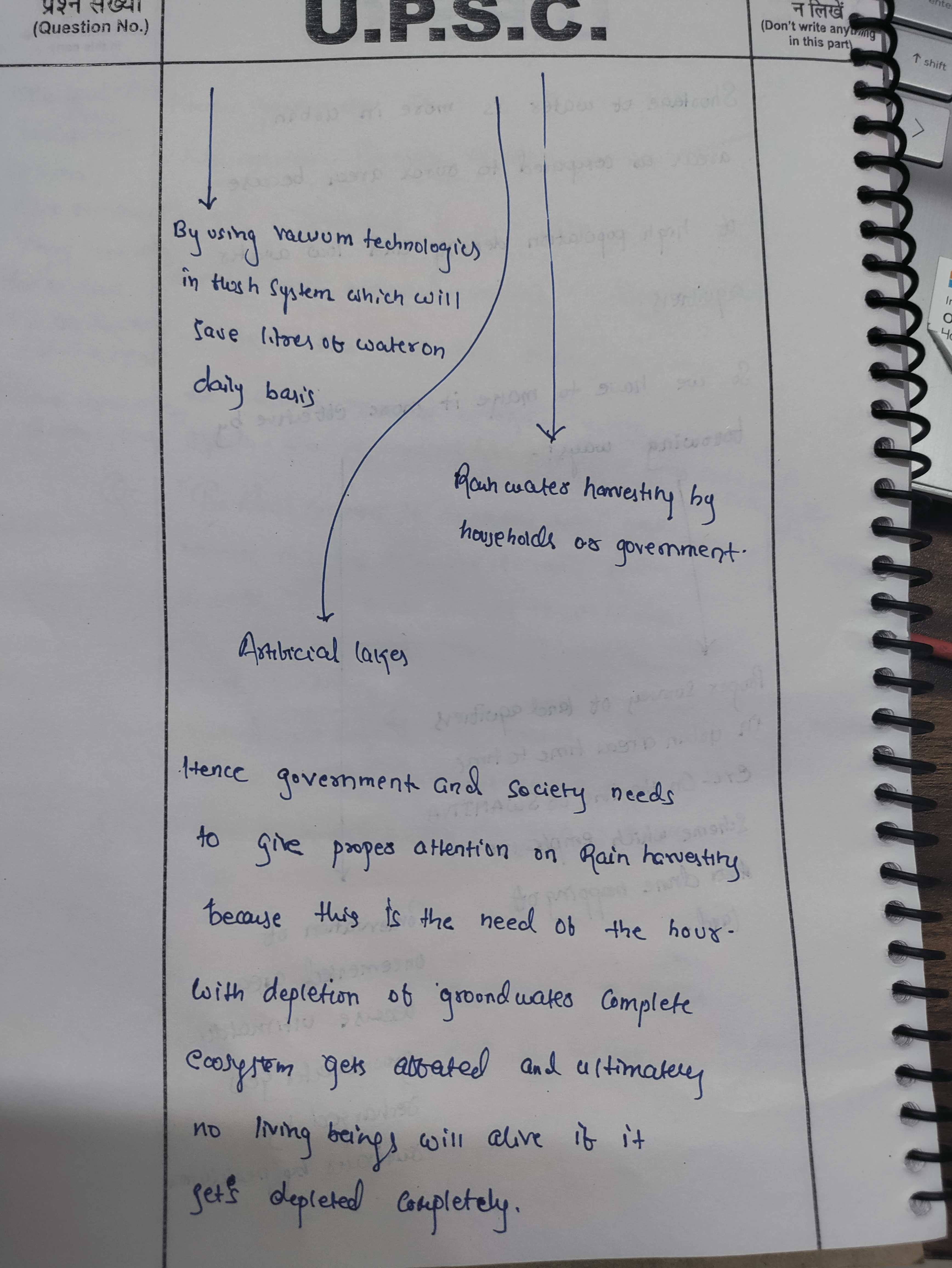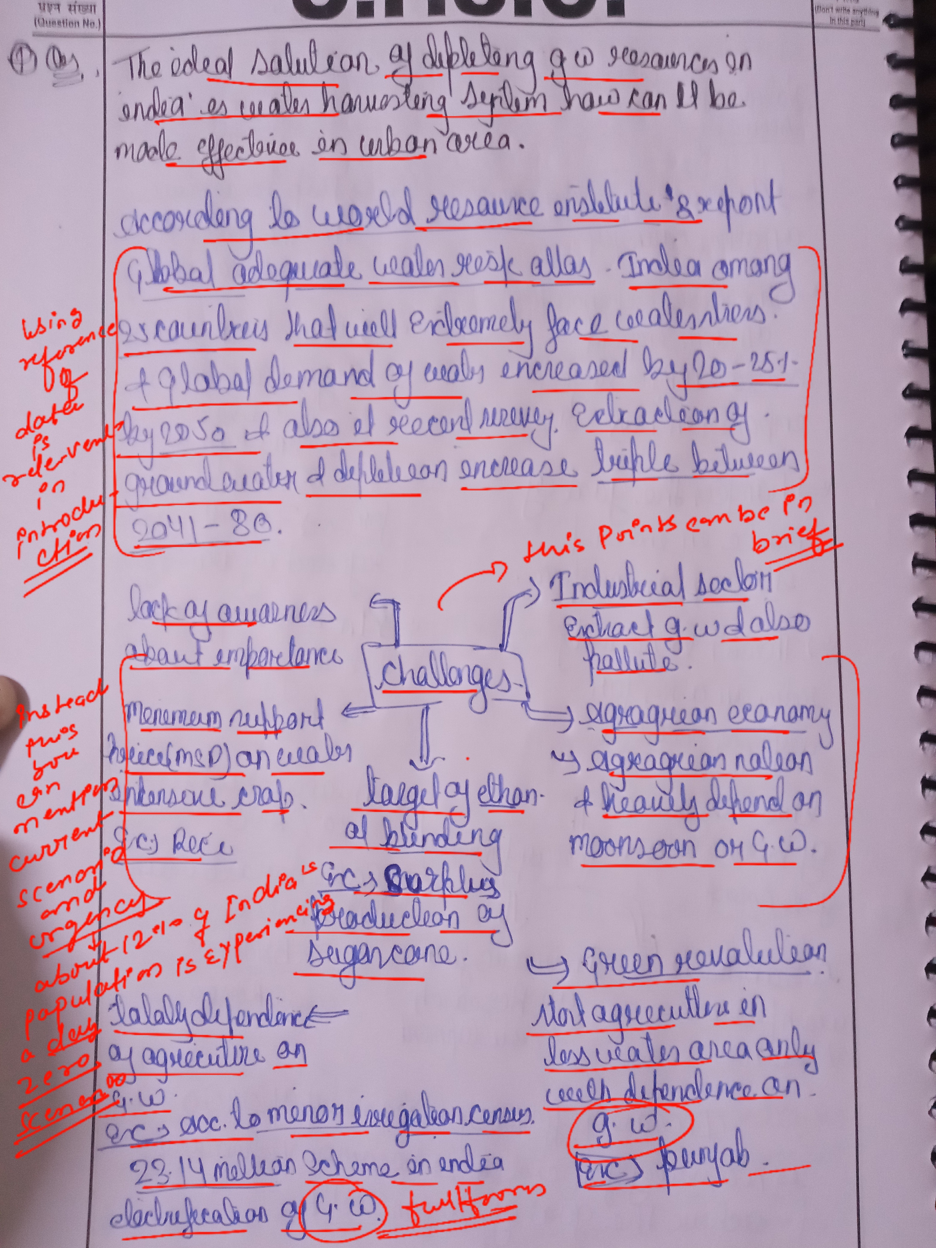 Q. The ideal solution of depleting ground water resources in India is water harvesting system. How can it be made effective in urban areas? (250 words, 15 Marks)