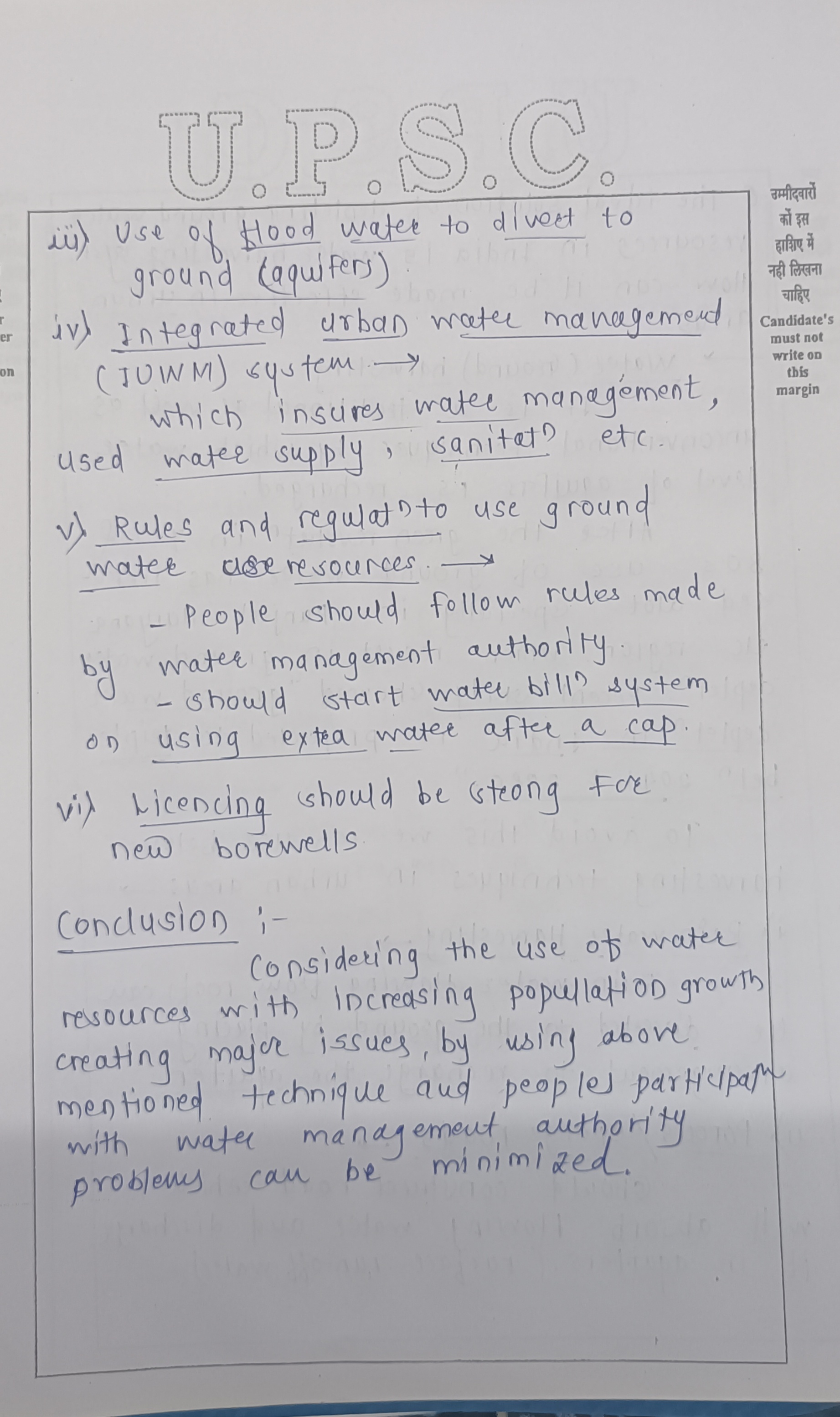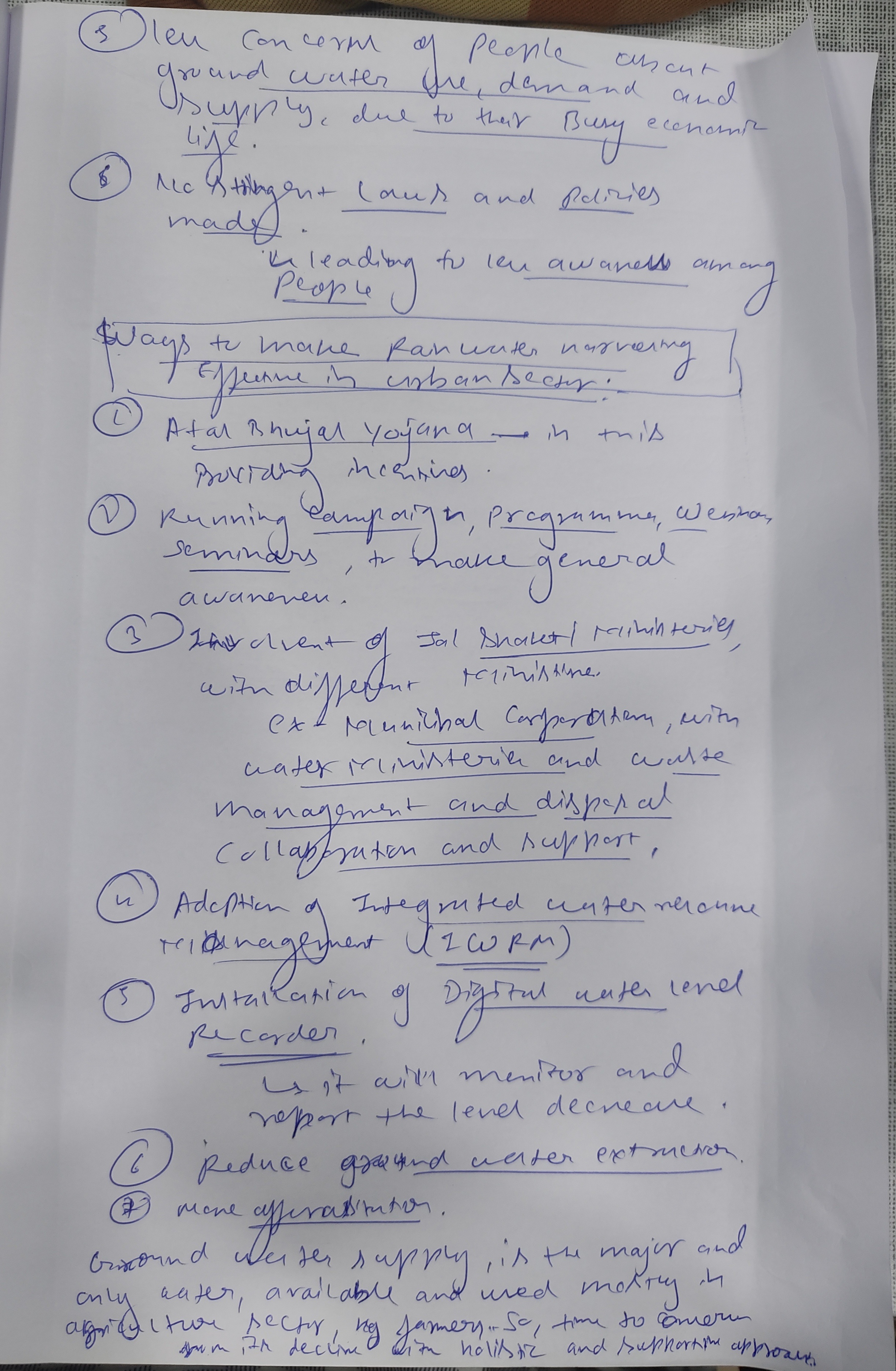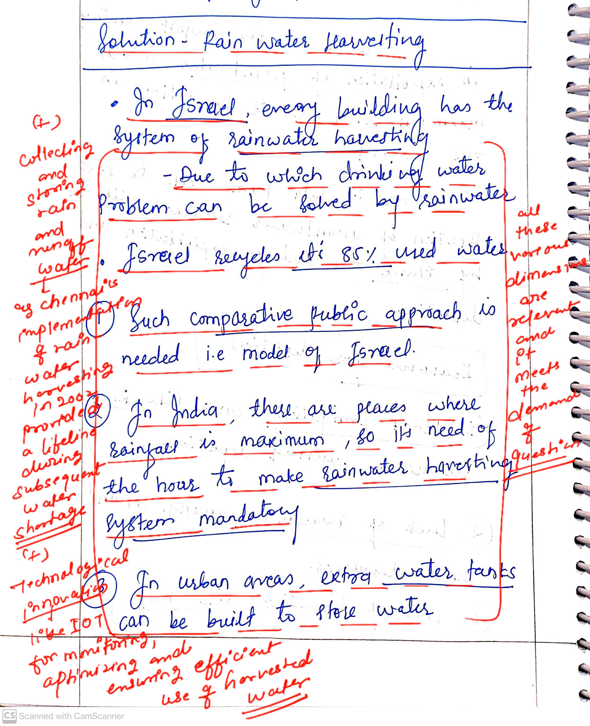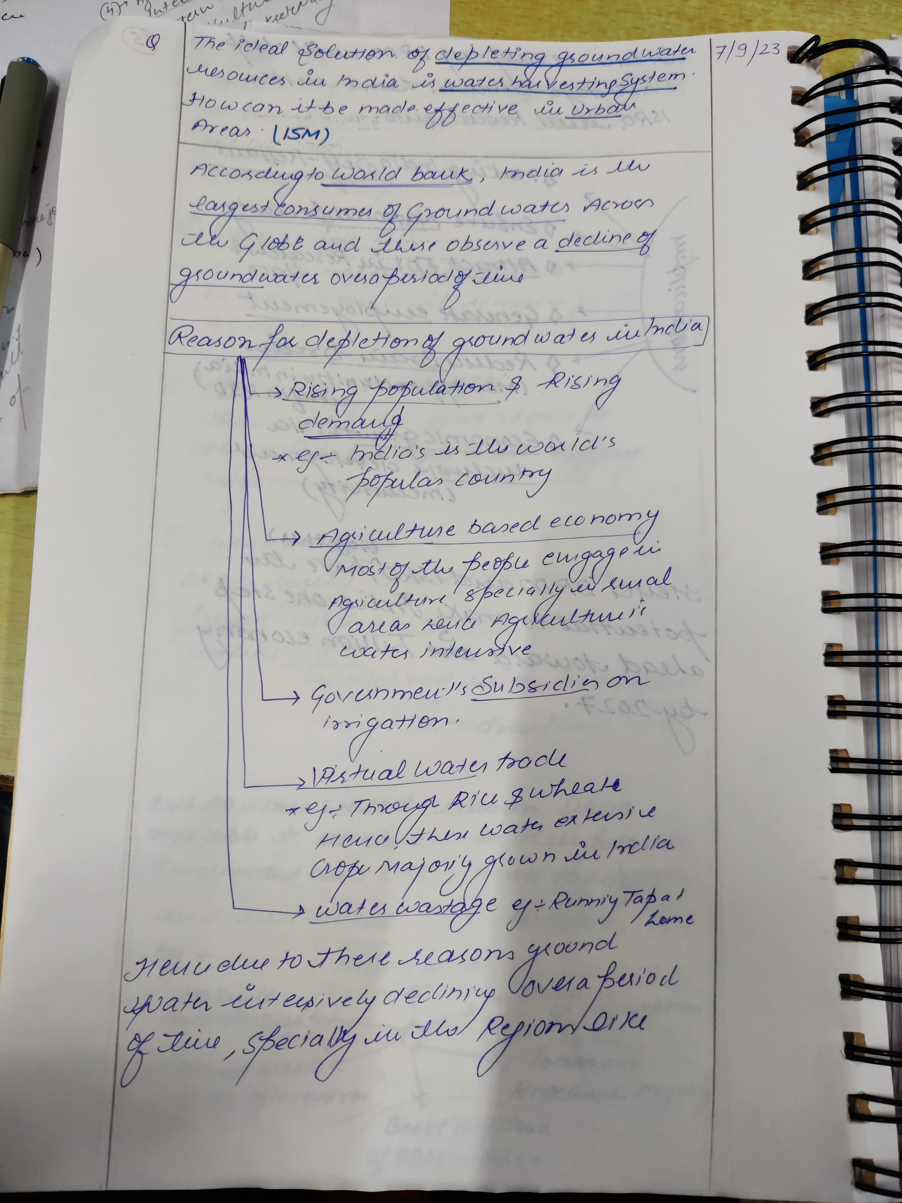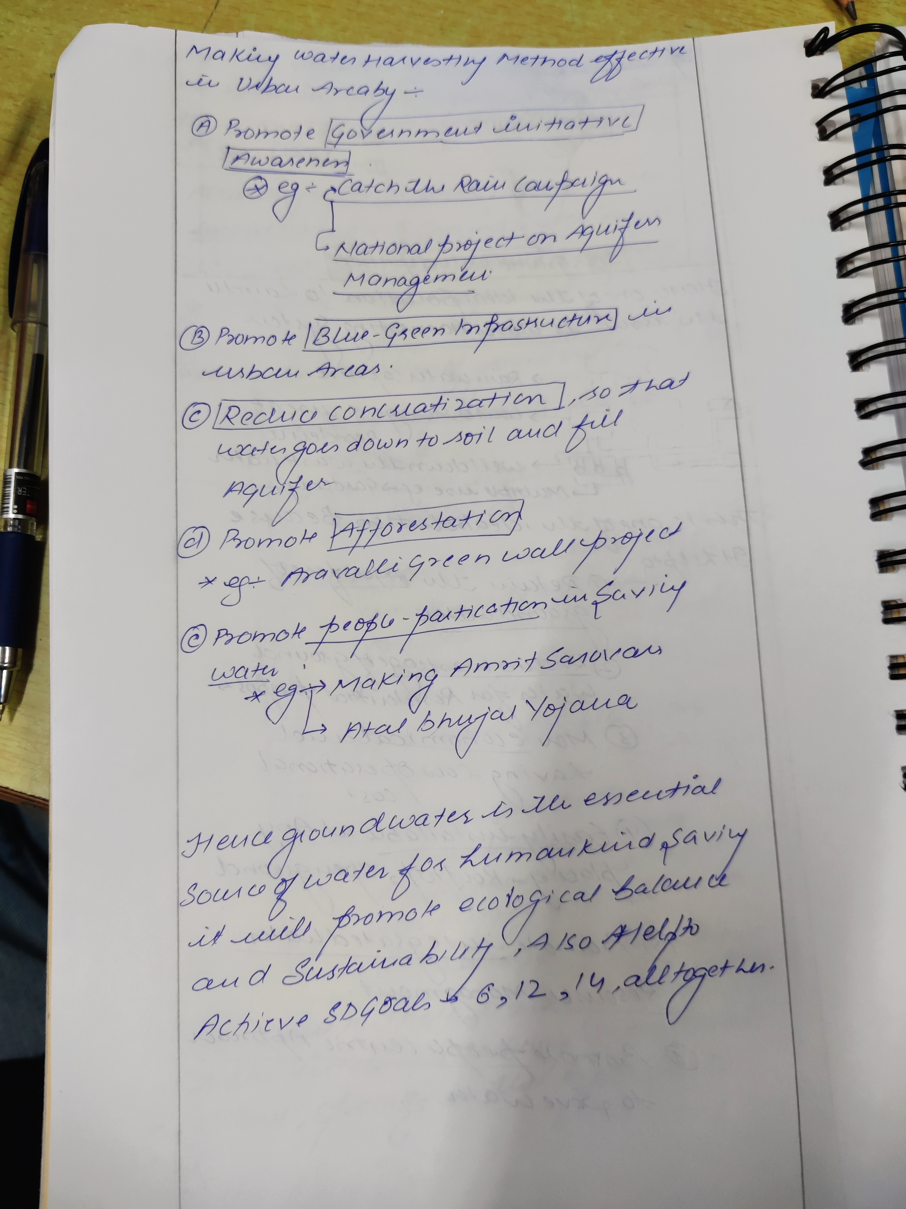 Q. The ideal solution of depleting ground water resources in India is water harvesting system. How can it be made effective in urban areas? (250 words, 15 Marks)