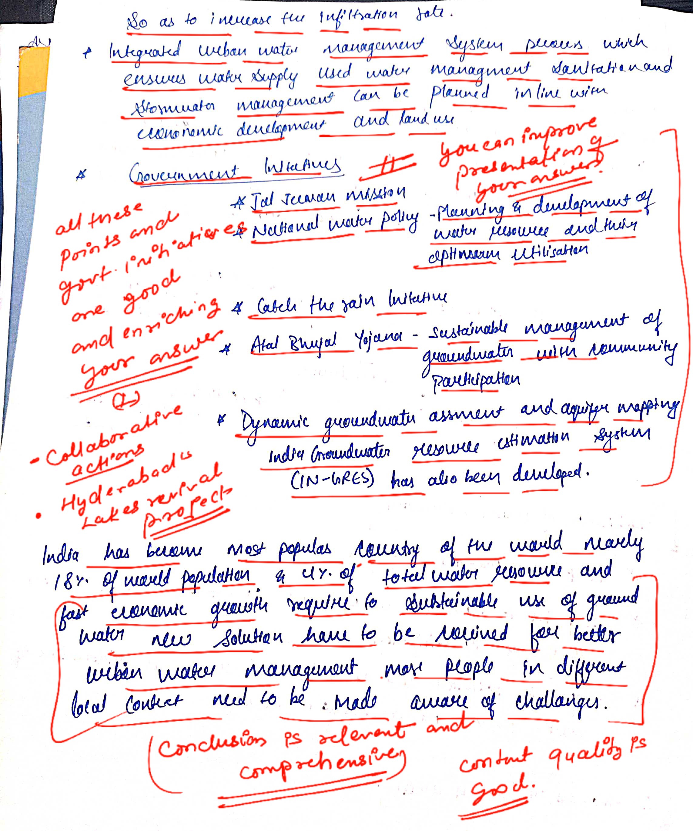 • Introduction: Highlight the immediacy of India’s water crisis using statistics. Cite the alarming predictions of the 2018 CWMI report by Niti Aayog concerning urban centers.