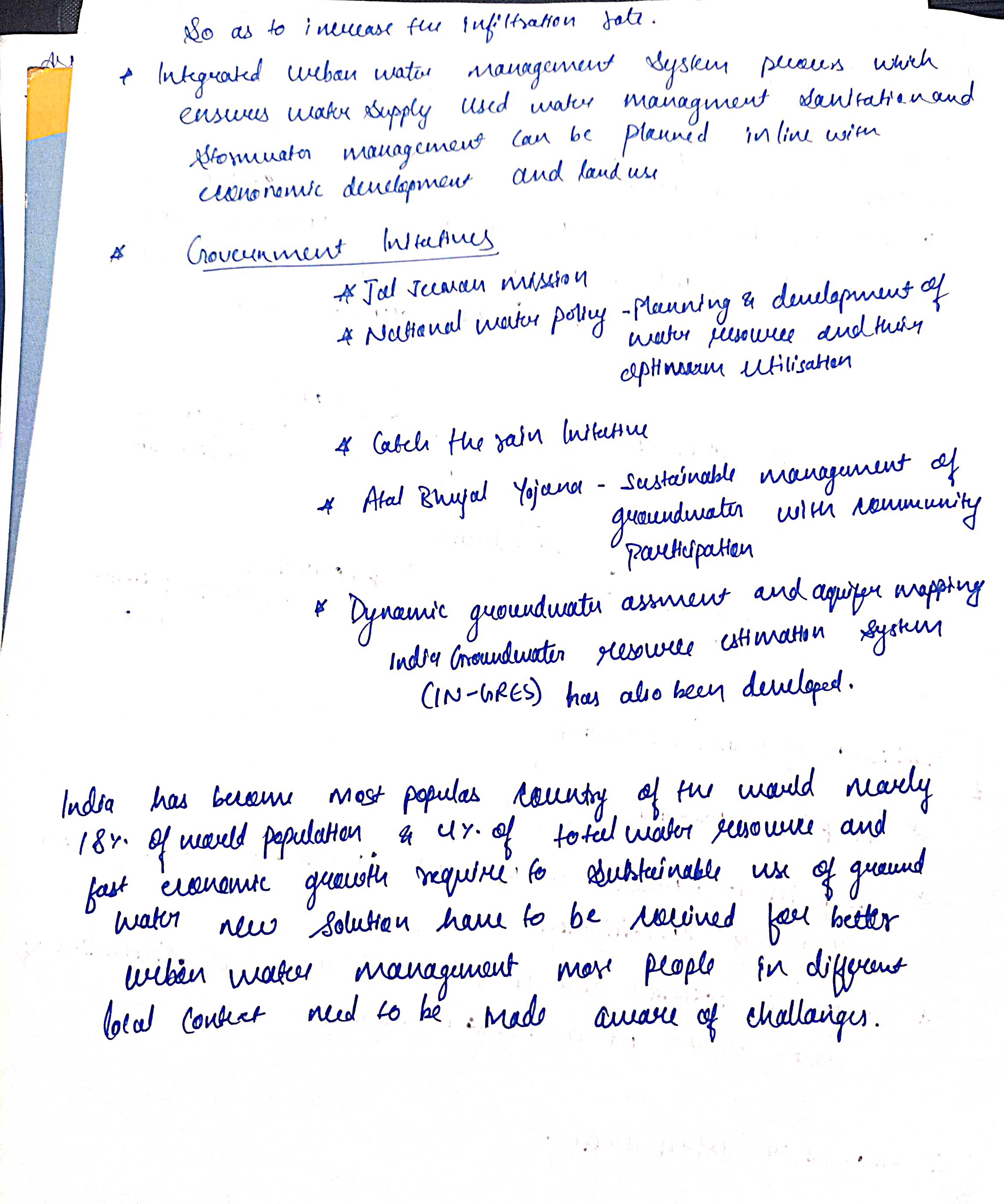 • For instance, Hyderabad’s ‘Lakes Revival’ project which focuses on restoring its ancient lakes, helping in groundwater recharge.