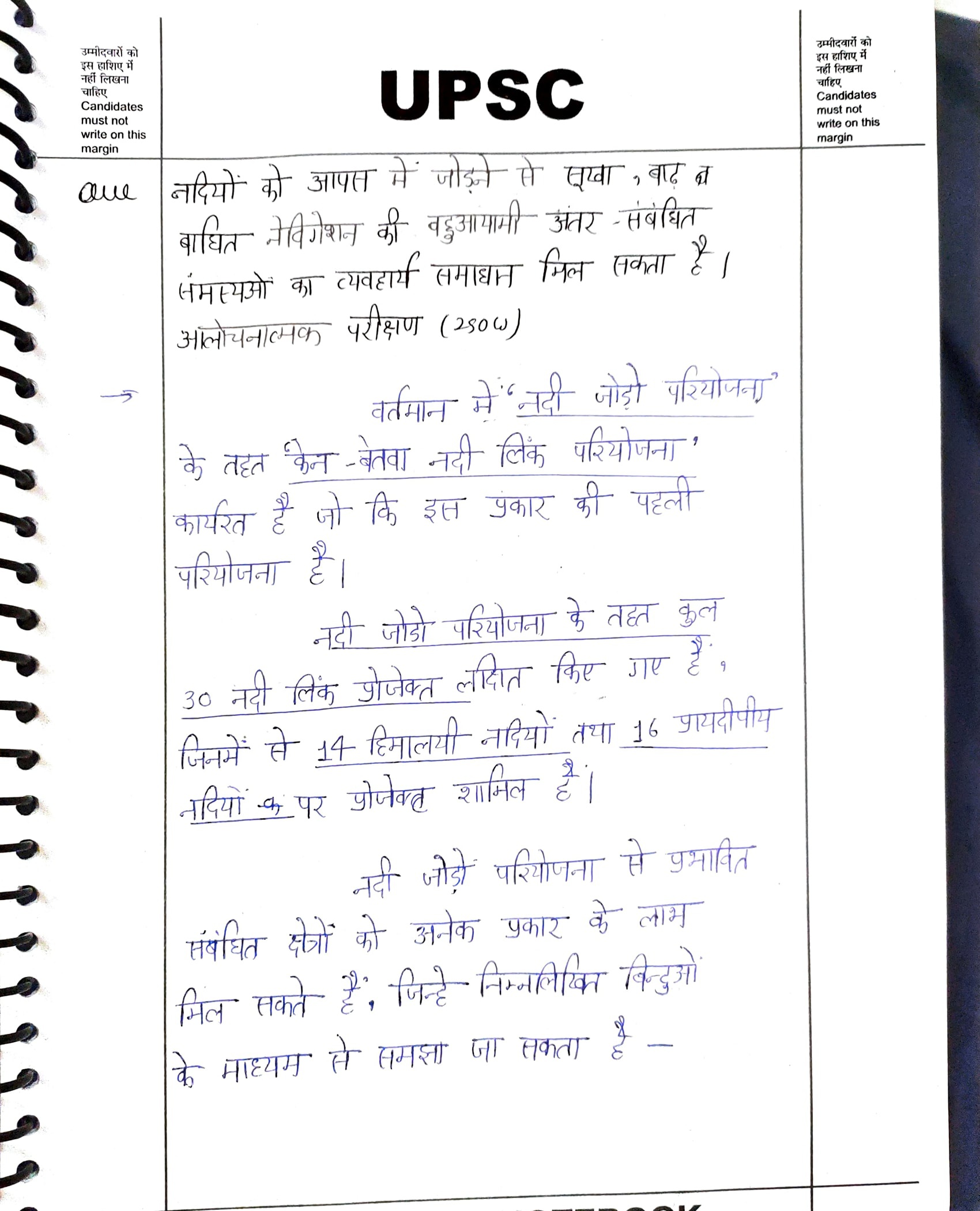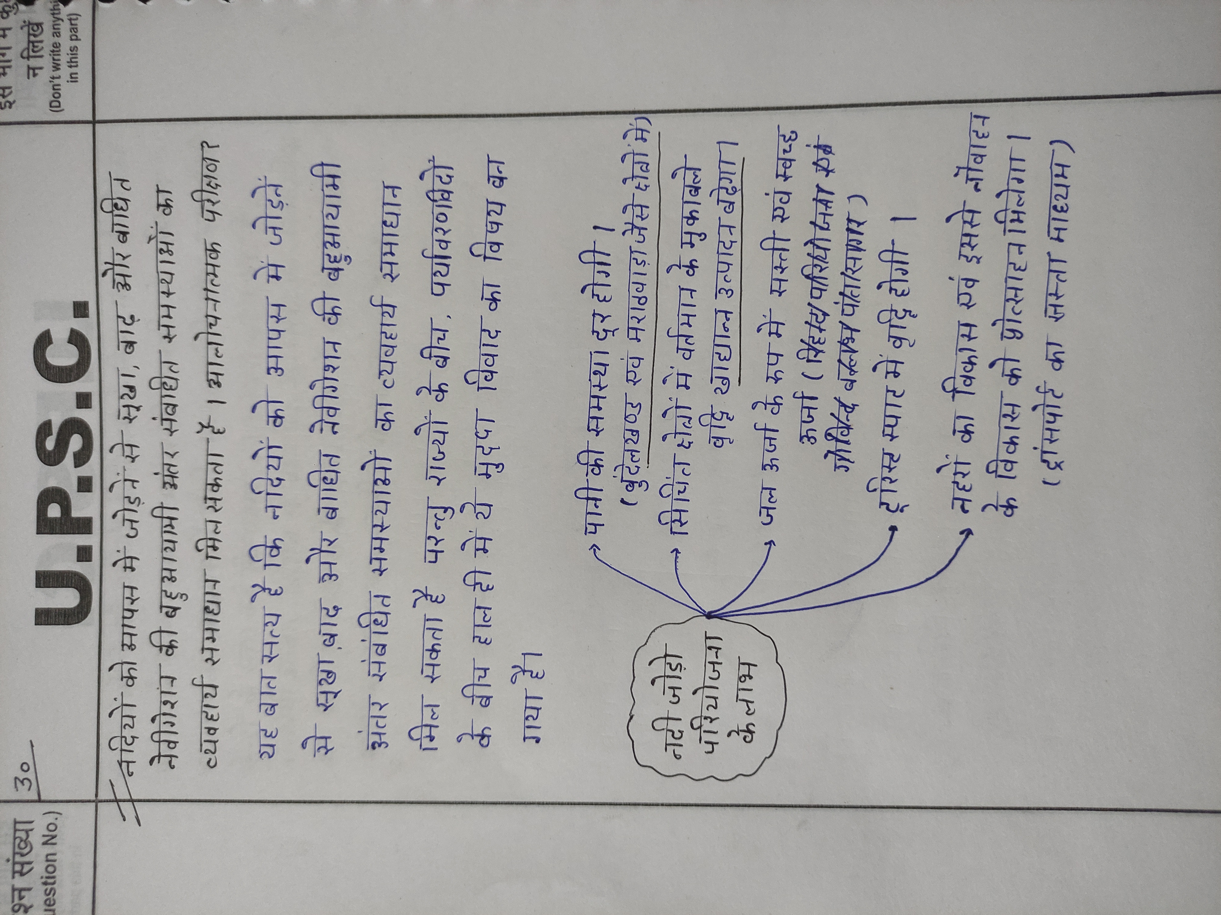 - परिचय: भारत में नदियों को आपस में जोड़ने के मुख्य आधार को रेखांकित करते हुए, सूखे, बाढ़ और नौवहन संबंधी मुद्दों के समाधान में इसके प्रस्तावित महत्व को स्थापित करते हुए शुरुआत कीजिए।