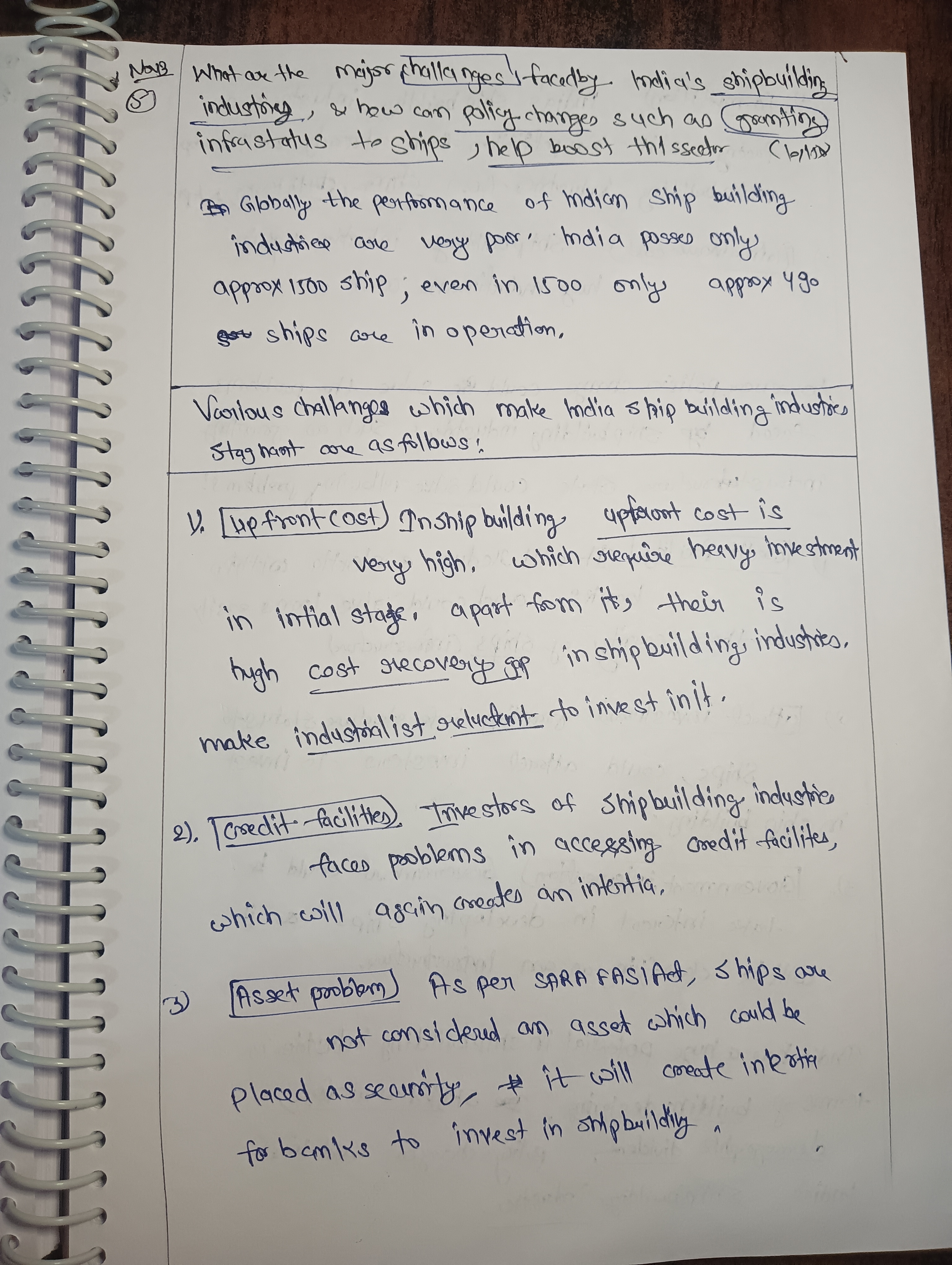 - Discuss the major challenges faced by India’s shipbuilding industry.