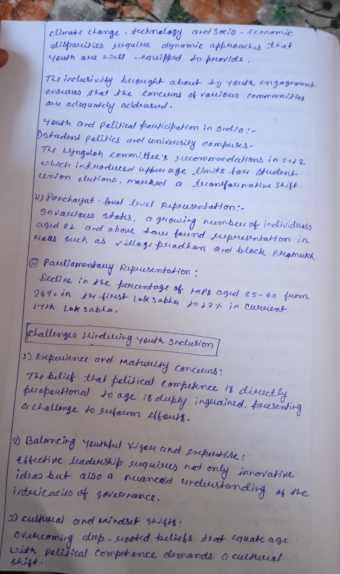 - Introduction: Mention the debate over lowering the minimum age to enter Parliament in India. Highlight that 65% of India’s population is under 35.