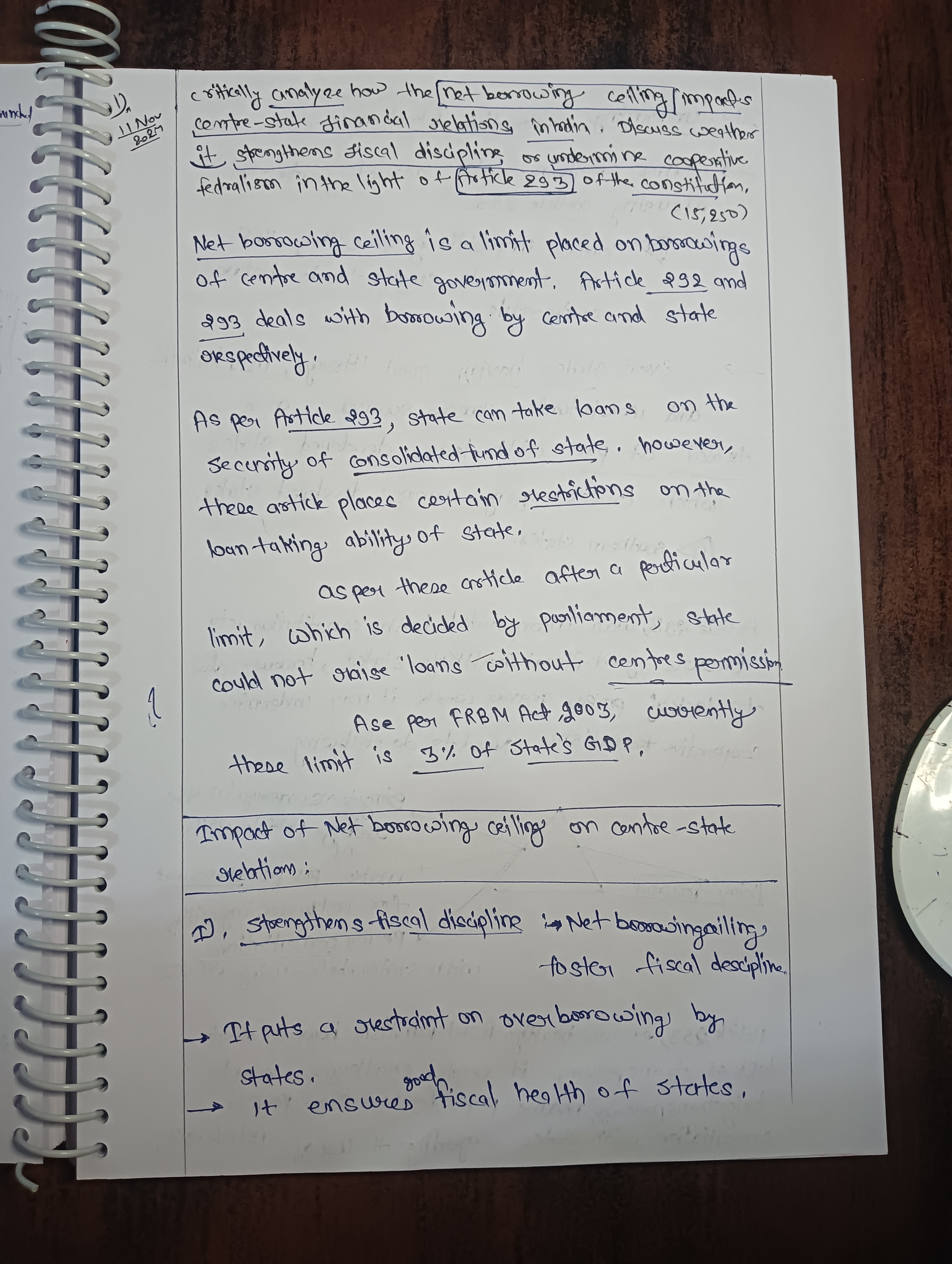 - Analyse the challenges of the Net Borrowing Ceiling on Centre-State financial relations in India.
