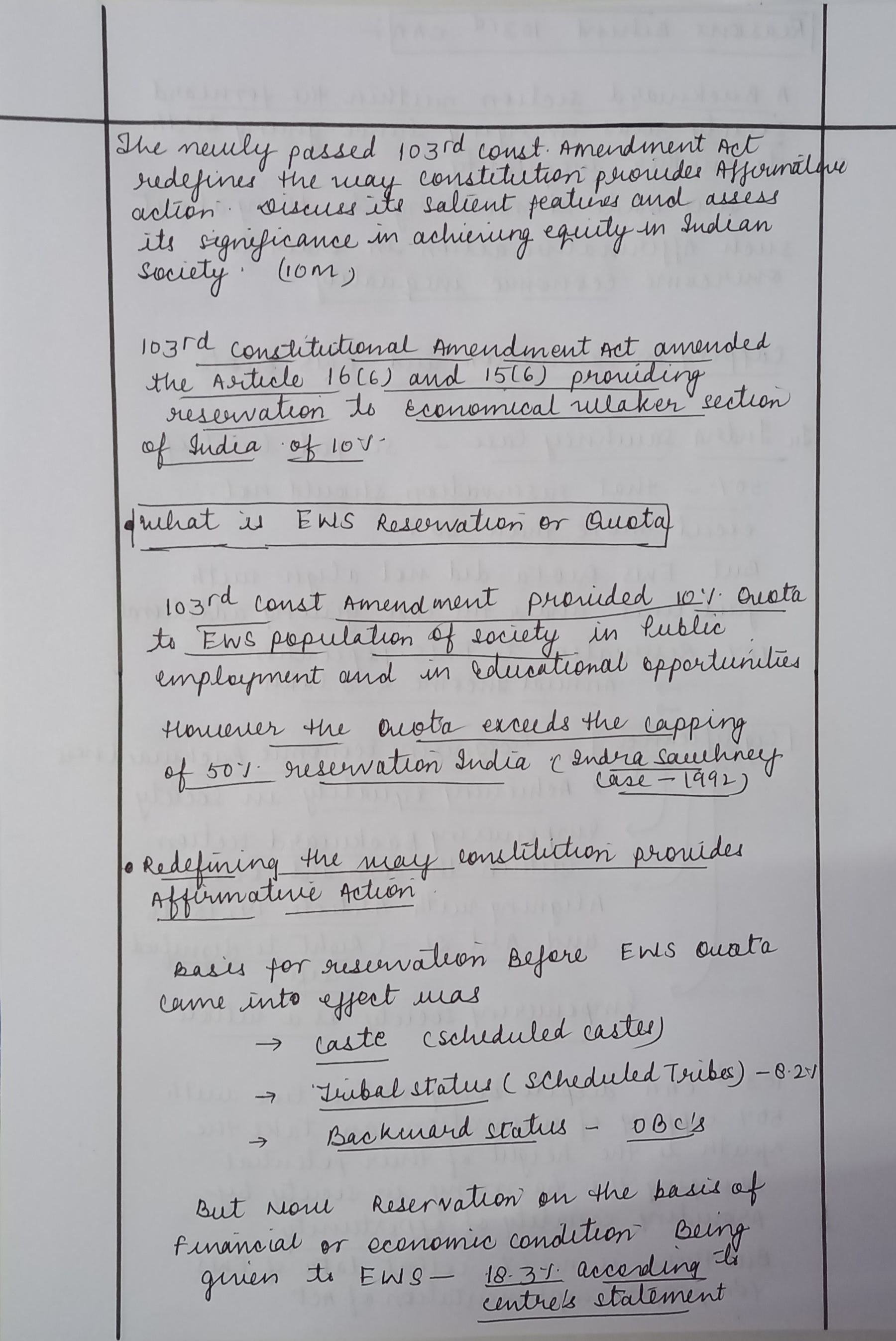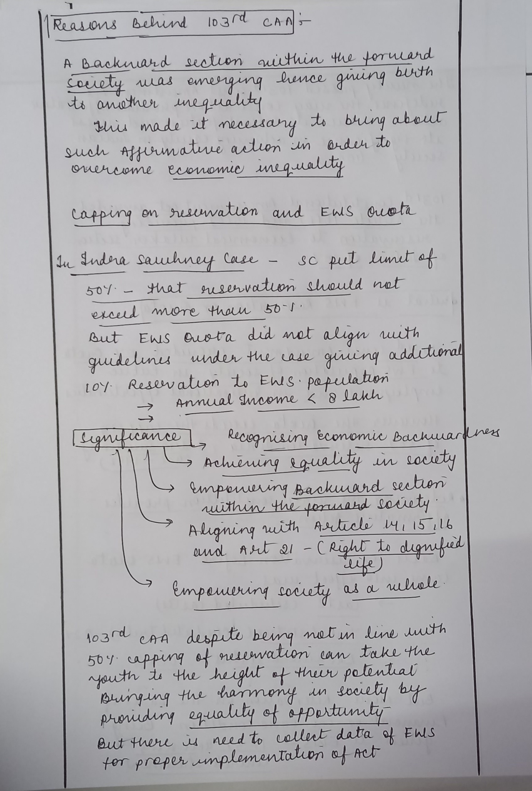 - It provided a 10% reservation in educational institutions and government jobs for economically weaker sections (EWS) among the general category, extending reservation beyond traditionally disadvantaged groups.