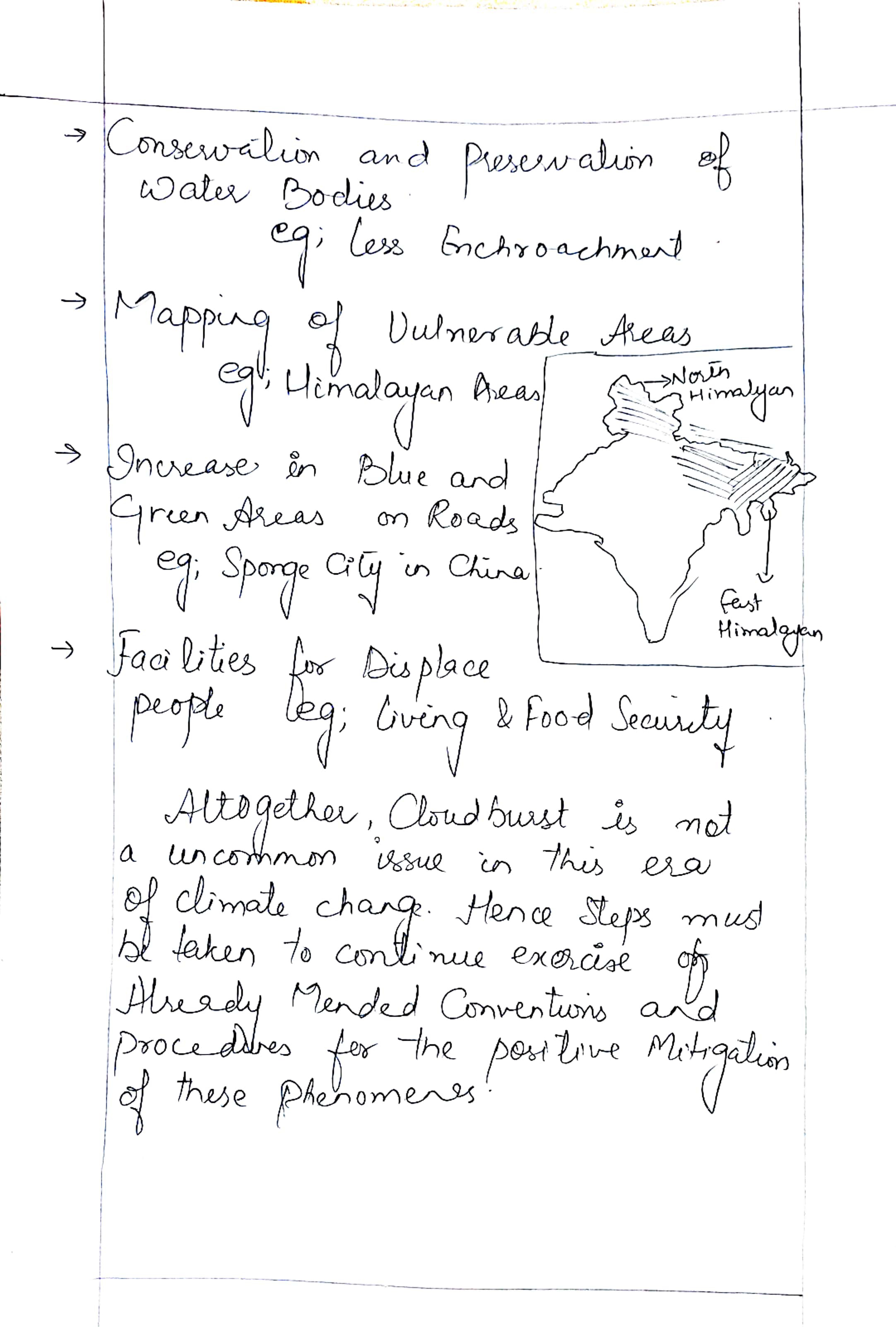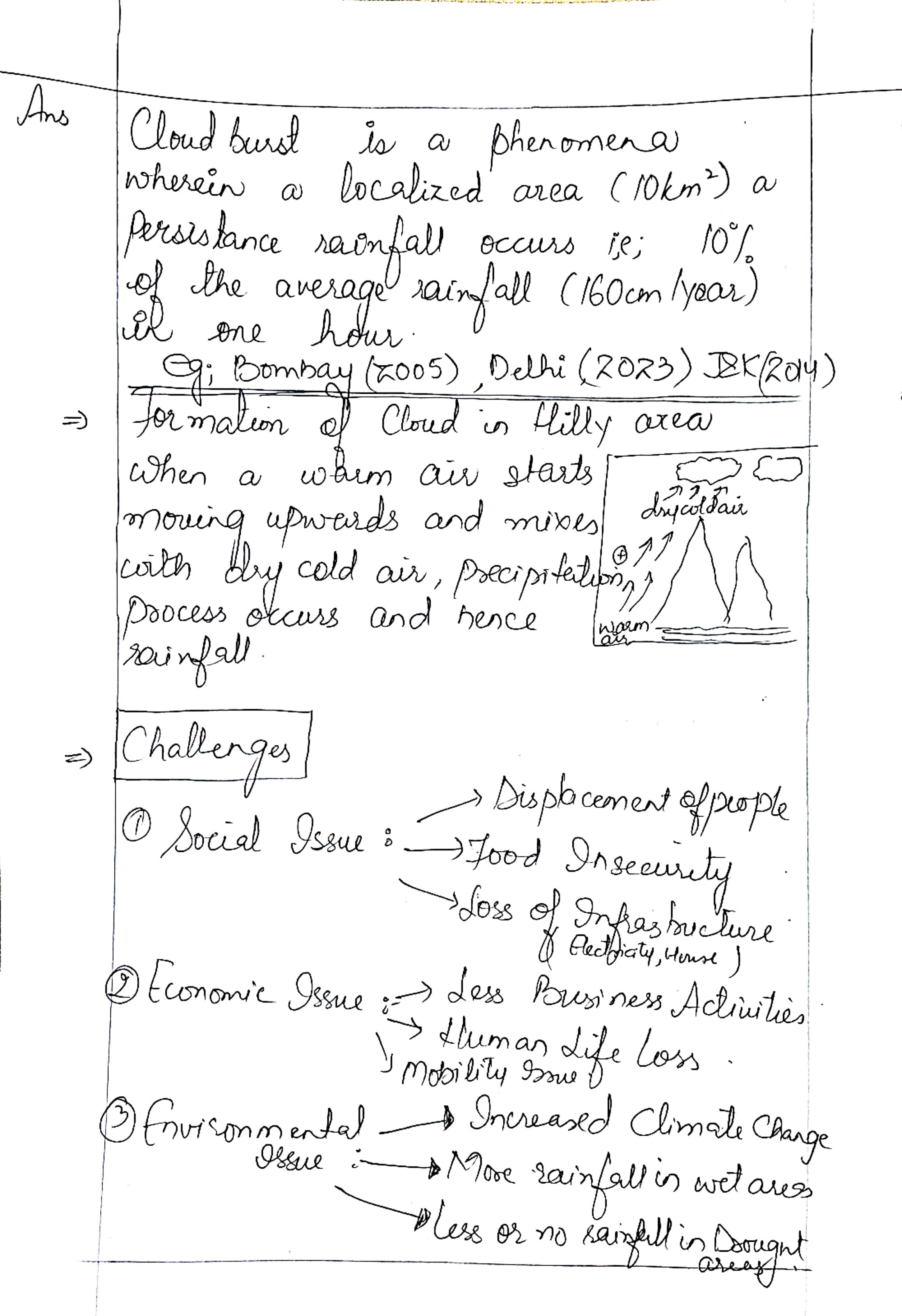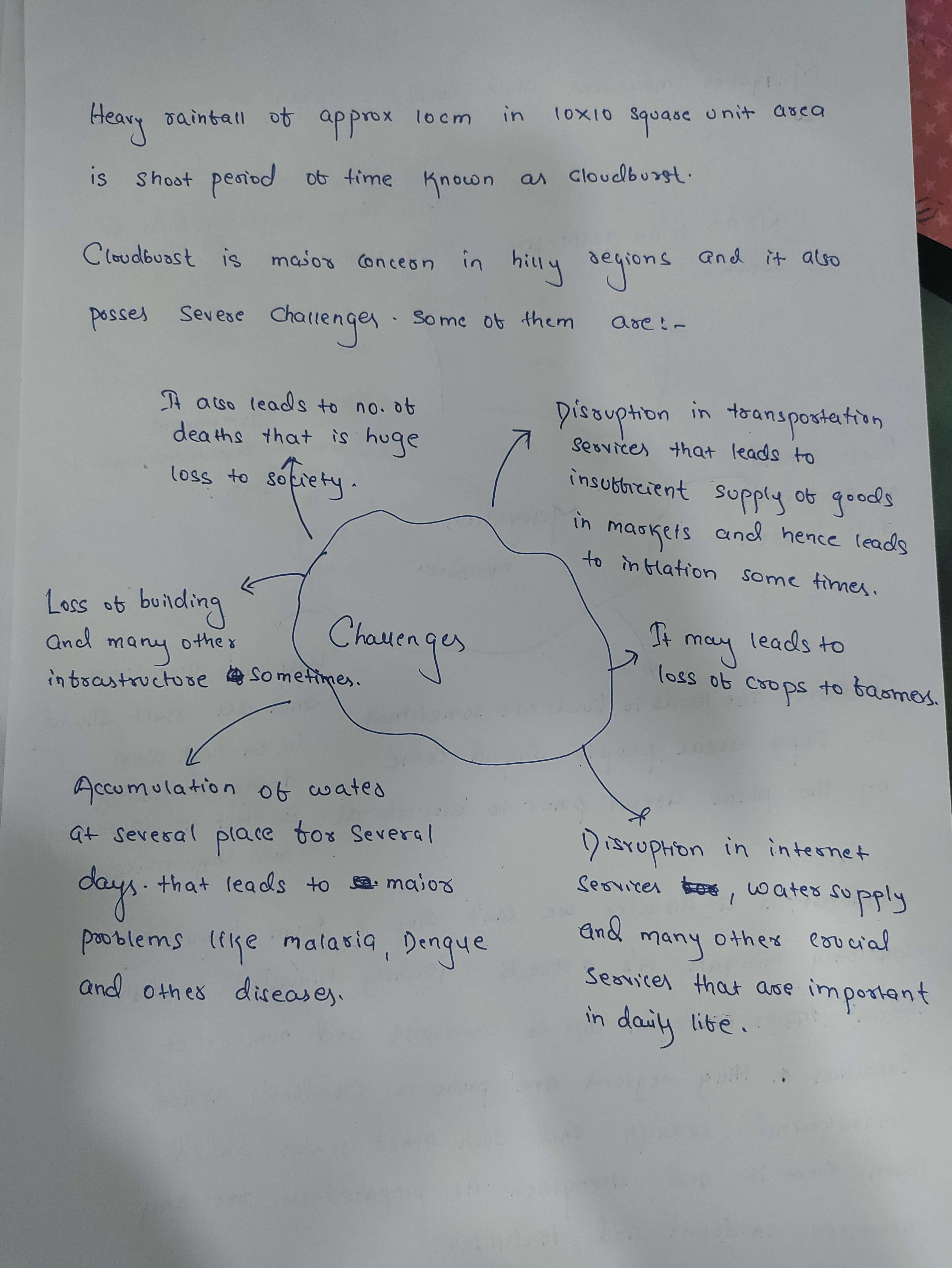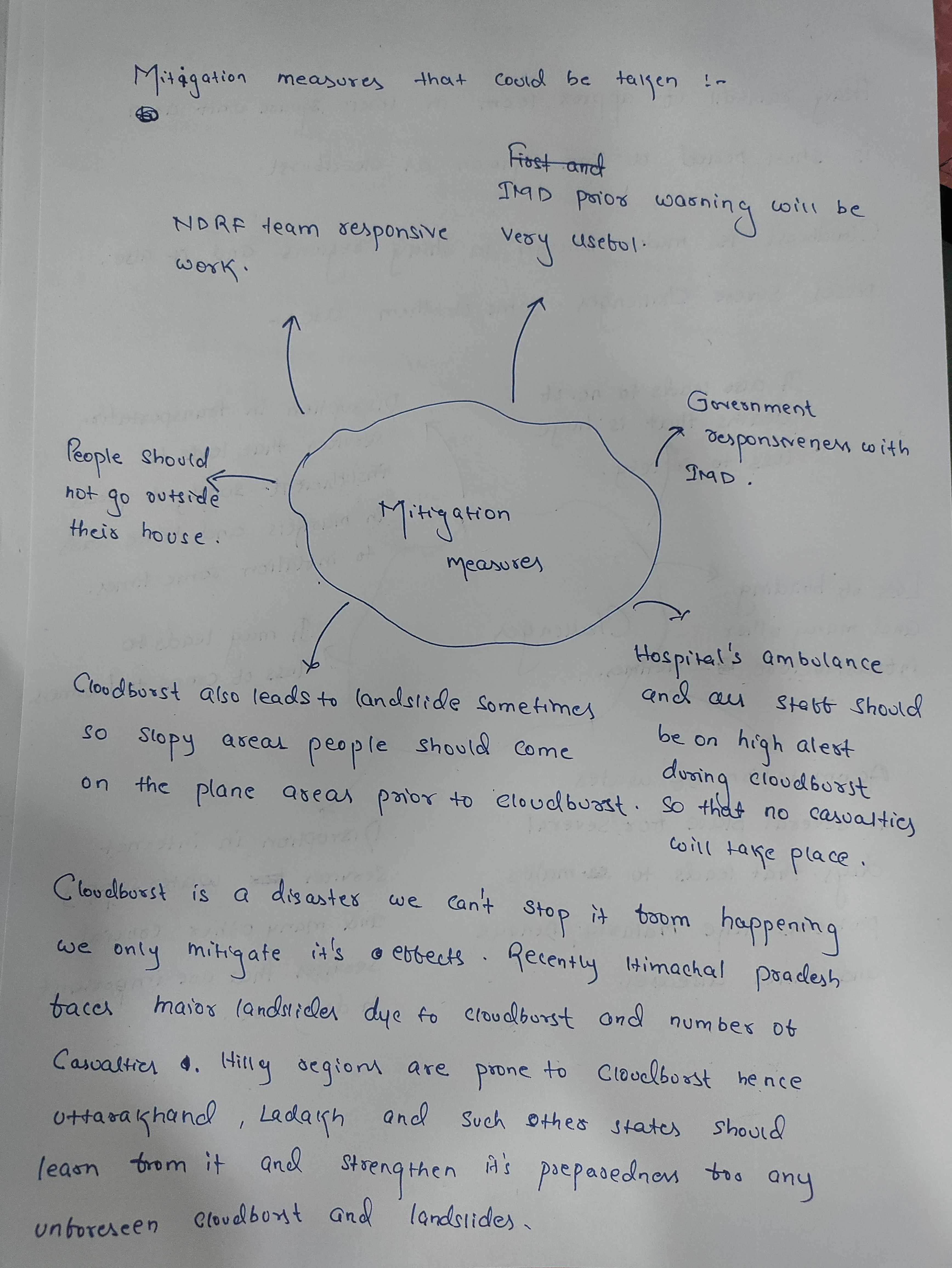 Cloudbursts, while natural, have their devastating impacts amplified due to anthropogenic factors like deforestation, unplanned urbanization, and the degradation of natural water channels. By synergizing technology, policy, and community awareness, India can mitigate the challenges posed by cloudbursts, ensuring both the safety of its people and the preservation of its ecologically rich hilly terrains.