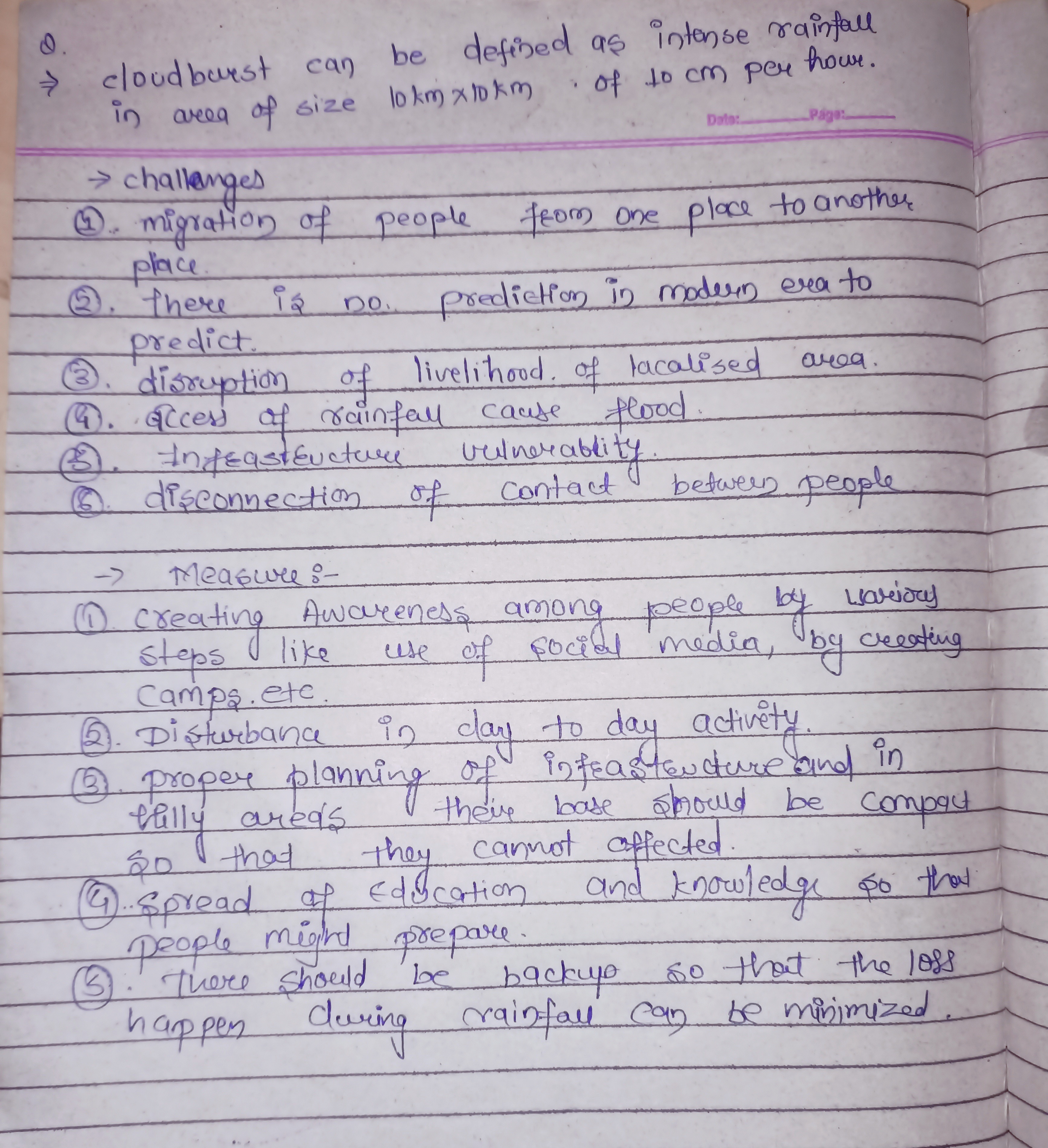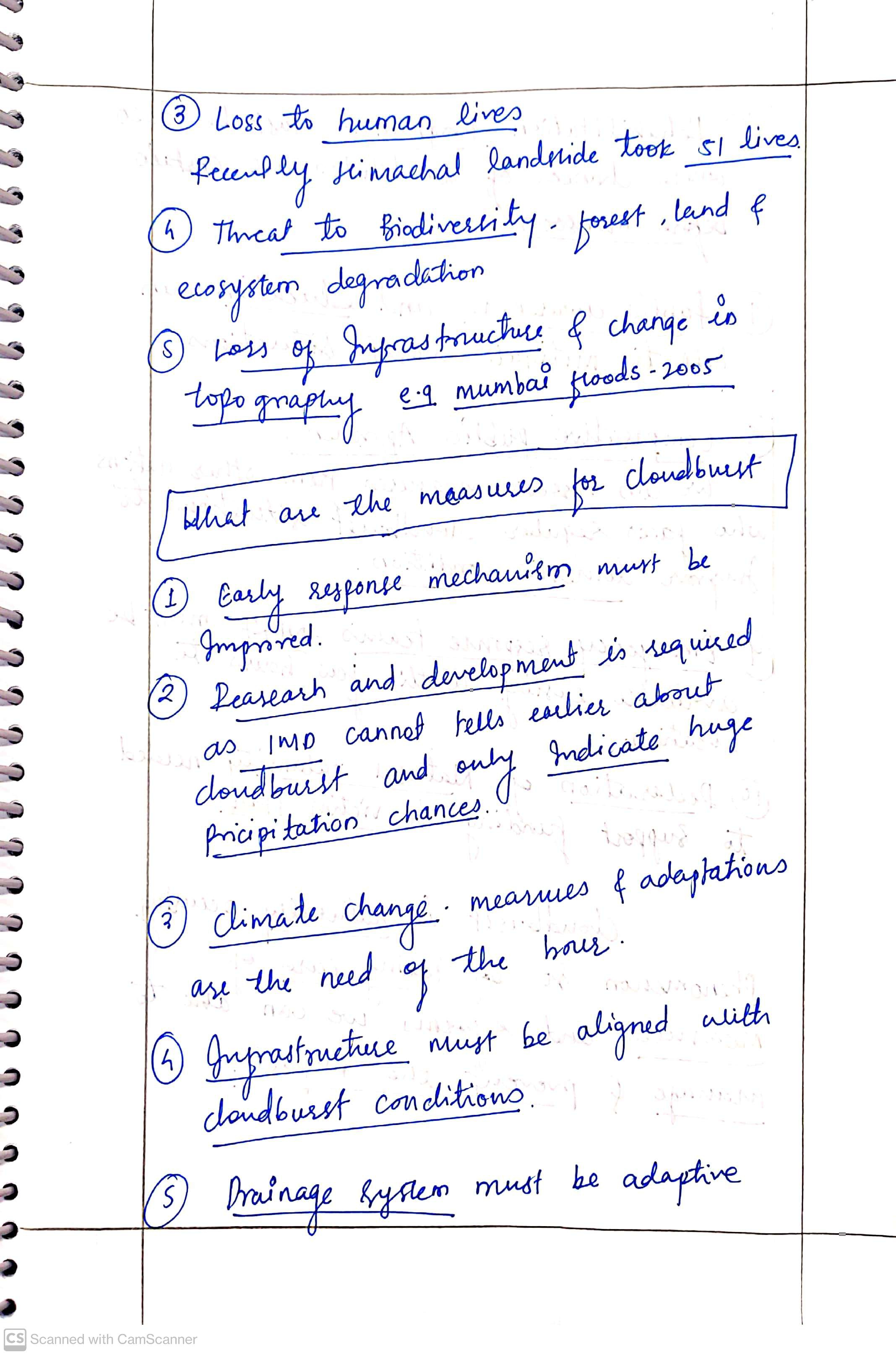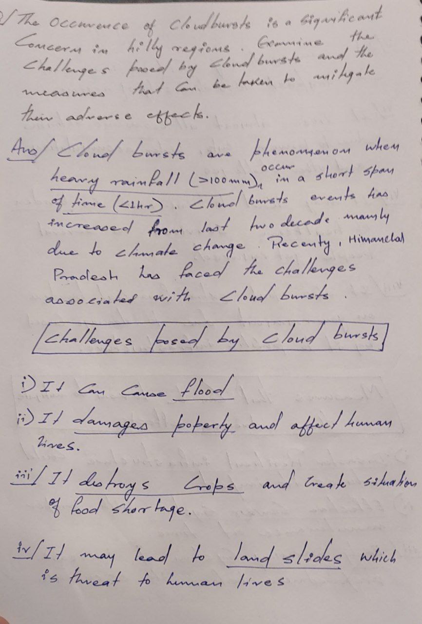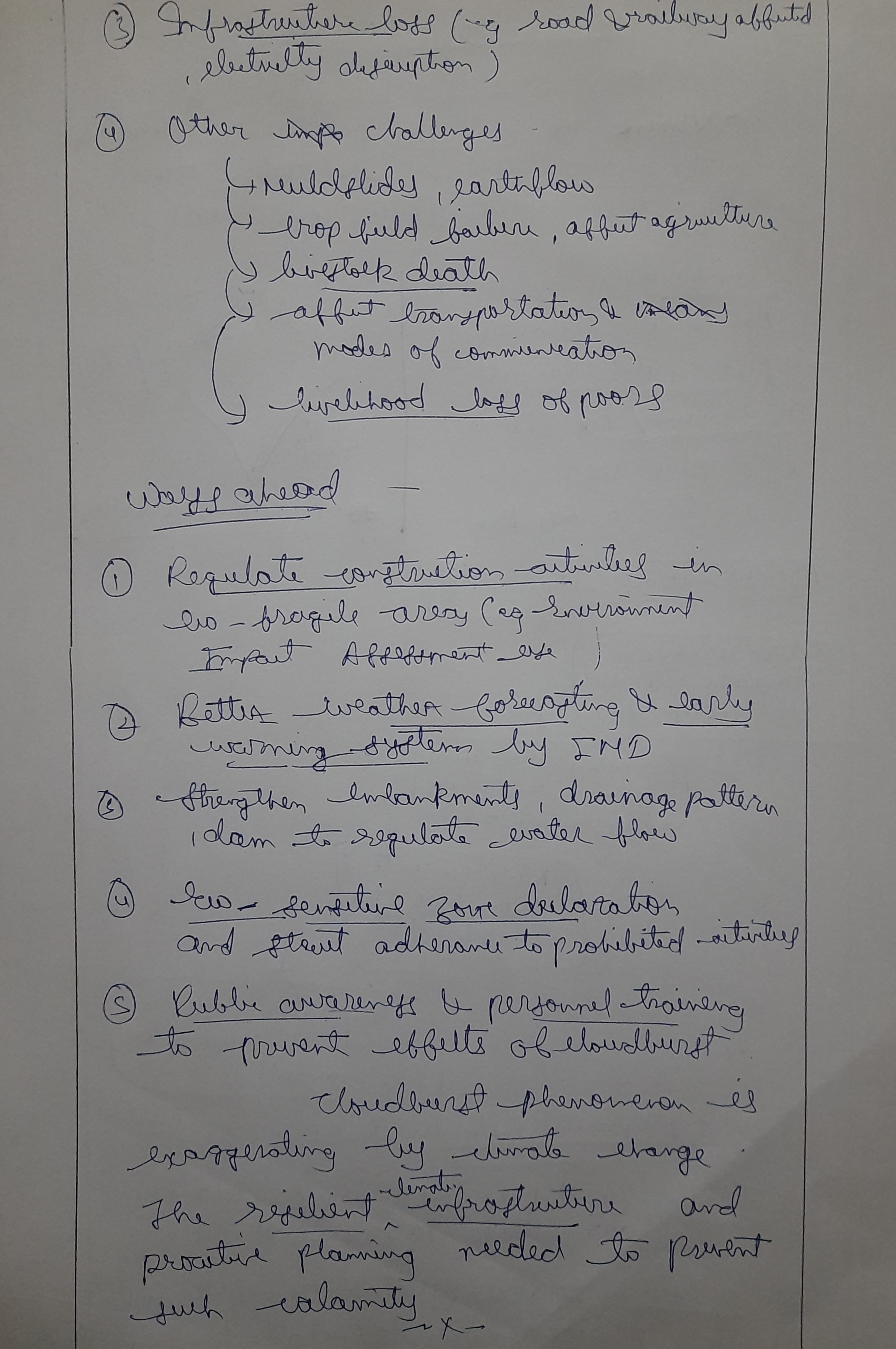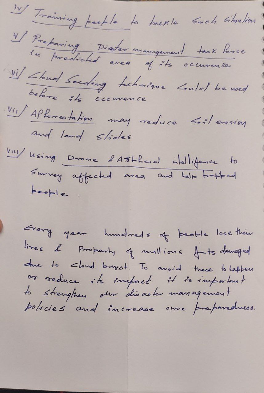 Cloudbursts, while natural, have their devastating impacts amplified due to anthropogenic factors like deforestation, unplanned urbanization, and the degradation of natural water channels. By synergizing technology, policy, and community awareness, India can mitigate the challenges posed by cloudbursts, ensuring both the safety of its people and the preservation of its ecologically rich hilly terrains.