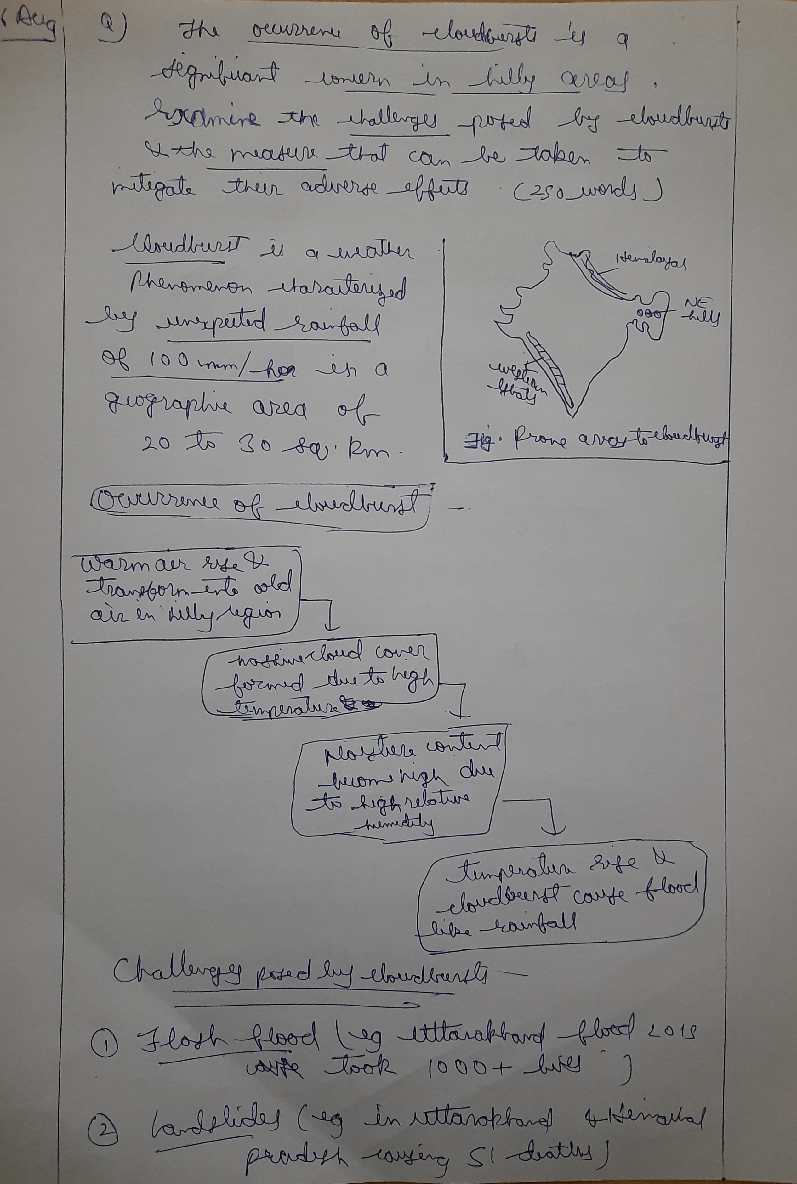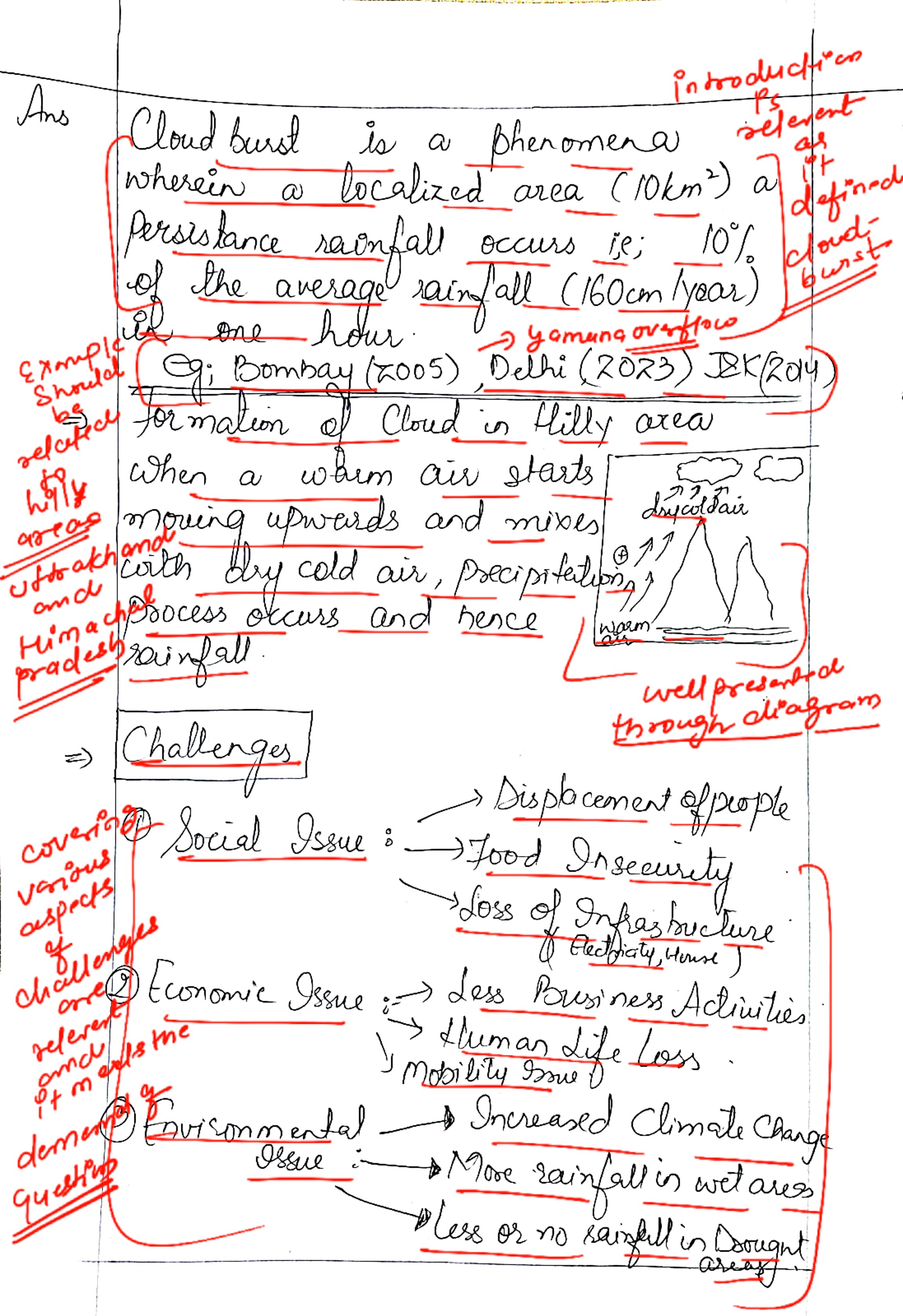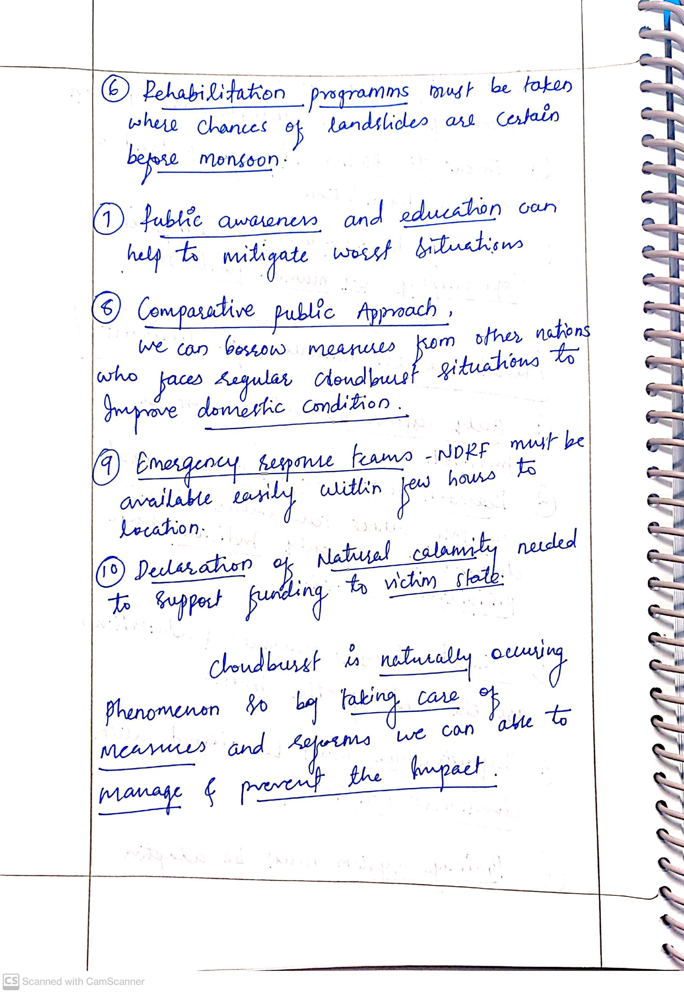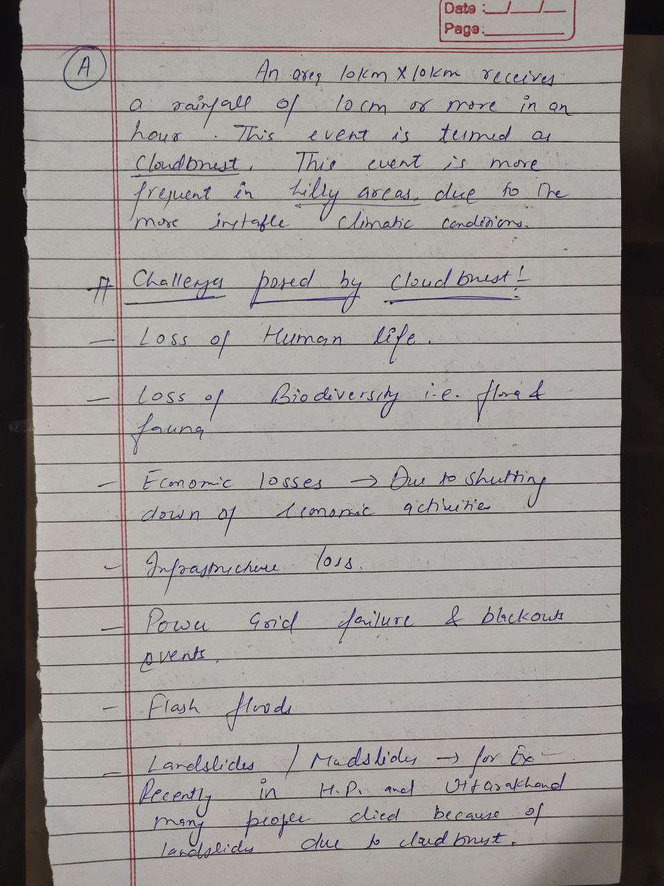 Cloudbursts, while natural, have their devastating impacts amplified due to anthropogenic factors like deforestation, unplanned urbanization, and the degradation of natural water channels. By synergizing technology, policy, and community awareness, India can mitigate the challenges posed by cloudbursts, ensuring both the safety of its people and the preservation of its ecologically rich hilly terrains.