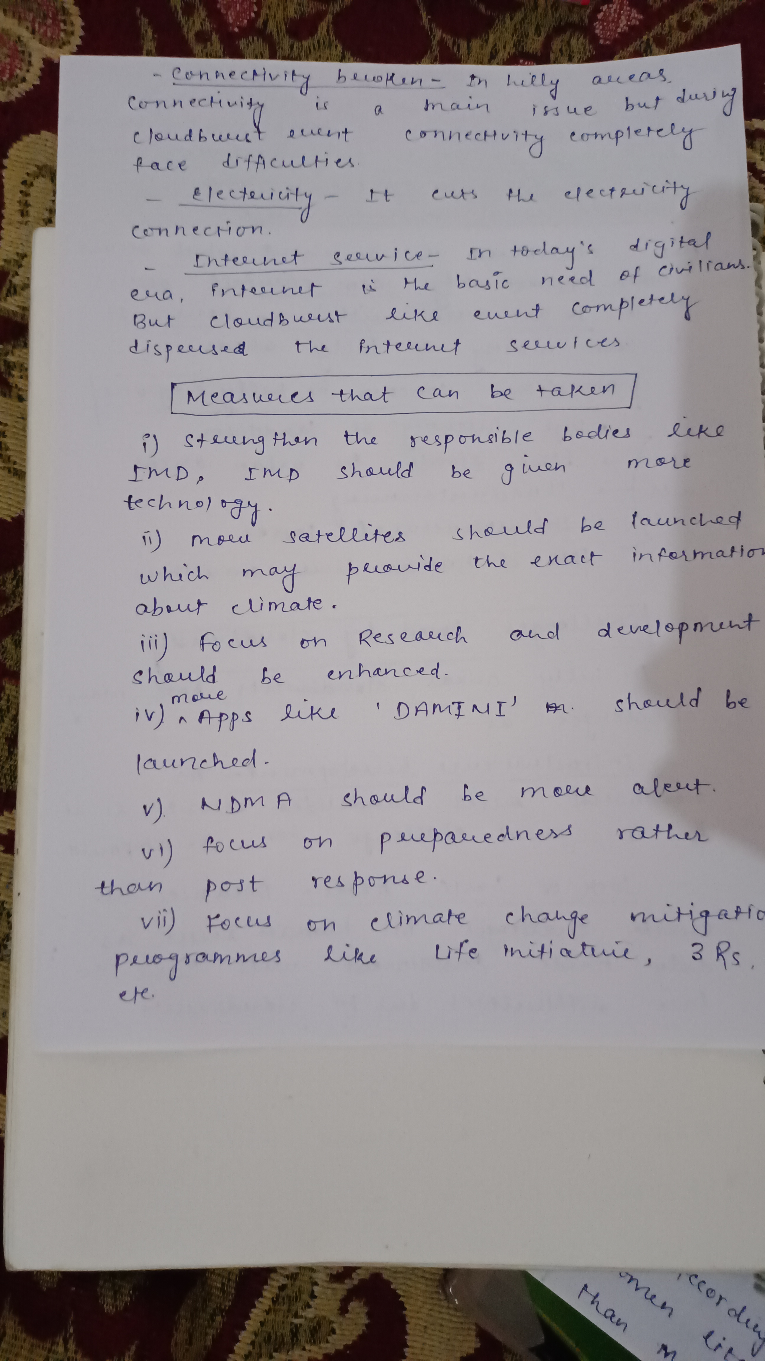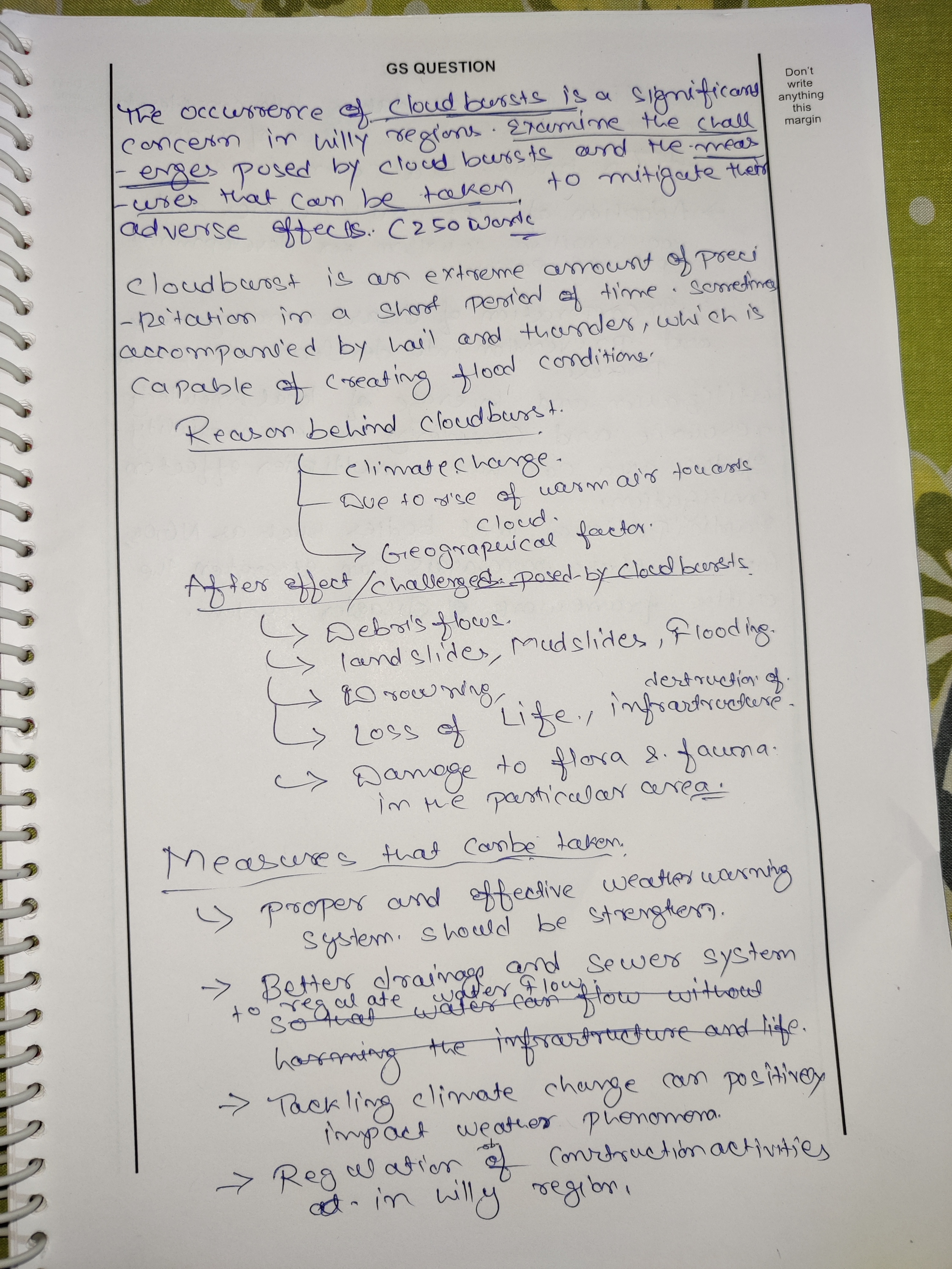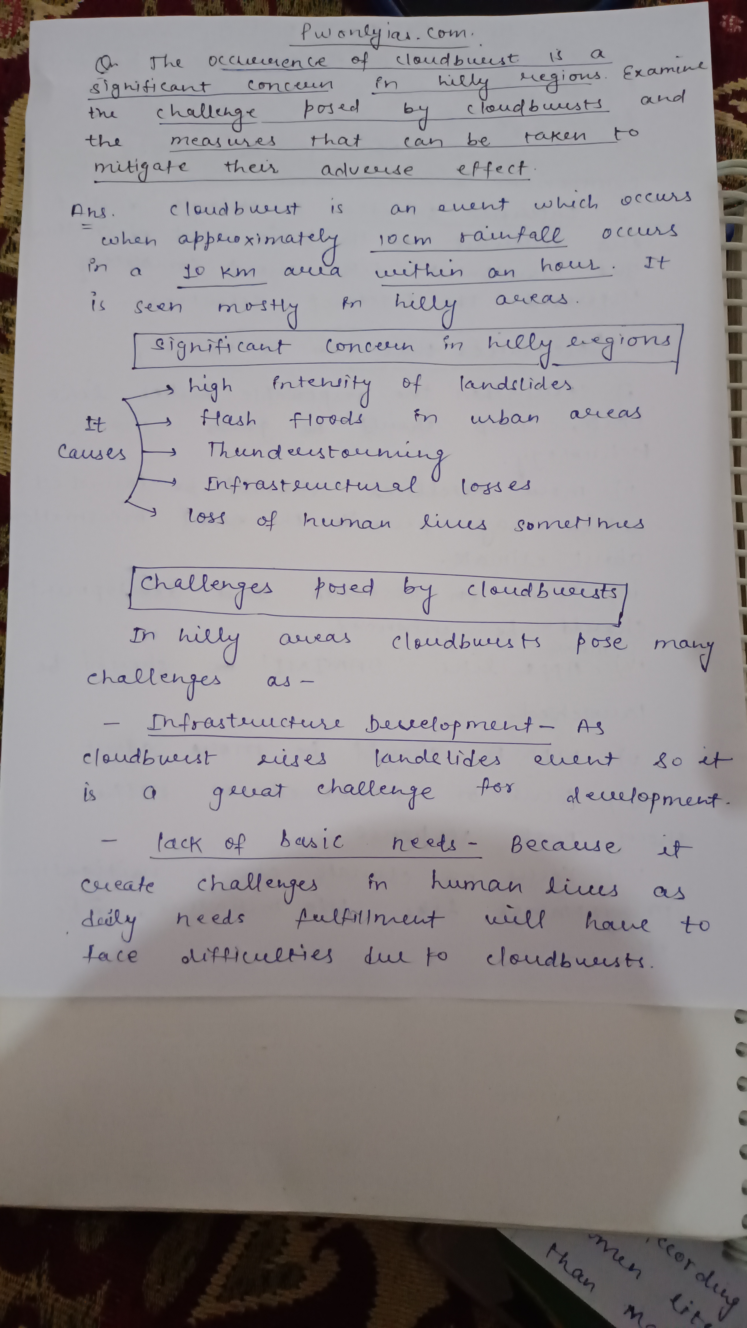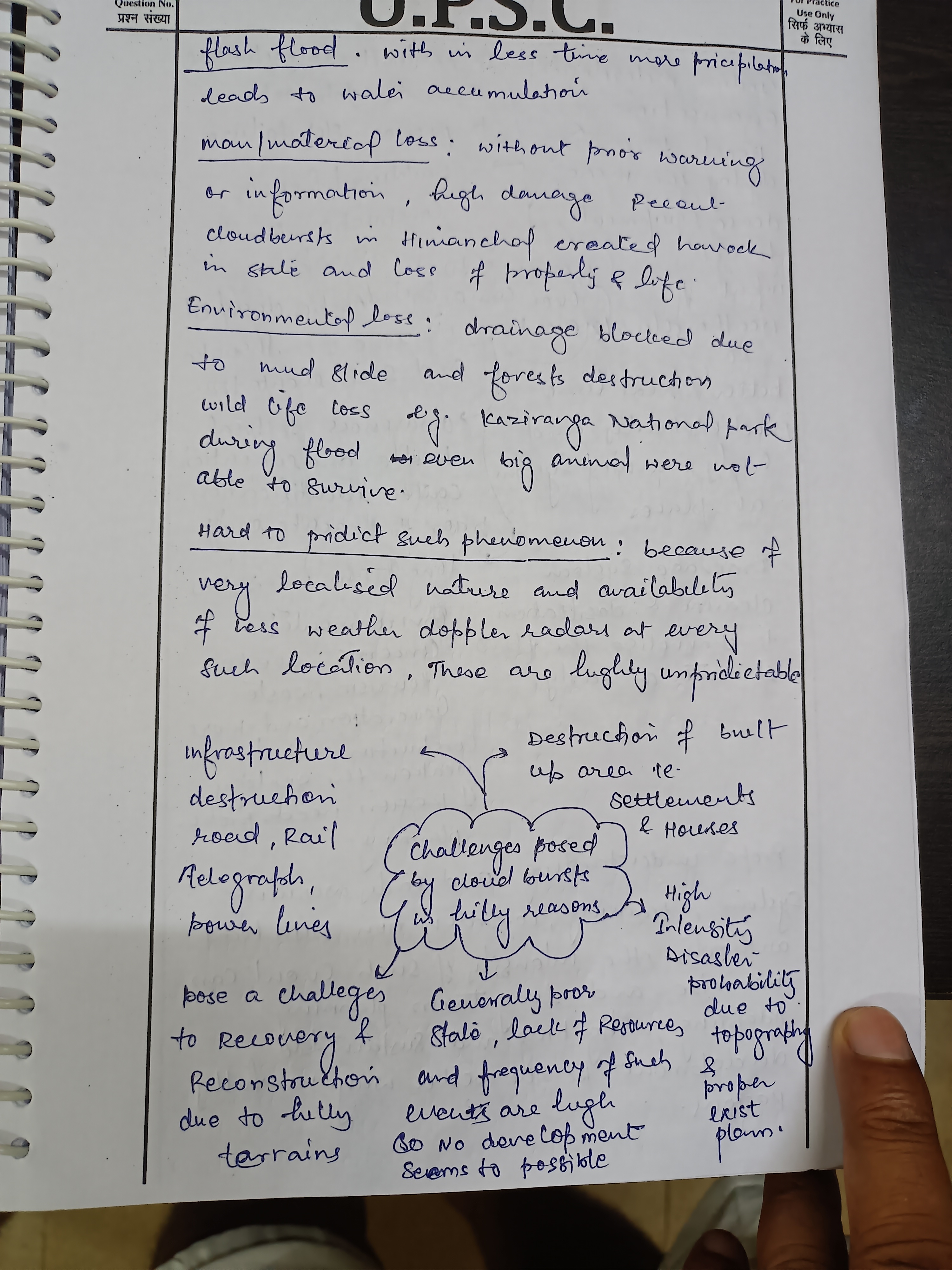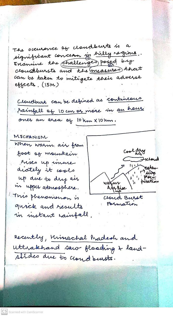 Cloudbursts, while natural, have their devastating impacts amplified due to anthropogenic factors like deforestation, unplanned urbanization, and the degradation of natural water channels. By synergizing technology, policy, and community awareness, India can mitigate the challenges posed by cloudbursts, ensuring both the safety of its people and the preservation of its ecologically rich hilly terrains.