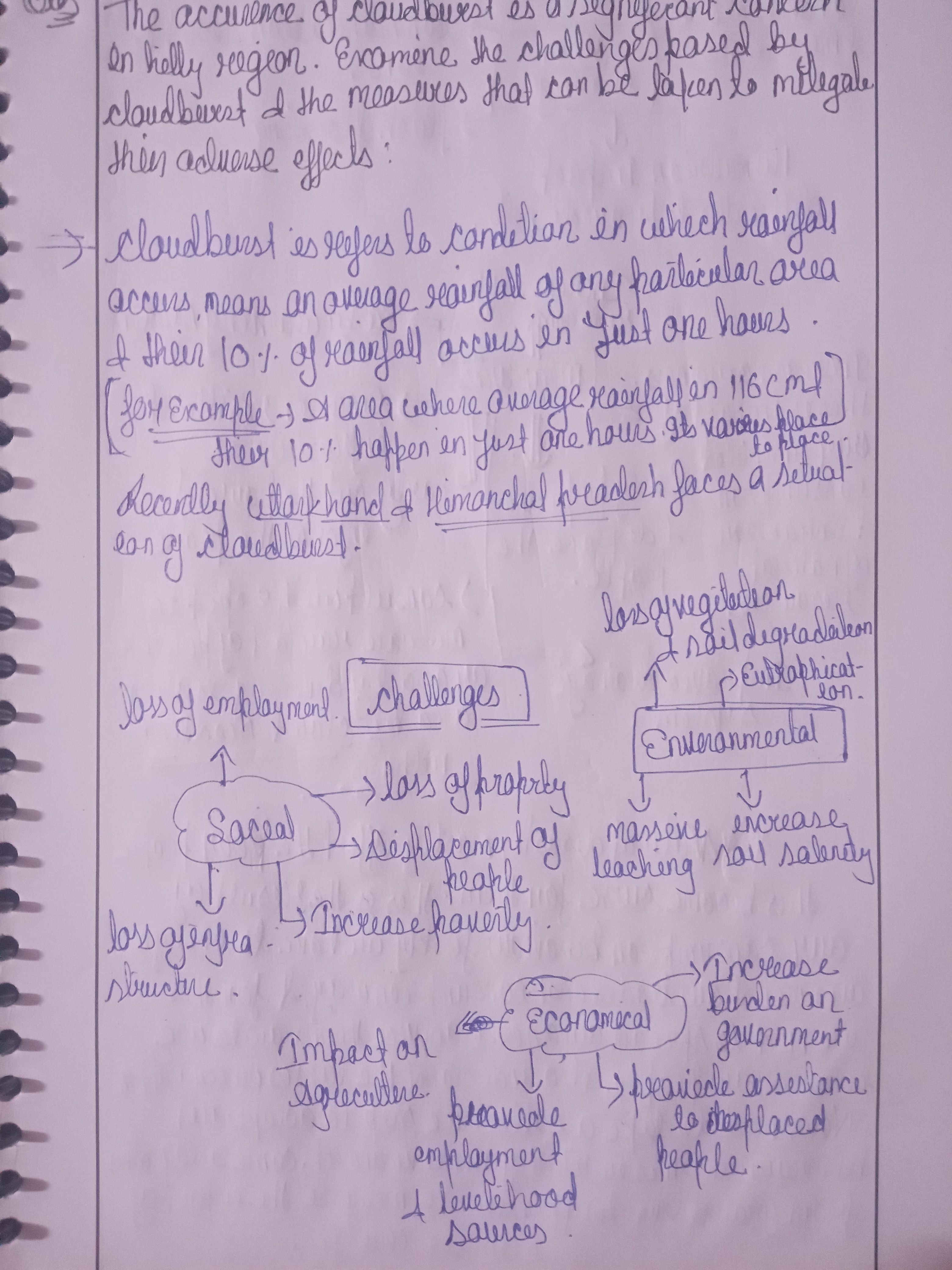 - For instance, the Leh cloudburst in 2010 caused massive landslides, impacting both the human population and the environment.