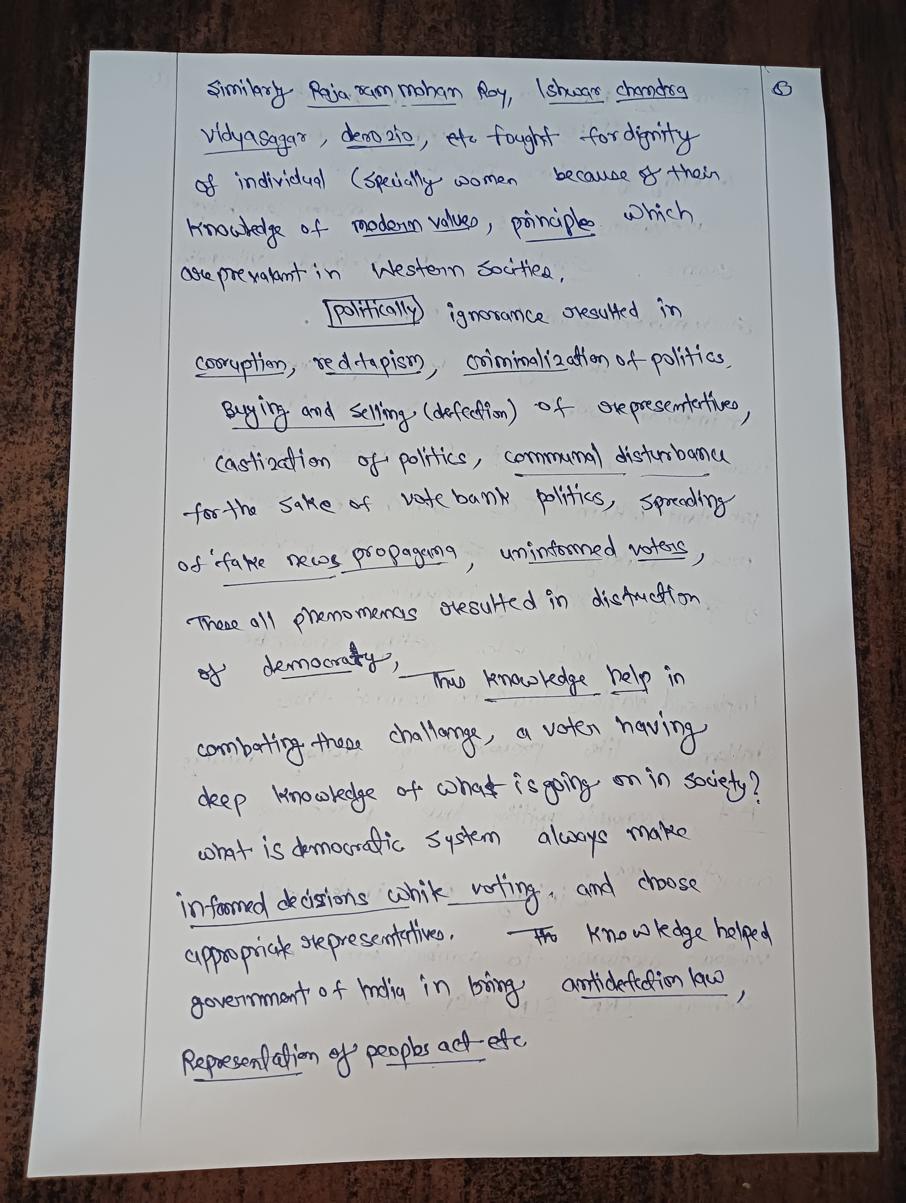 In addition, ignorance can perpetuate social inequalities and injustices. Without knowledge, marginalised groups may remain oppressed, and their contributions unrecognised. Education and awareness are crucial in addressing these inequities and promoting a more inclusive and just society. In India, the Right to Education Act (2009) serves as a notable example of how knowledge and education have promoted inclusivity and justice. By mandating free and compulsory education for children aged 6 to 14, the Act has helped reduce barriers to education for marginalised communities, improving literacy rates and empowering individuals to break the cycle of poverty and discrimination, thereby fostering a more inclusive and equitable society.
