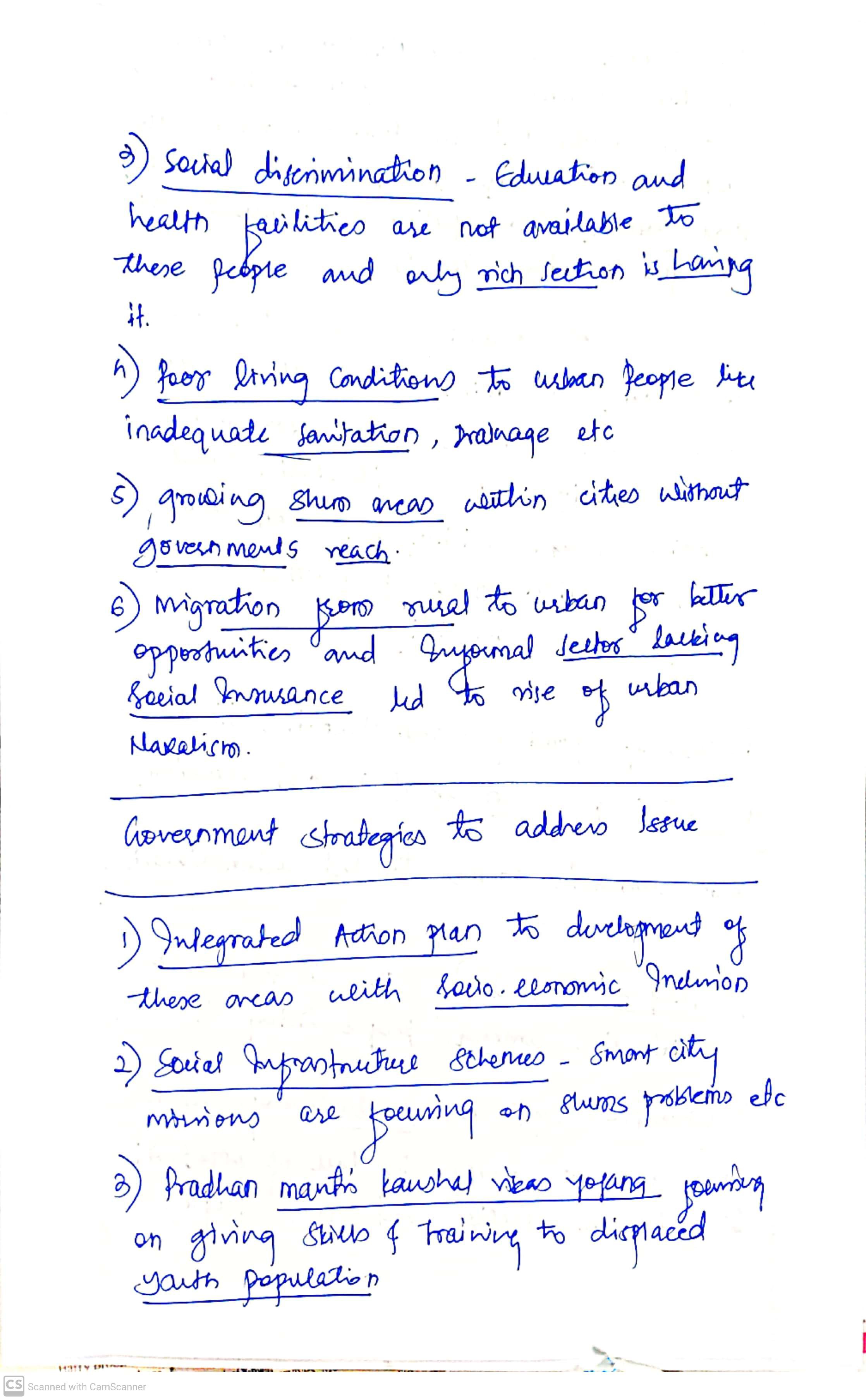 For Example: Inadequate schooling facilities in urban slums of Delhi and Mumbai limit opportunities for upward mobility.
