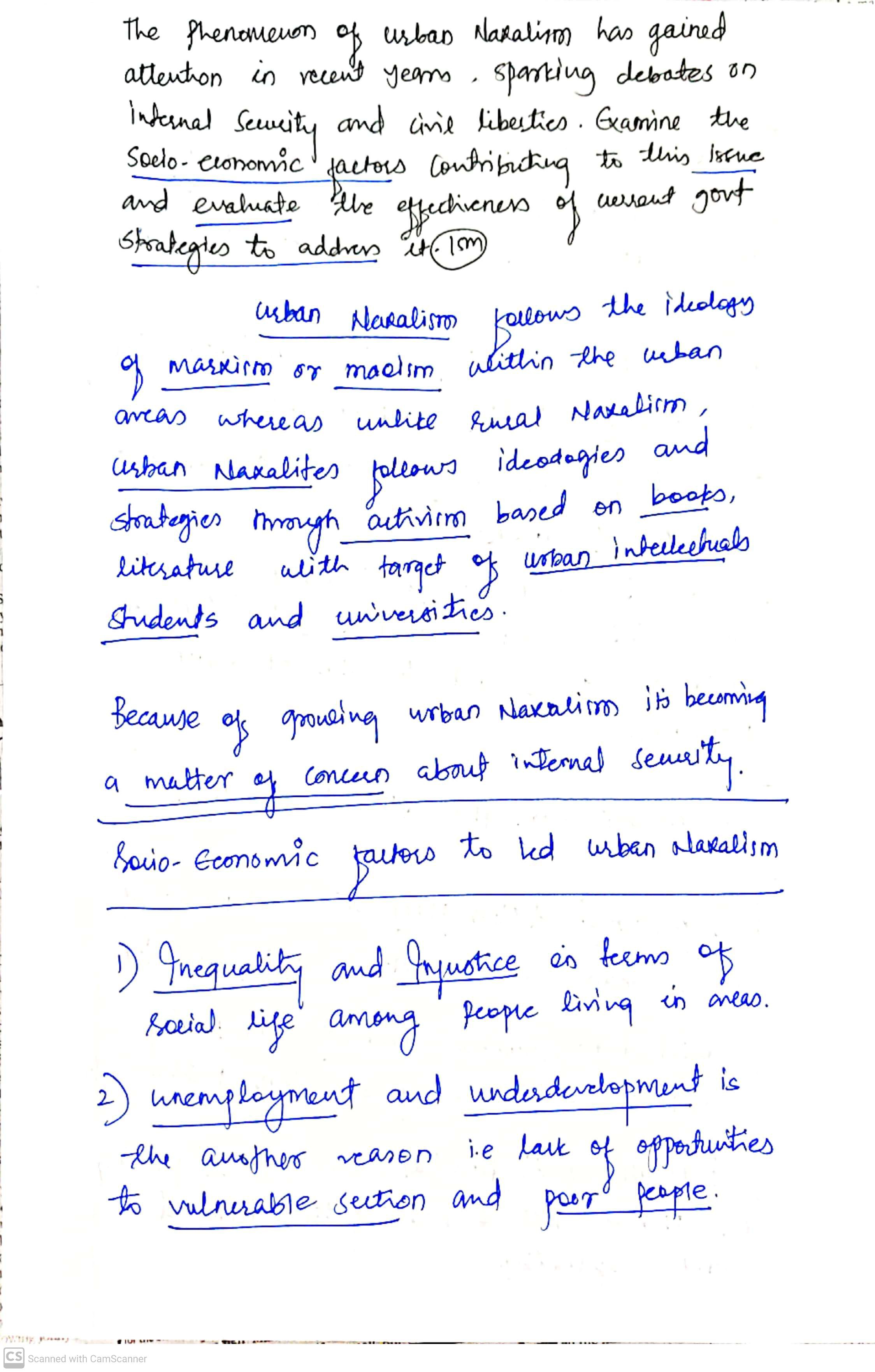- Examine the socio- economic factors contributing to the issue of Urban Naxalism.