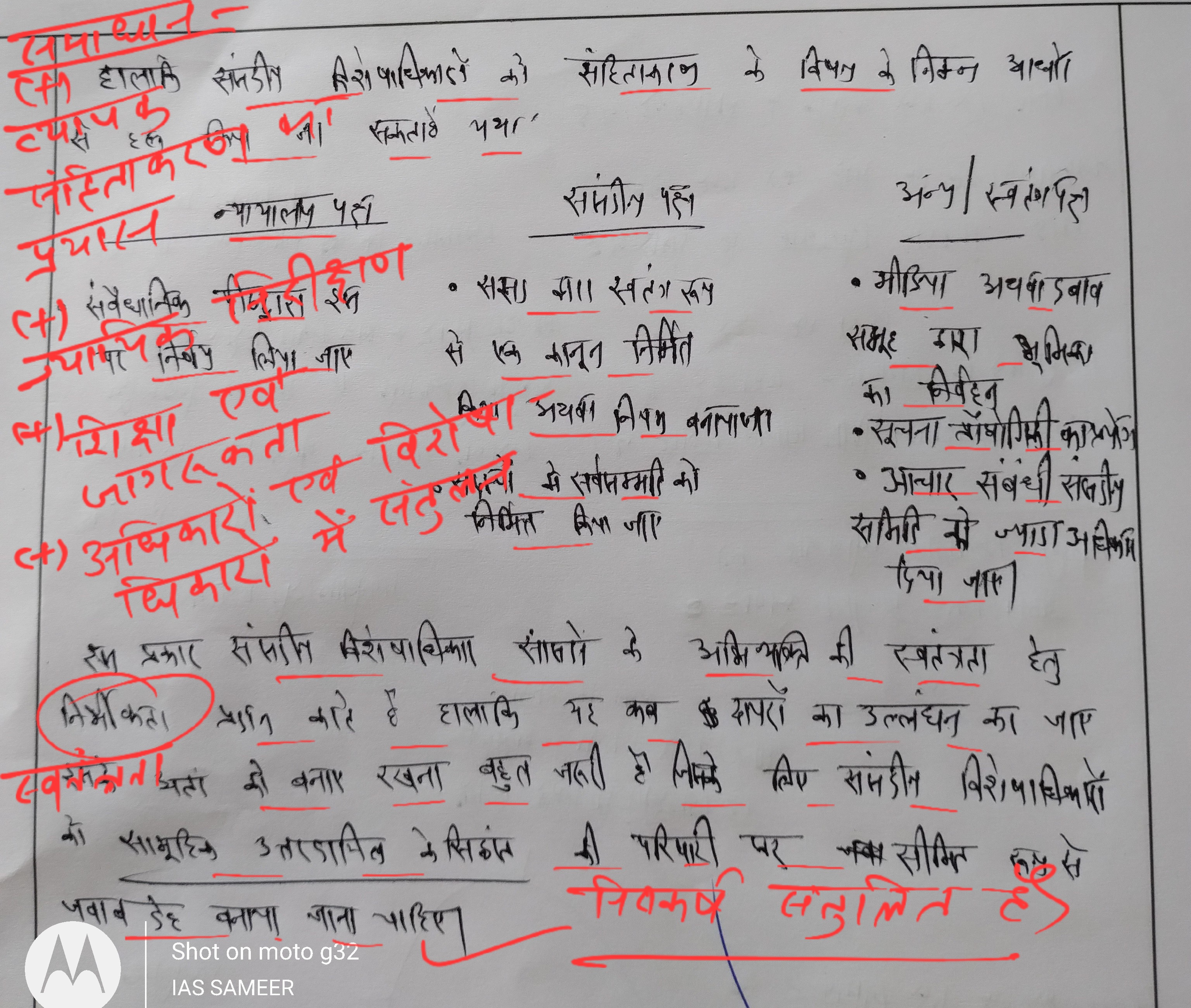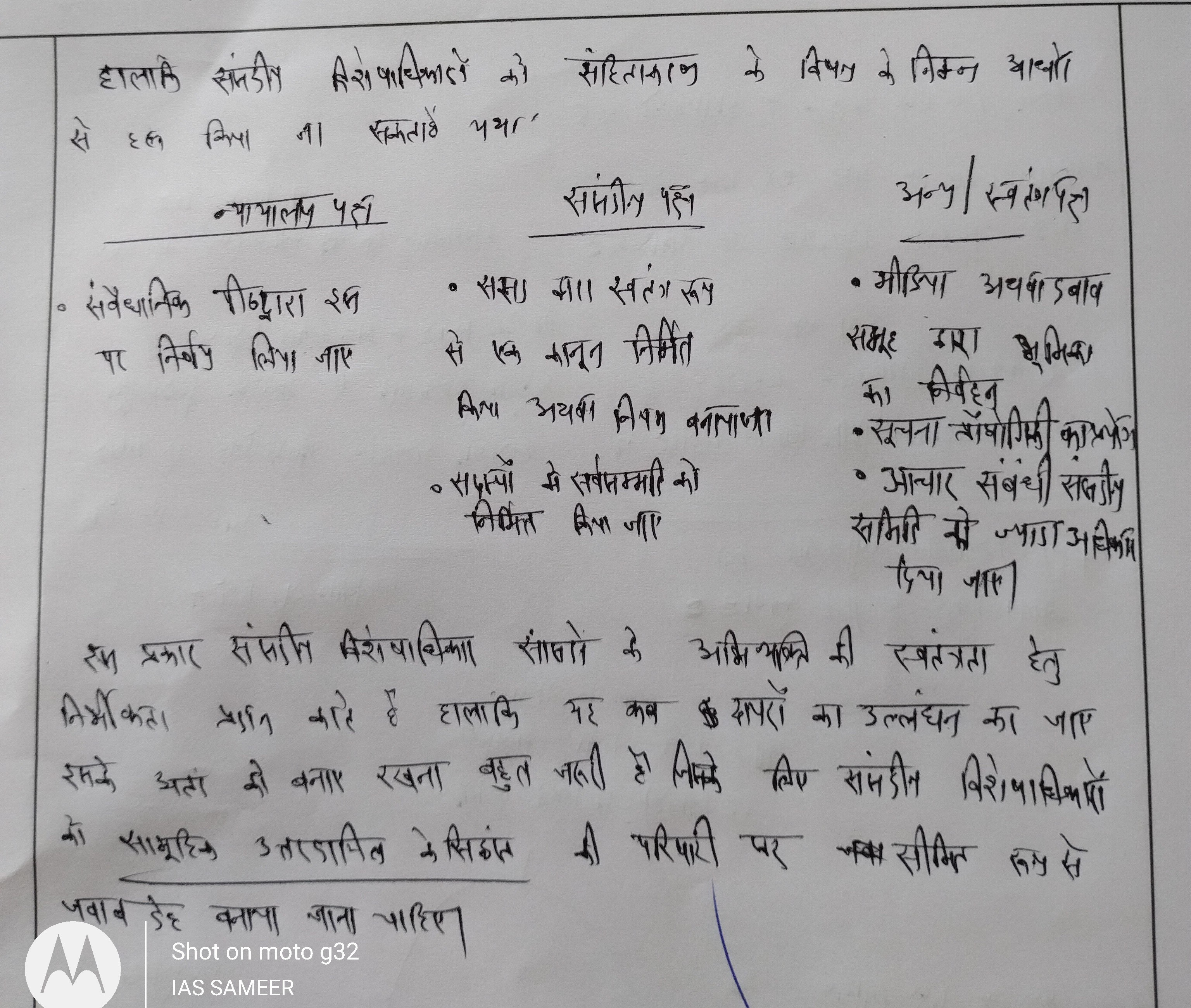 - अधिकारों के साथ विशेषाधिकारों को संतुलित करना: संहिता बनाते समय, संसदीय विशेषाधिकारों को मौलिक अधिकारों के साथ संतुलित करना महत्वपूर्ण है, यह सुनिश्चित करना कि लोकतंत्र की भावना बरकरार रहे।