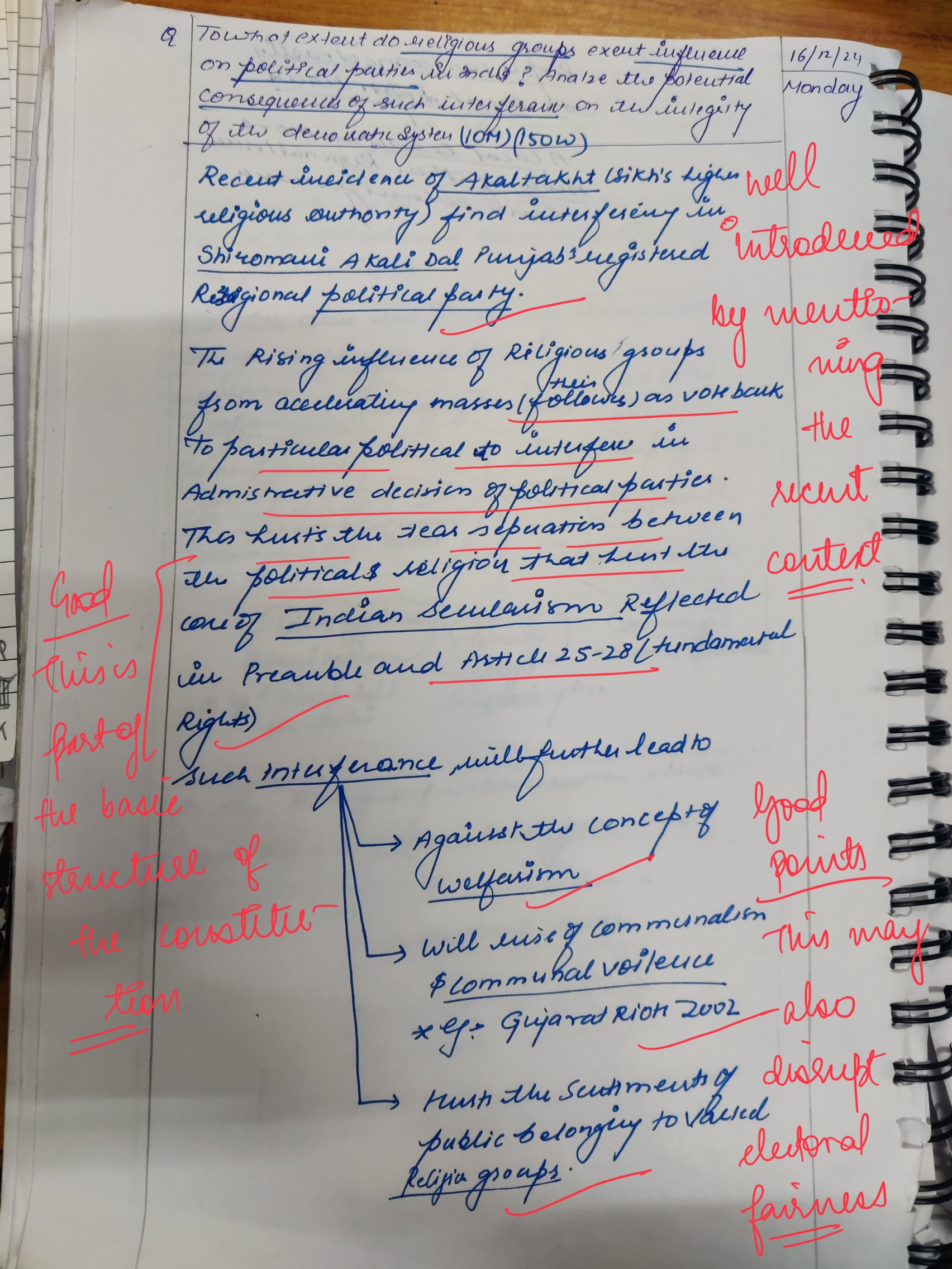 Religious groups’ influence on political parties in India can undermine the democratic system by furthering division and polarization. Such interference distorts the focus of governance, prioritizing religious agendas over national progress. To safeguard democracy, it is essential to reinforce secular principles, ensure inclusive policies, and uphold the integrity of political processes, promoting unity and collective growth.