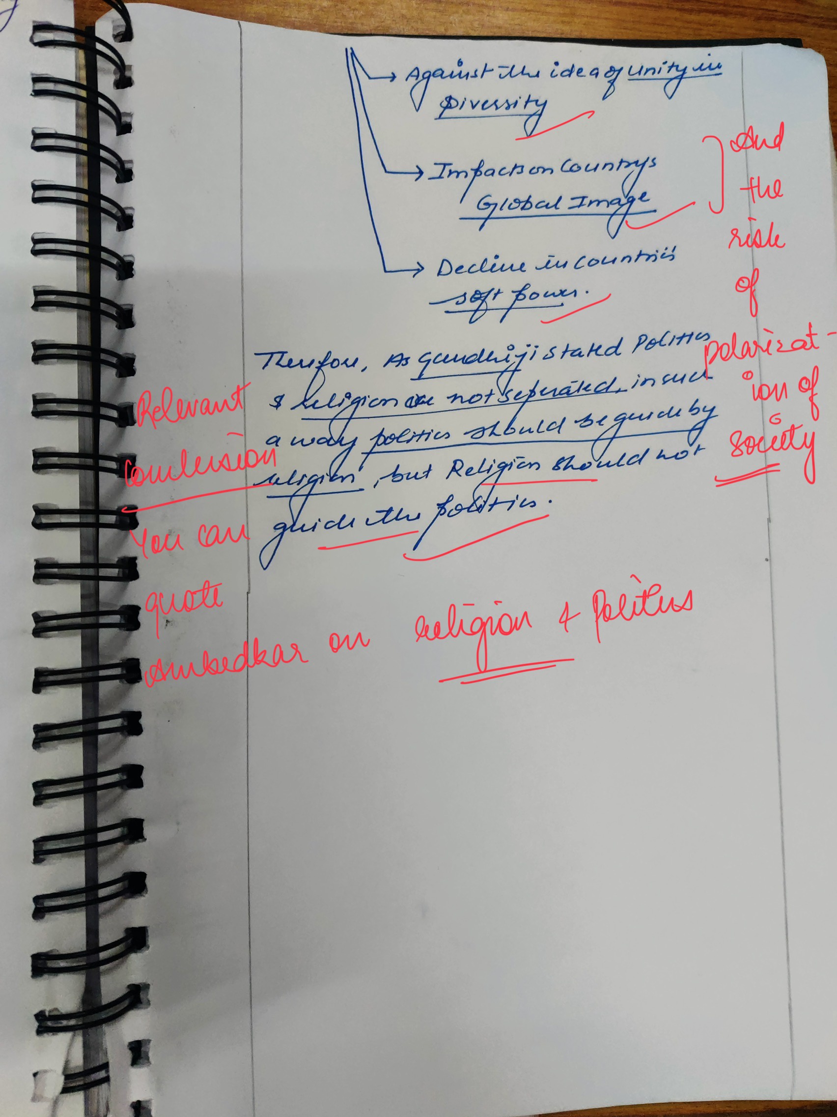 For example: When politics is dominated by religious issues, it can create divisions among different communities.