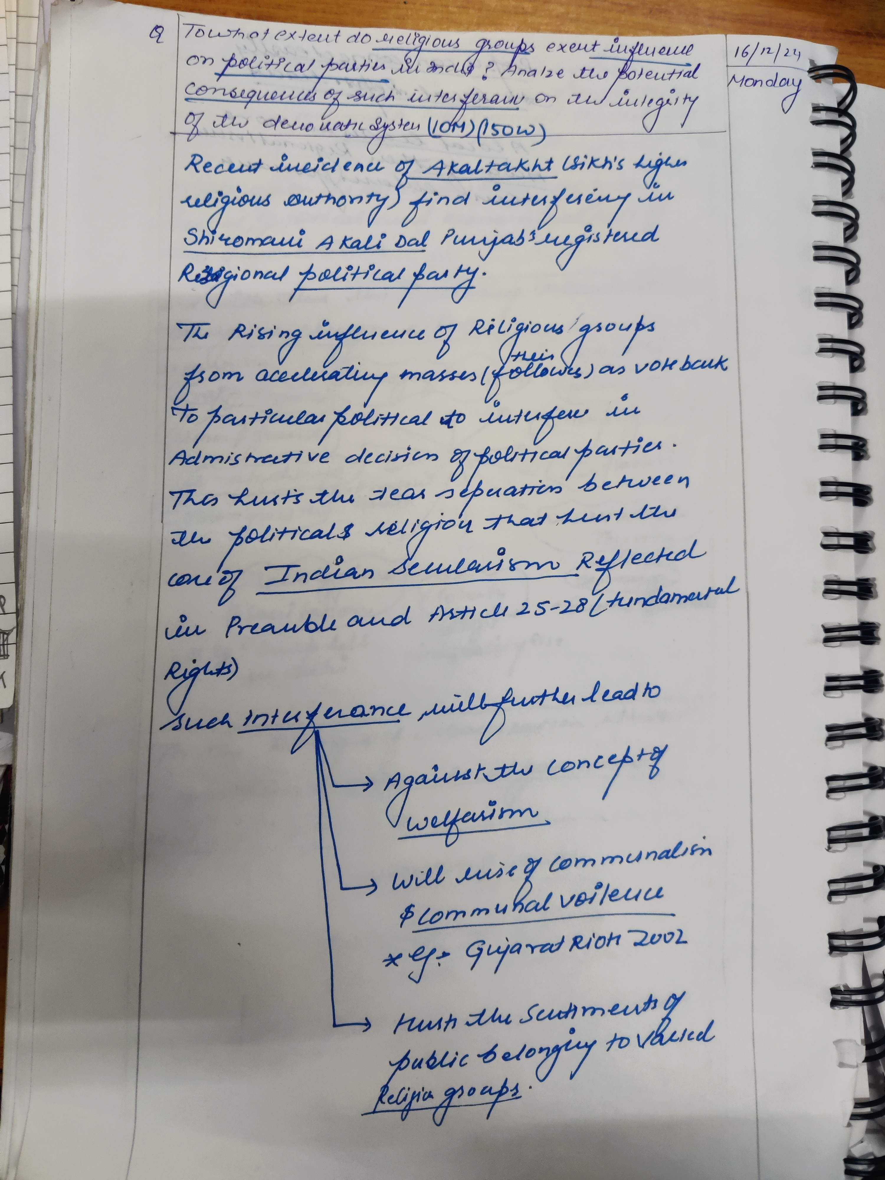 - Examine to what extent do religious groups exert influence on political parties in India?