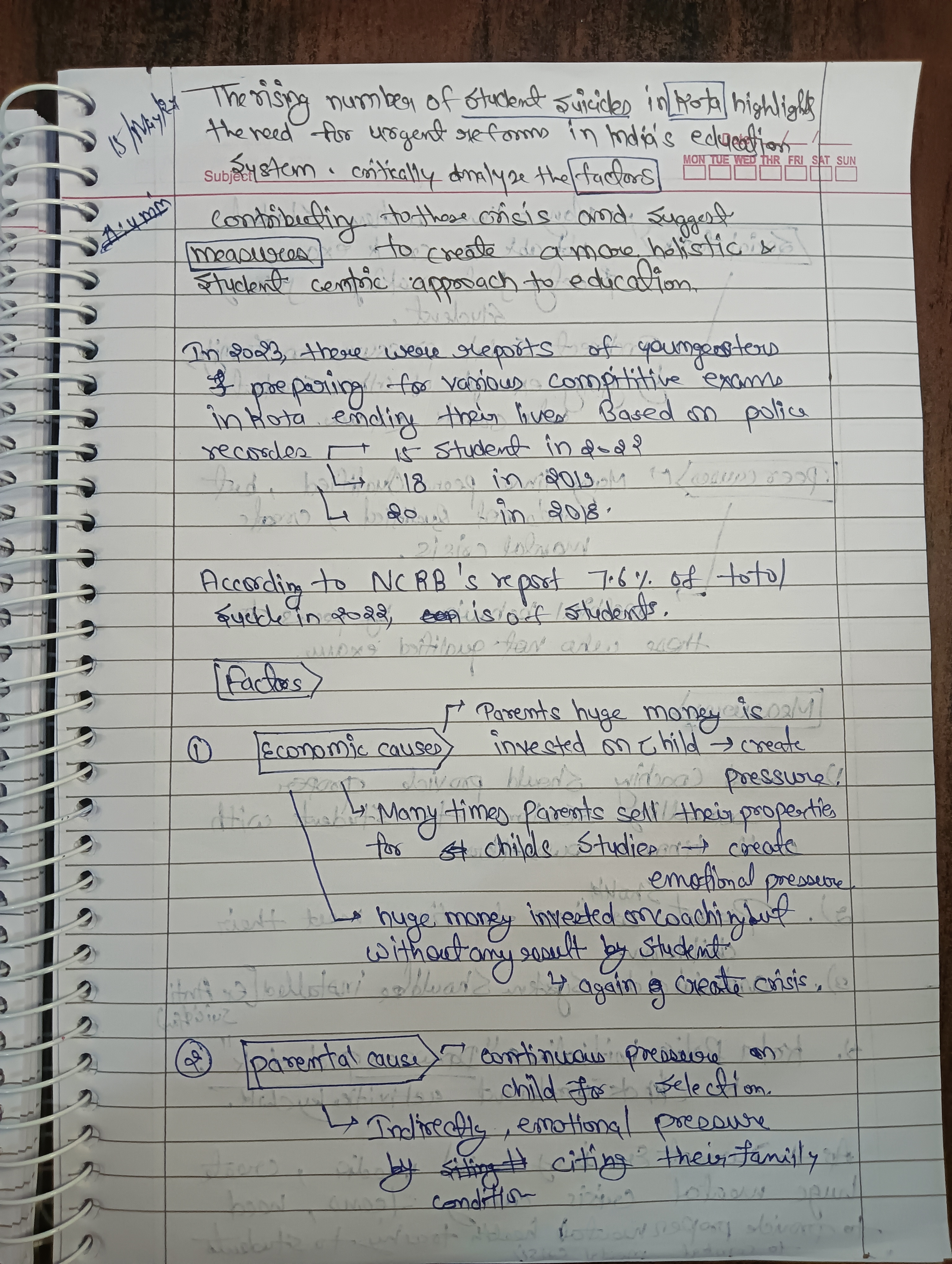 - Introduction: Start by highlighting the disturbing trend of rising student suicides in Kota, known for its competitive coaching culture.