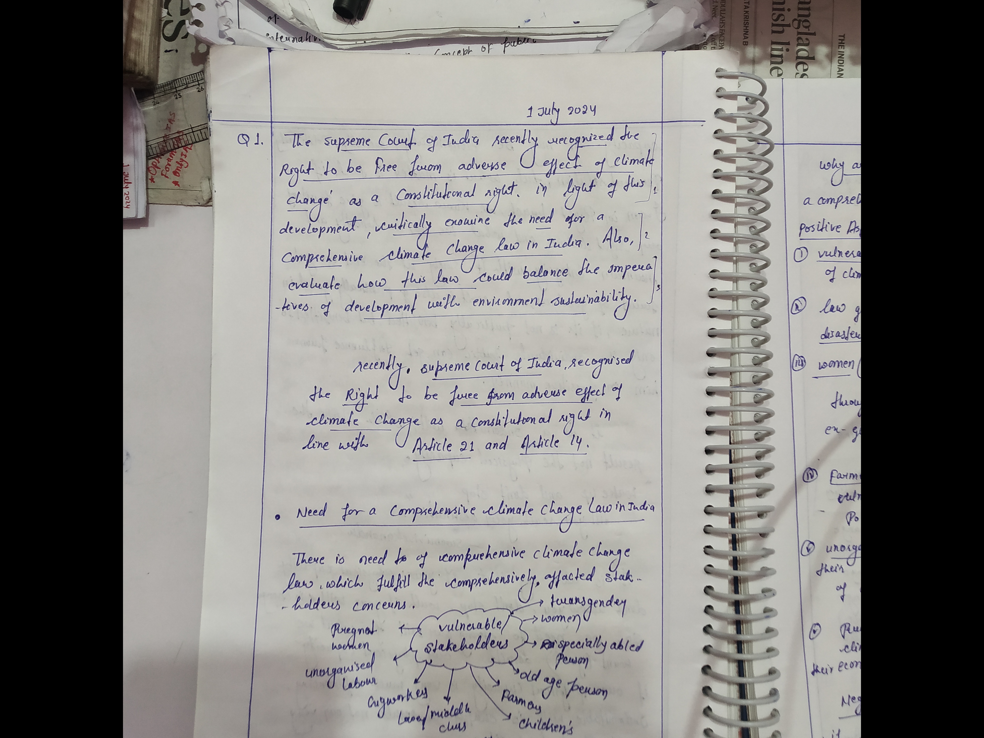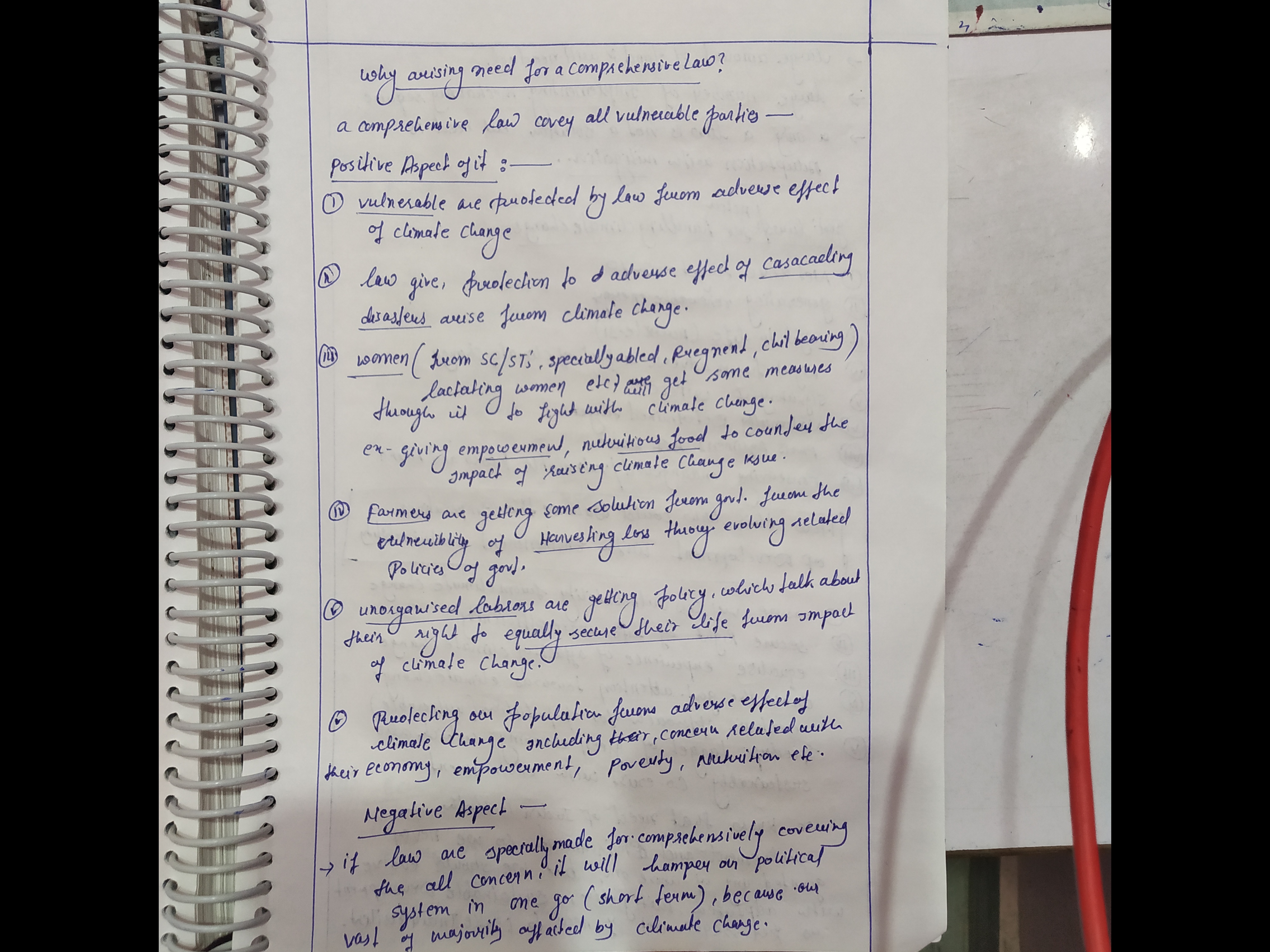 - Examine the need for a comprehensive climate change law in India.