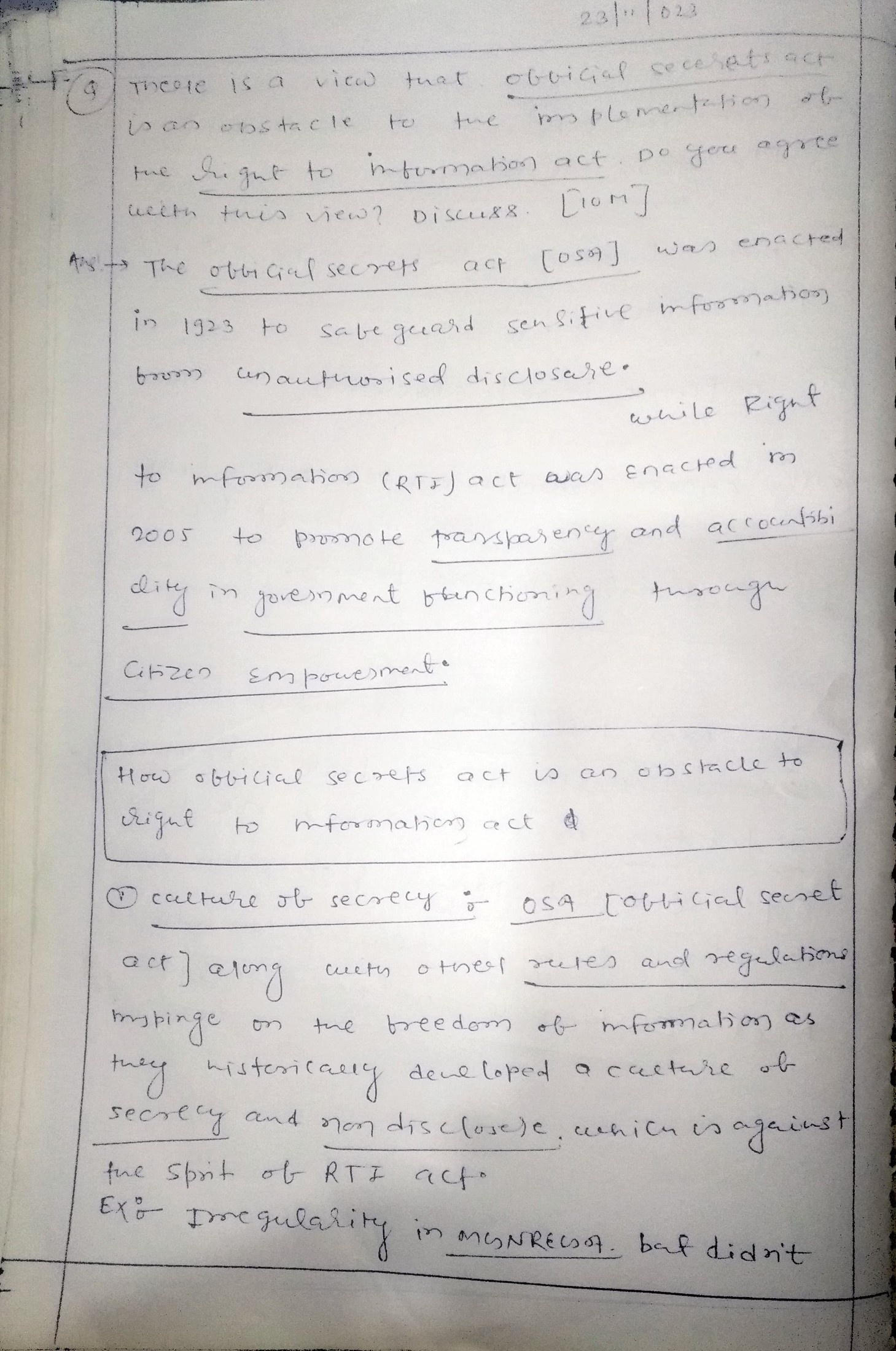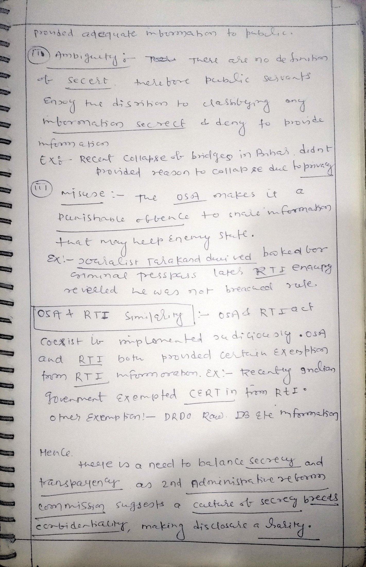On the other hand, the RTI was enacted in 2005 to promote transparency, accountability, and citizen participation in governance by providing citizens with the right to access government information. However, there is a view that the OSA is an obstacle to the implementation of the RTI Act.