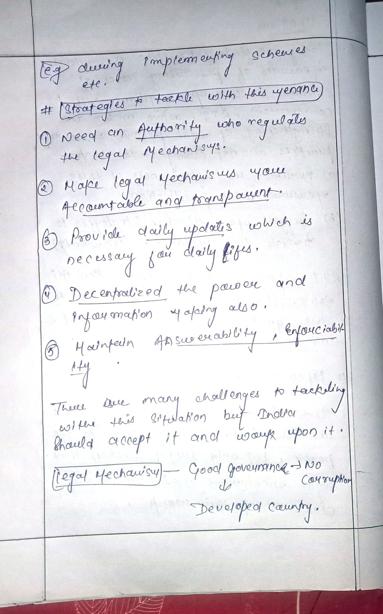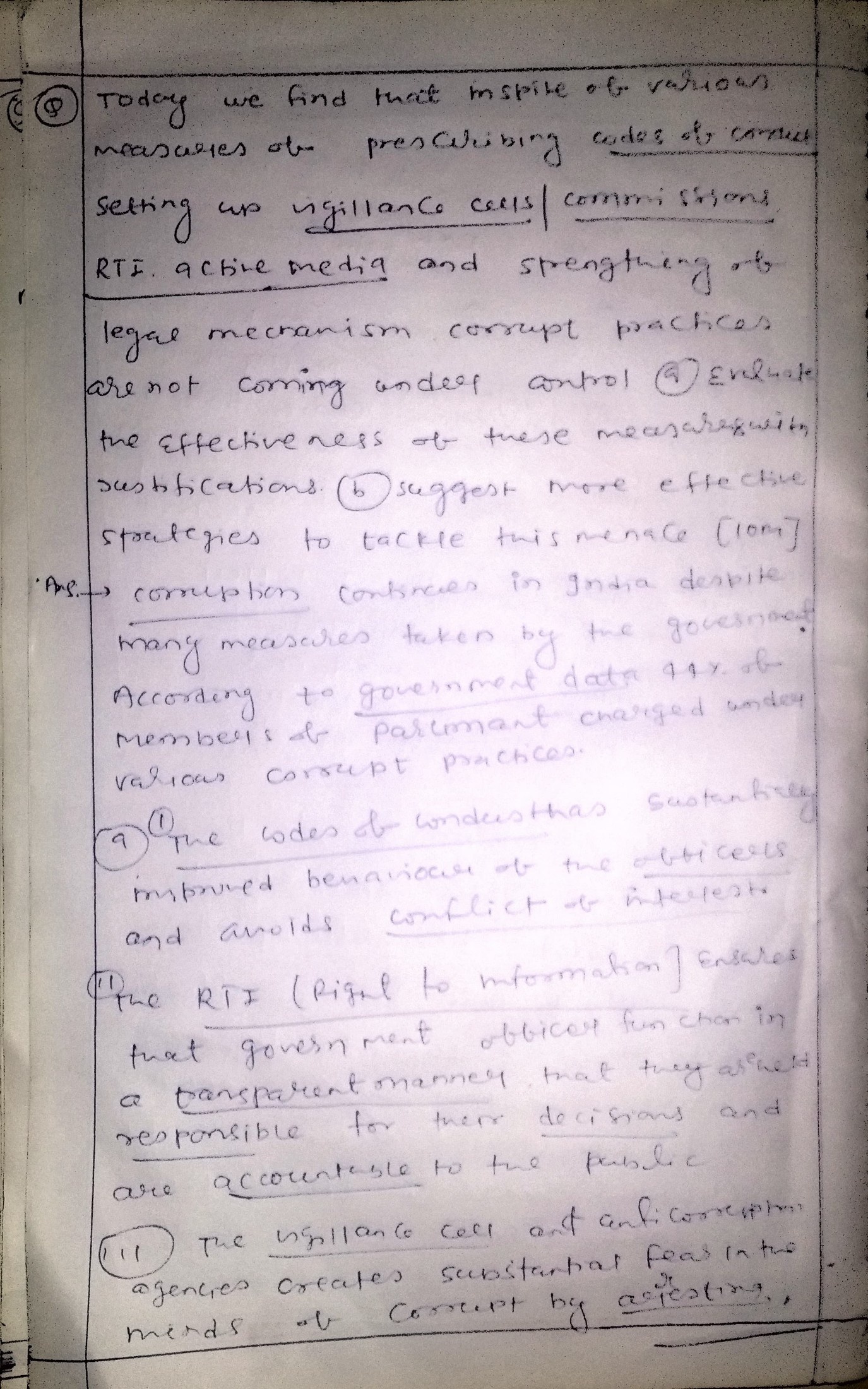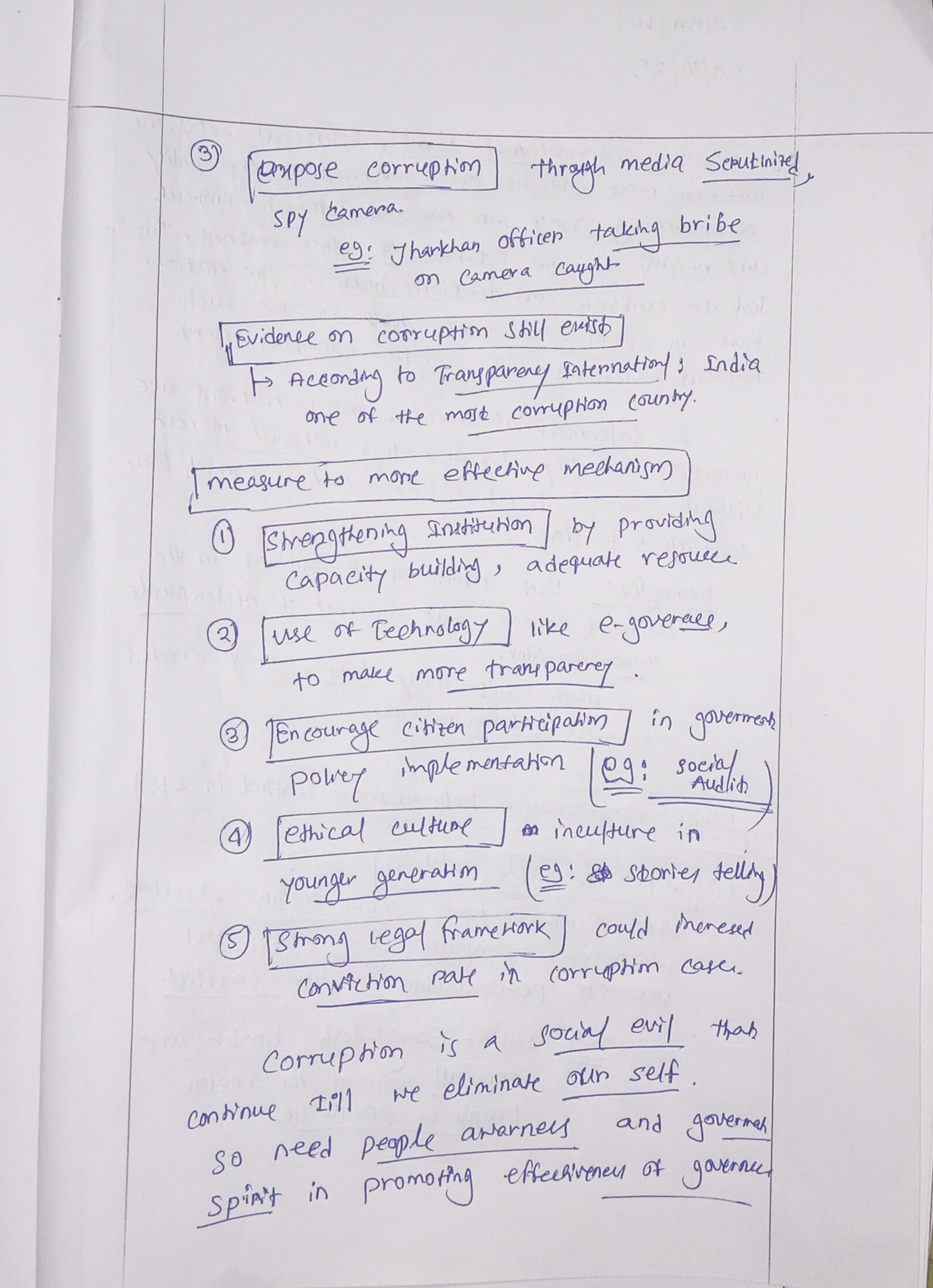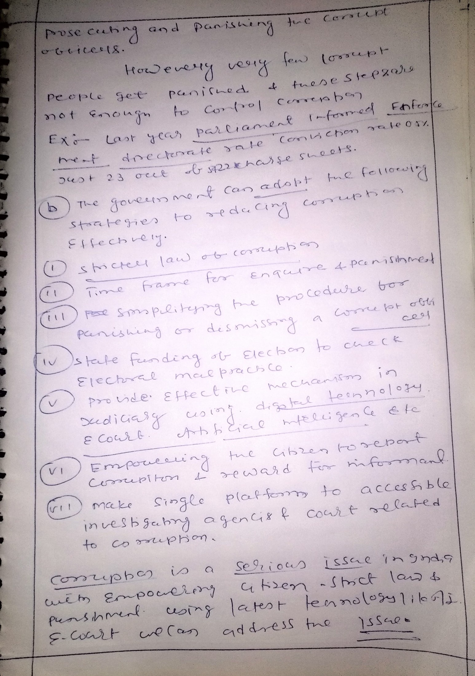 - Give effective strategies to tackle corruption.
