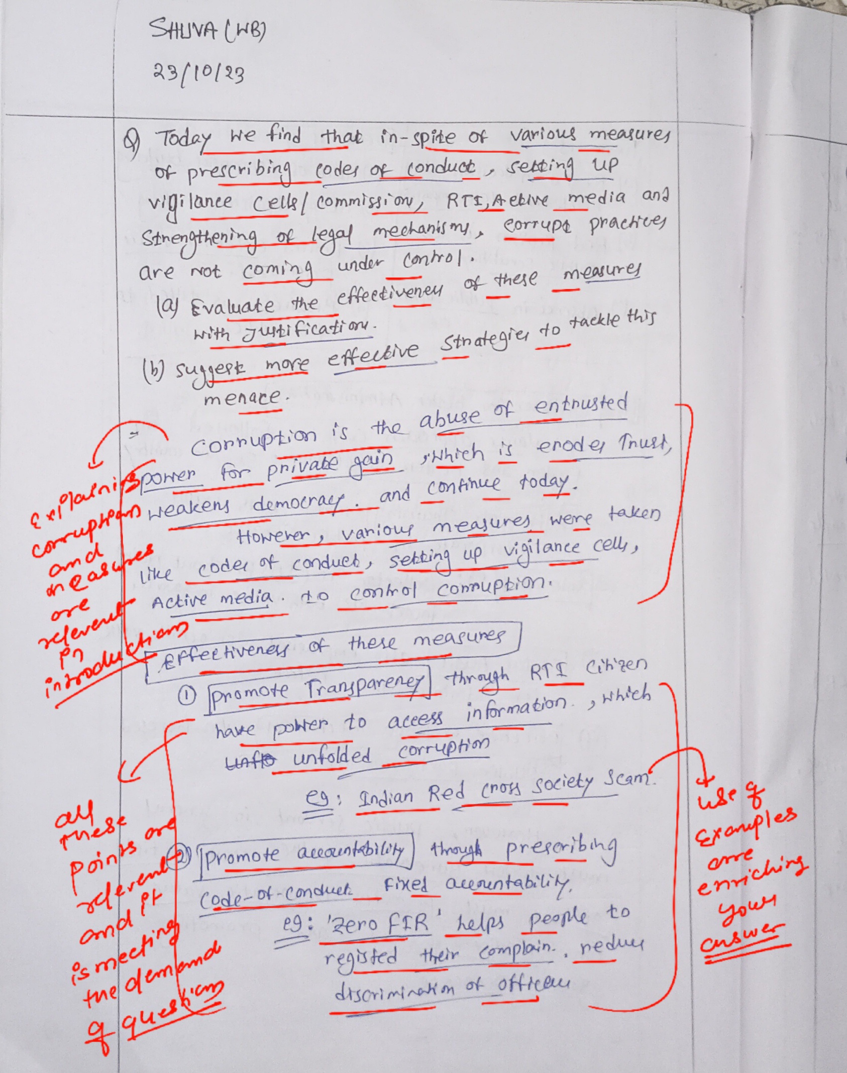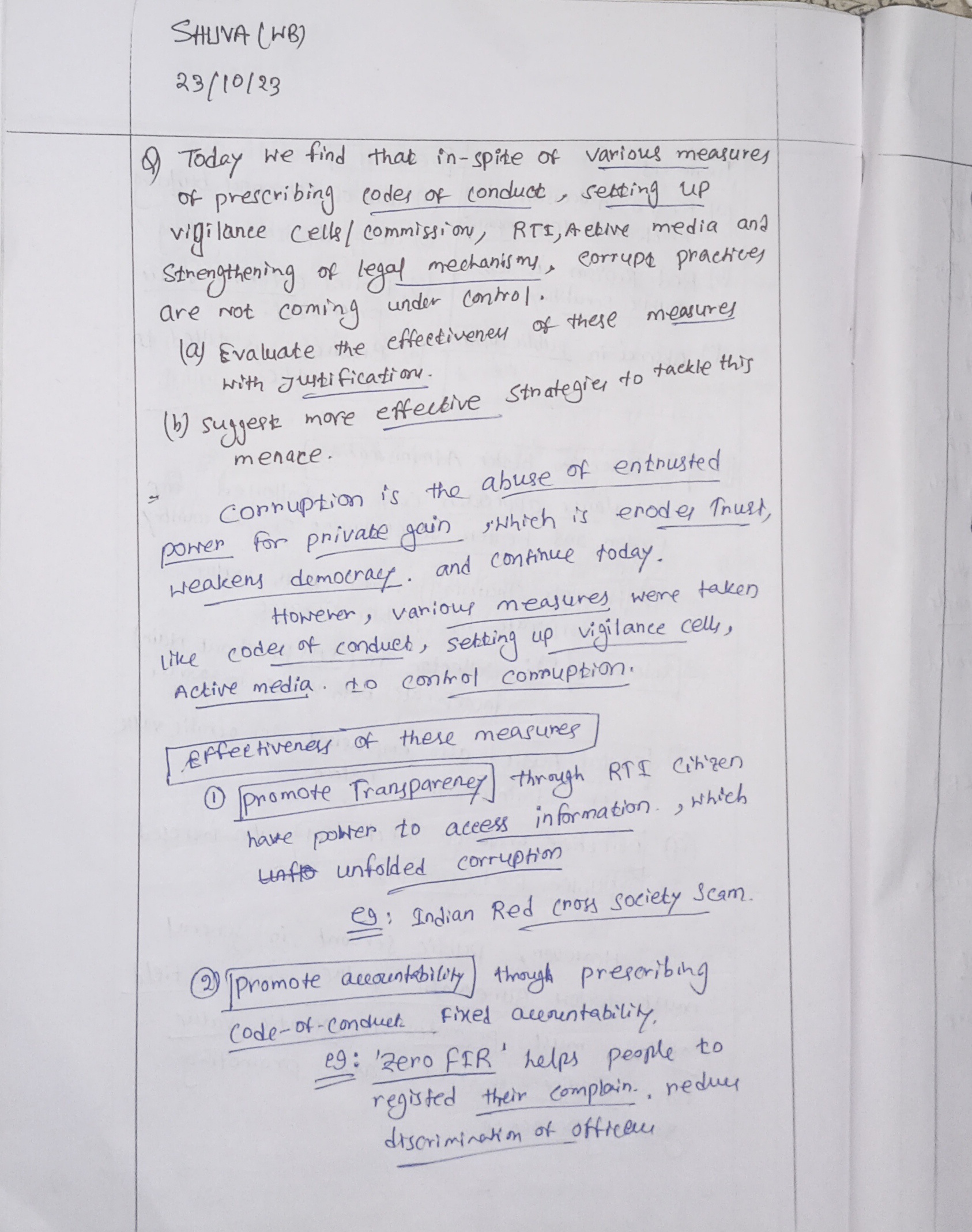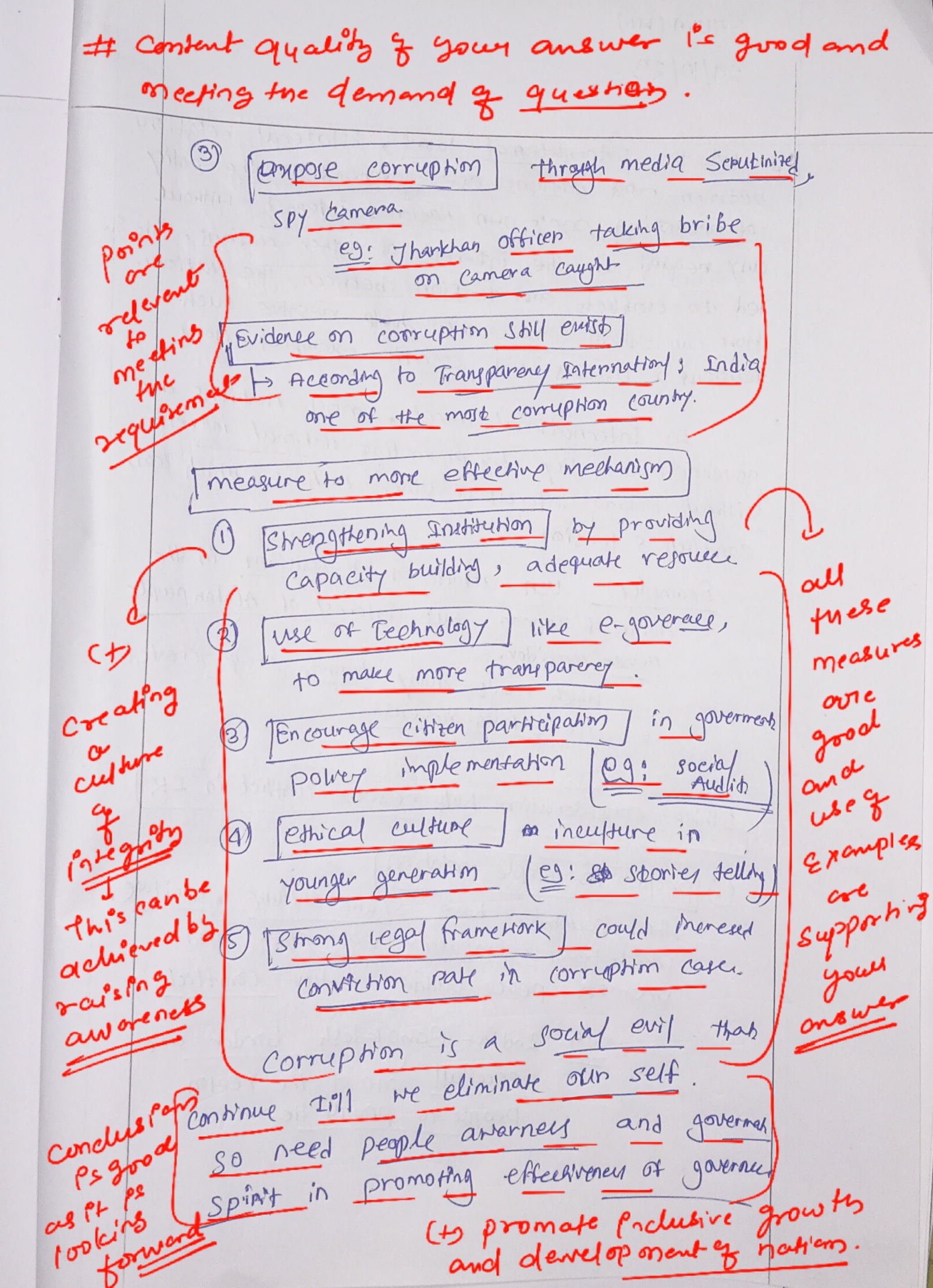 (b) More effective strategies to tackle corruption include: