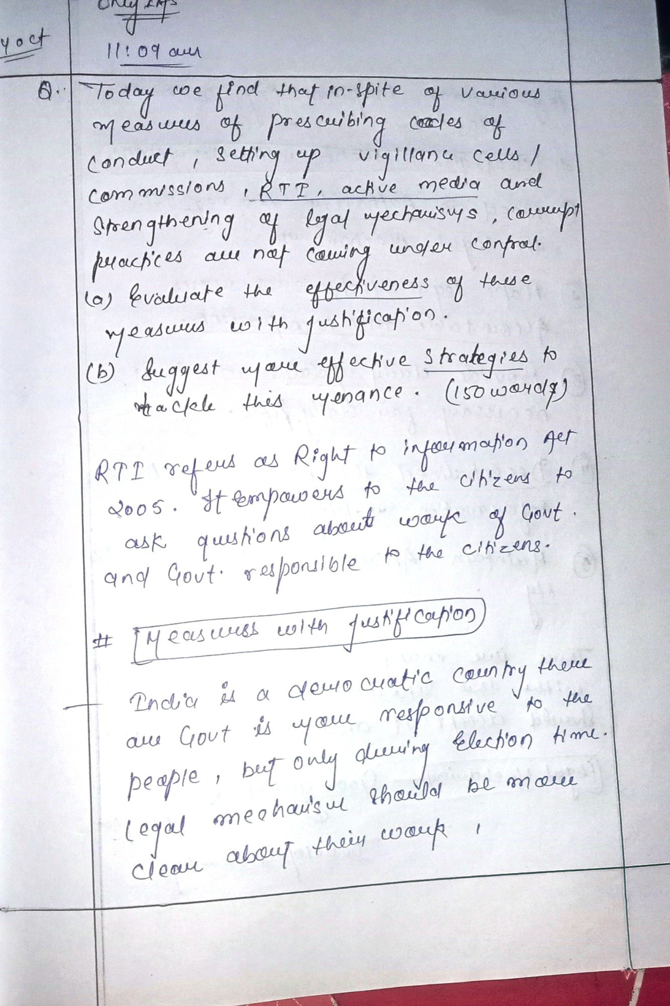 These measures require political will, adequate resources, and a sustained effort from all stakeholders to ensure transparency, accountability, and ethical behavior in public service. Only then can we hope to achieve a corruption-free society and promote inclusive growth and development of the nation.