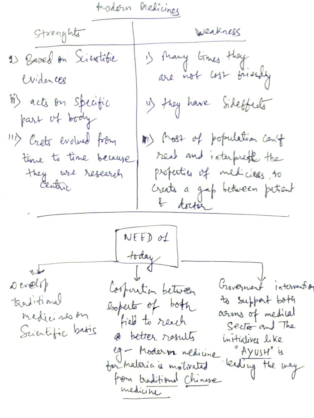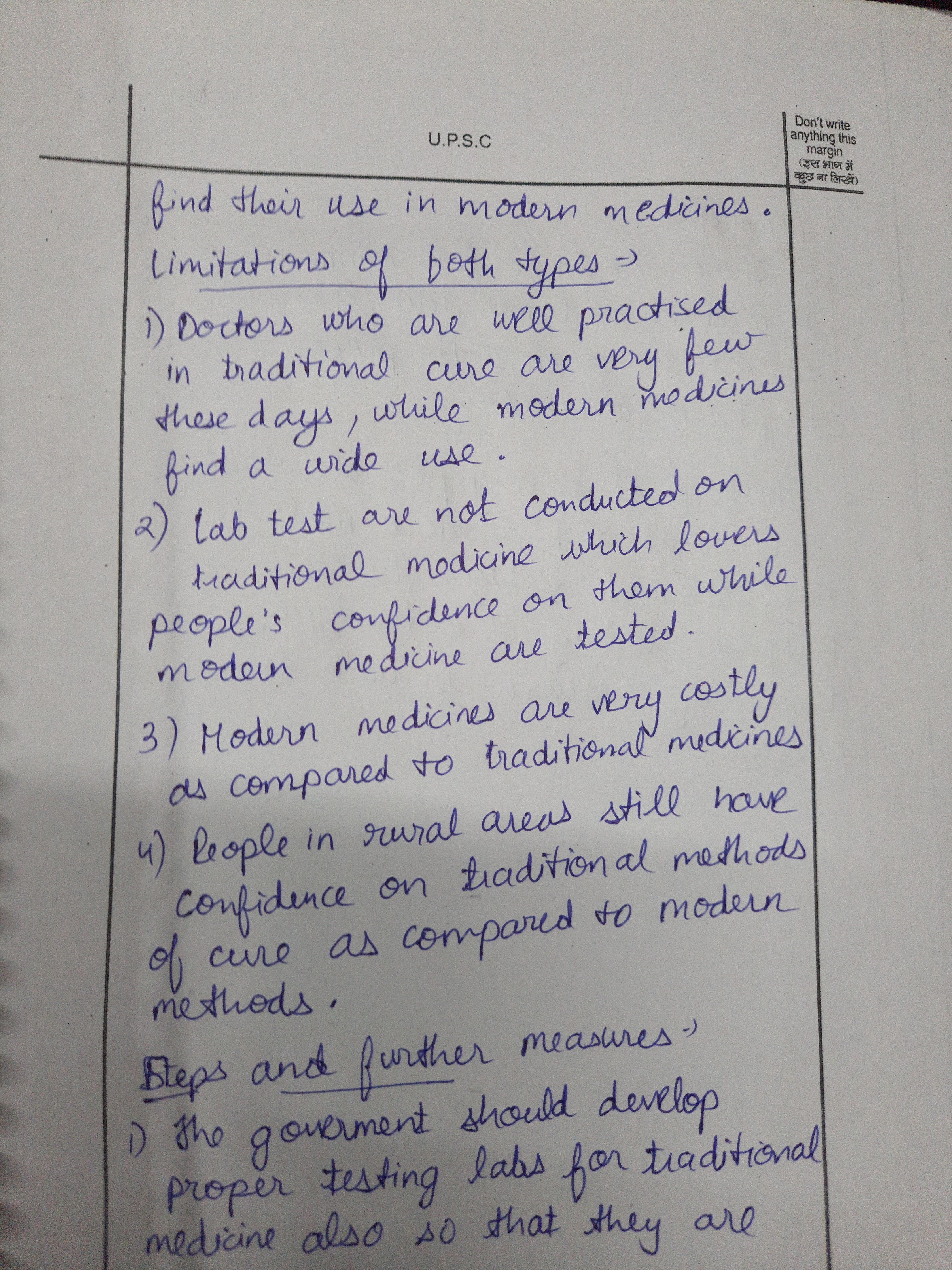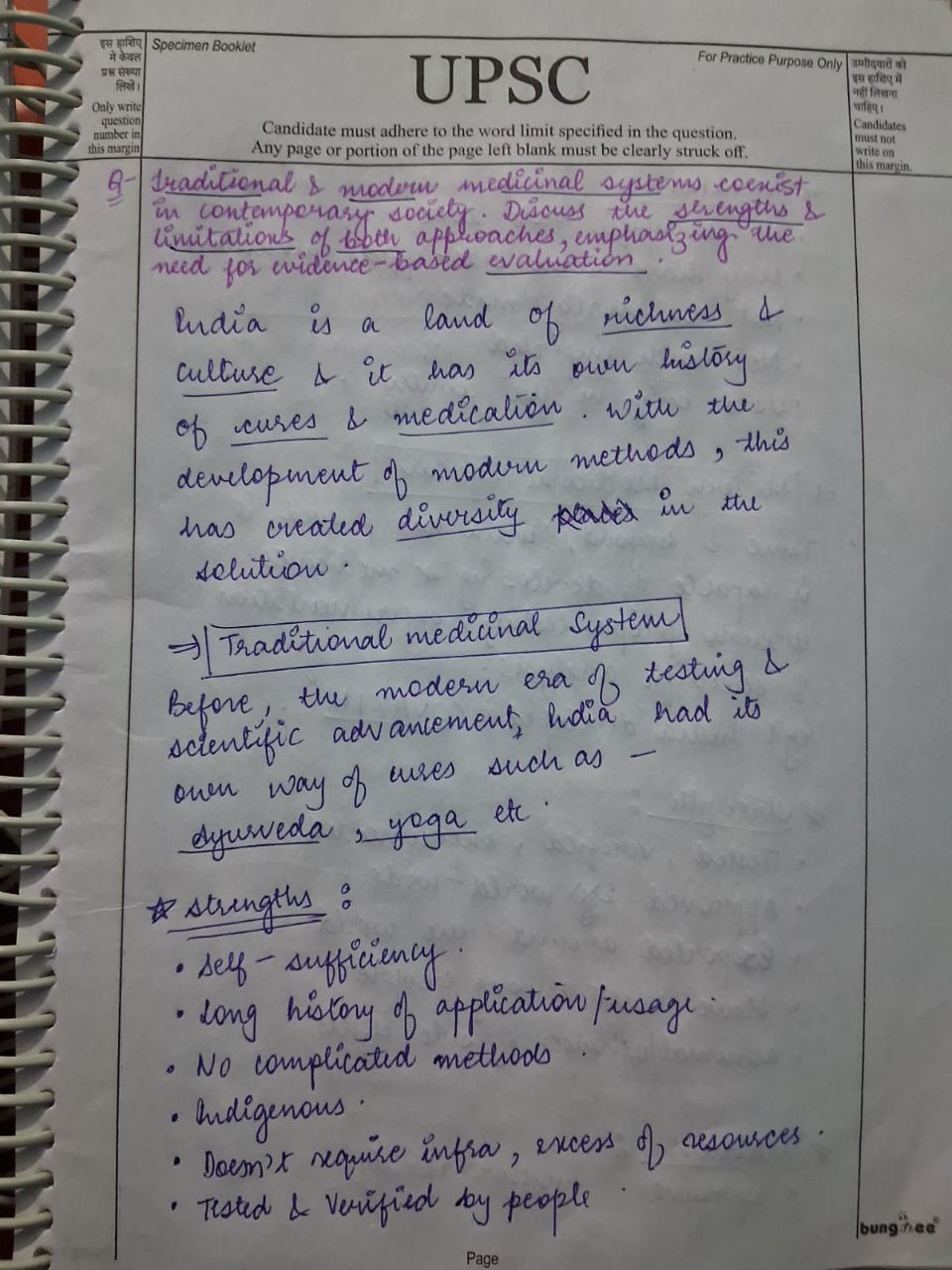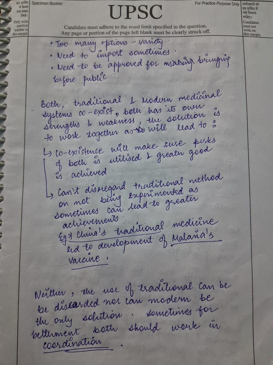 Q. Traditional and modern medicinal systems coexist in contemporary society. Discuss the strengths and limitations of both approaches, emphasizing the need for evidence-based evaluation. (250 words, 15 Marks)