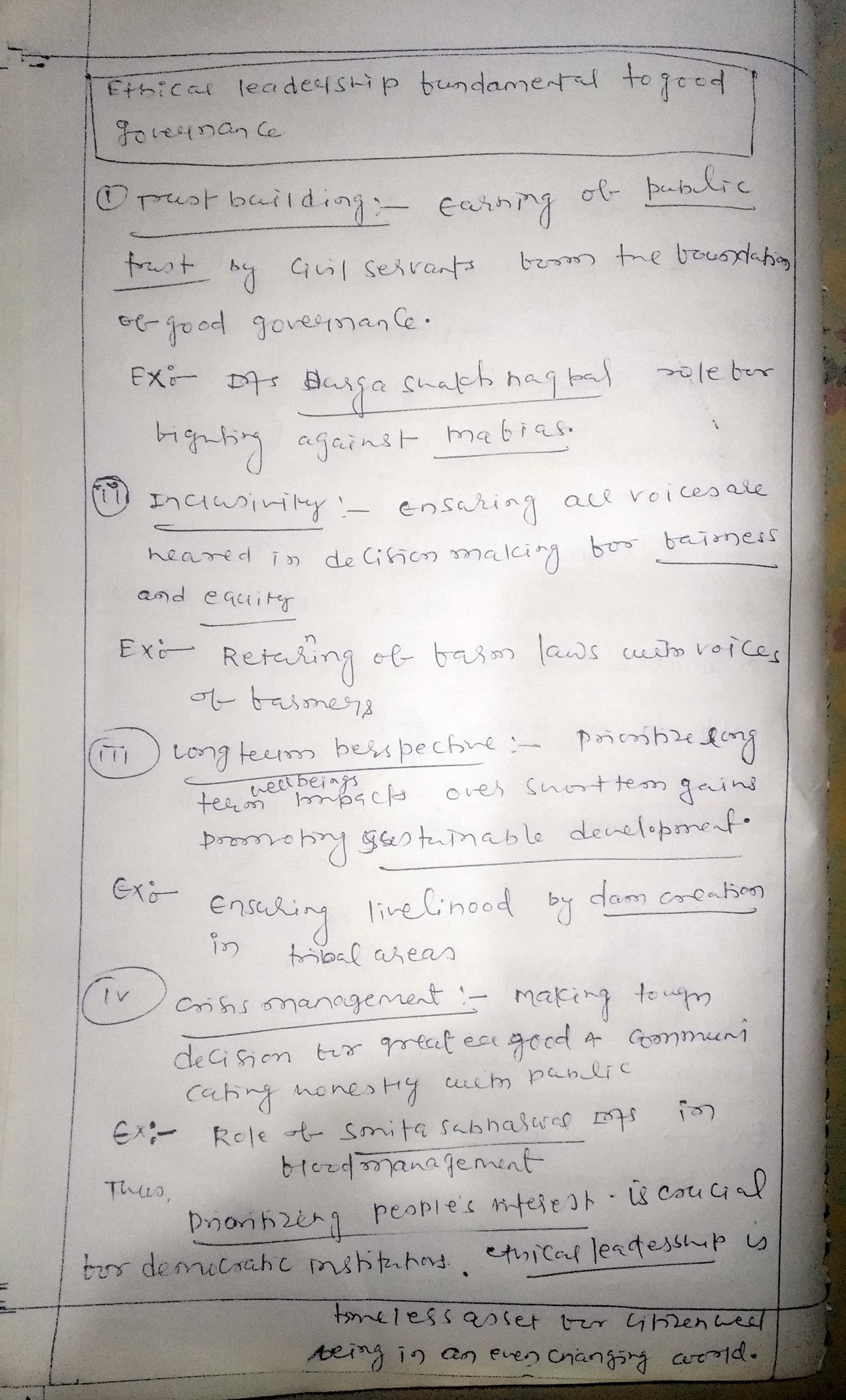 - Citizen Engagement: Ethical leaders involve citizens in policy-making, exemplified by India’s Right to Information Act promoting transparency and engagement.