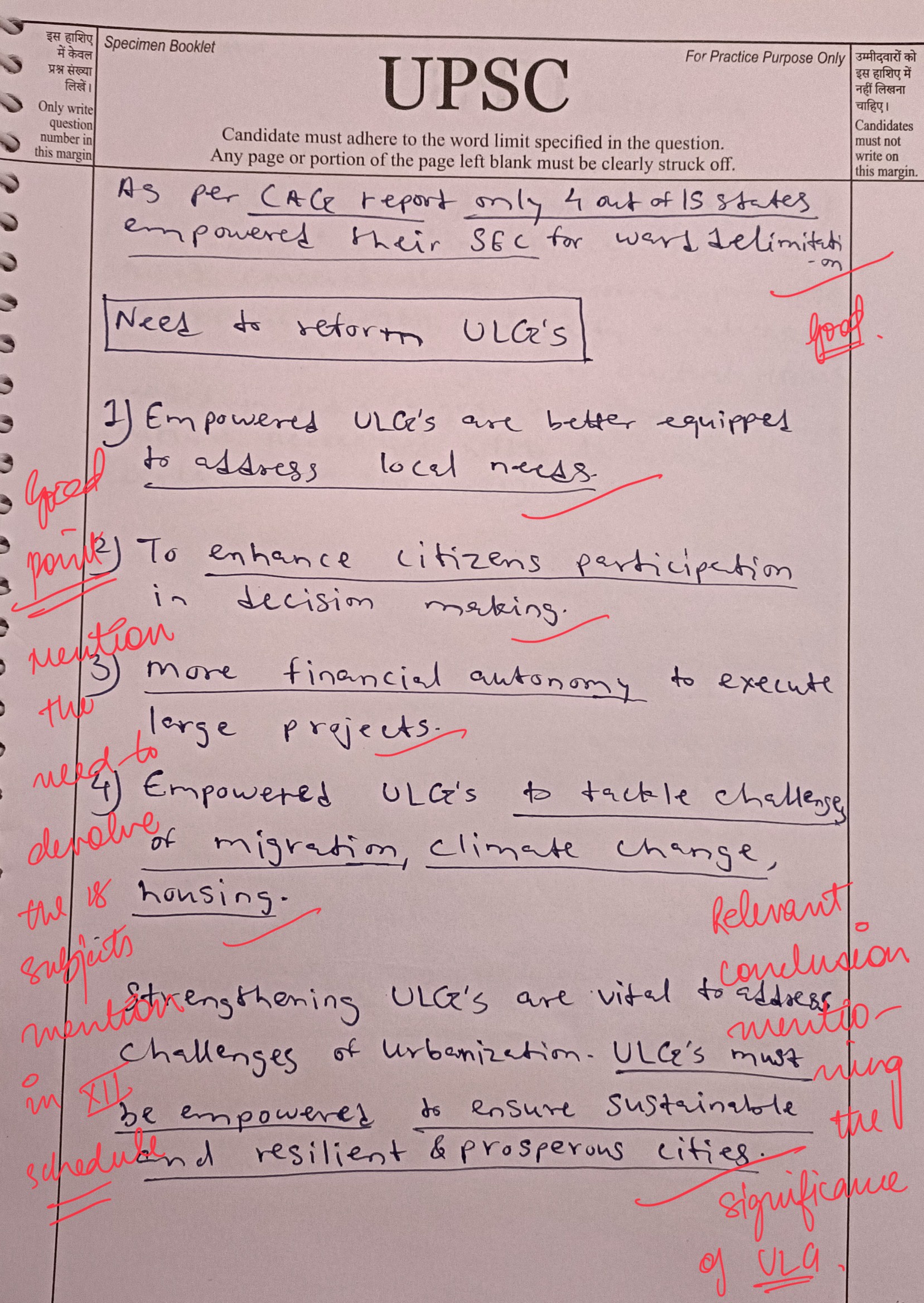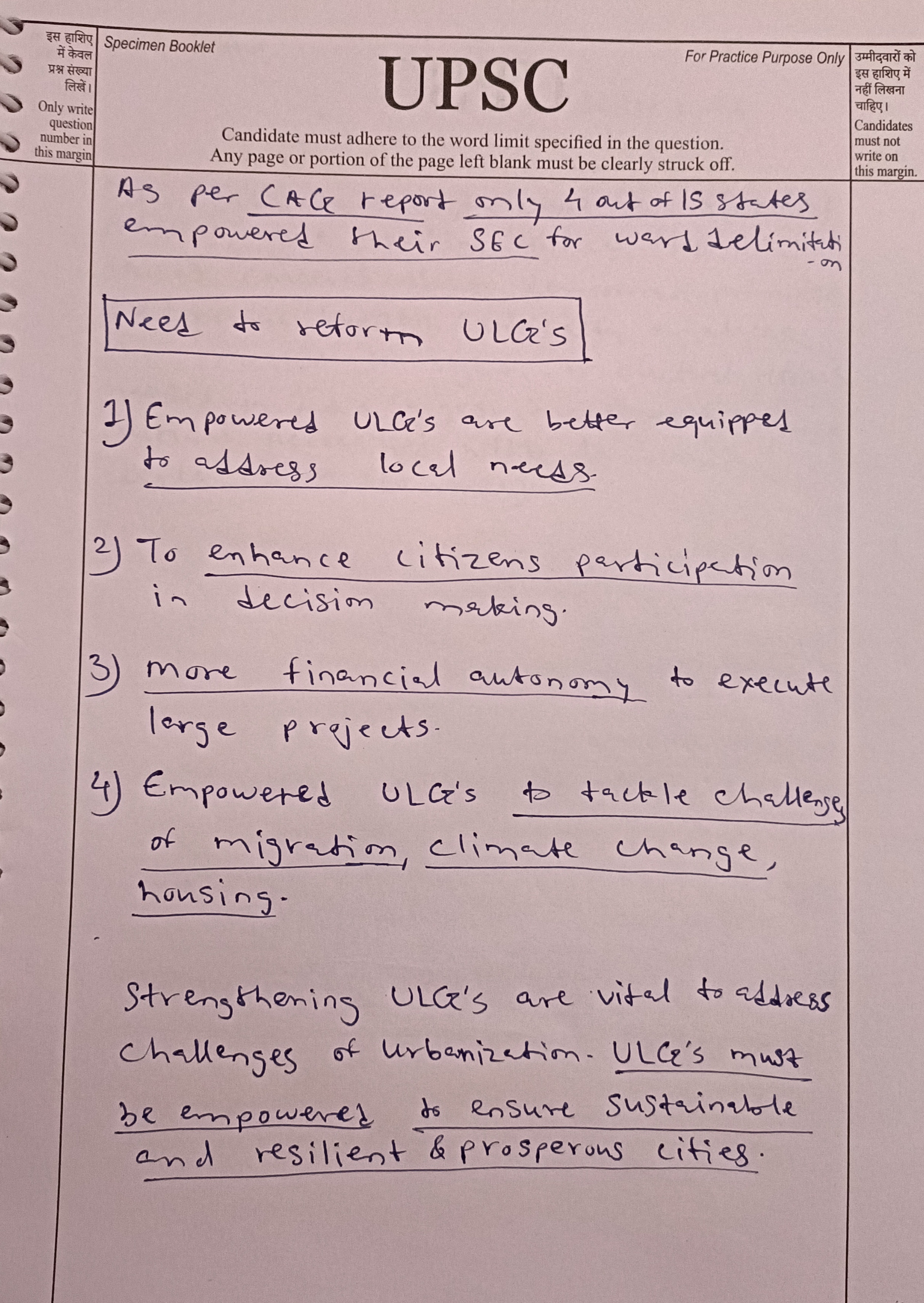 Strengthening Urban Local Governments (ULGs) is vital for managing India’s urbanization challenges. By enhancing their capacity, autonomy, and resource allocation, ULGs can drive economic growth and improve social welfare. As John F. Kennedy once stated, “The time to repair the roof is when the sun is shining.” Proactively empowering ULGs will foster sustainable, resilient cities for future generations.