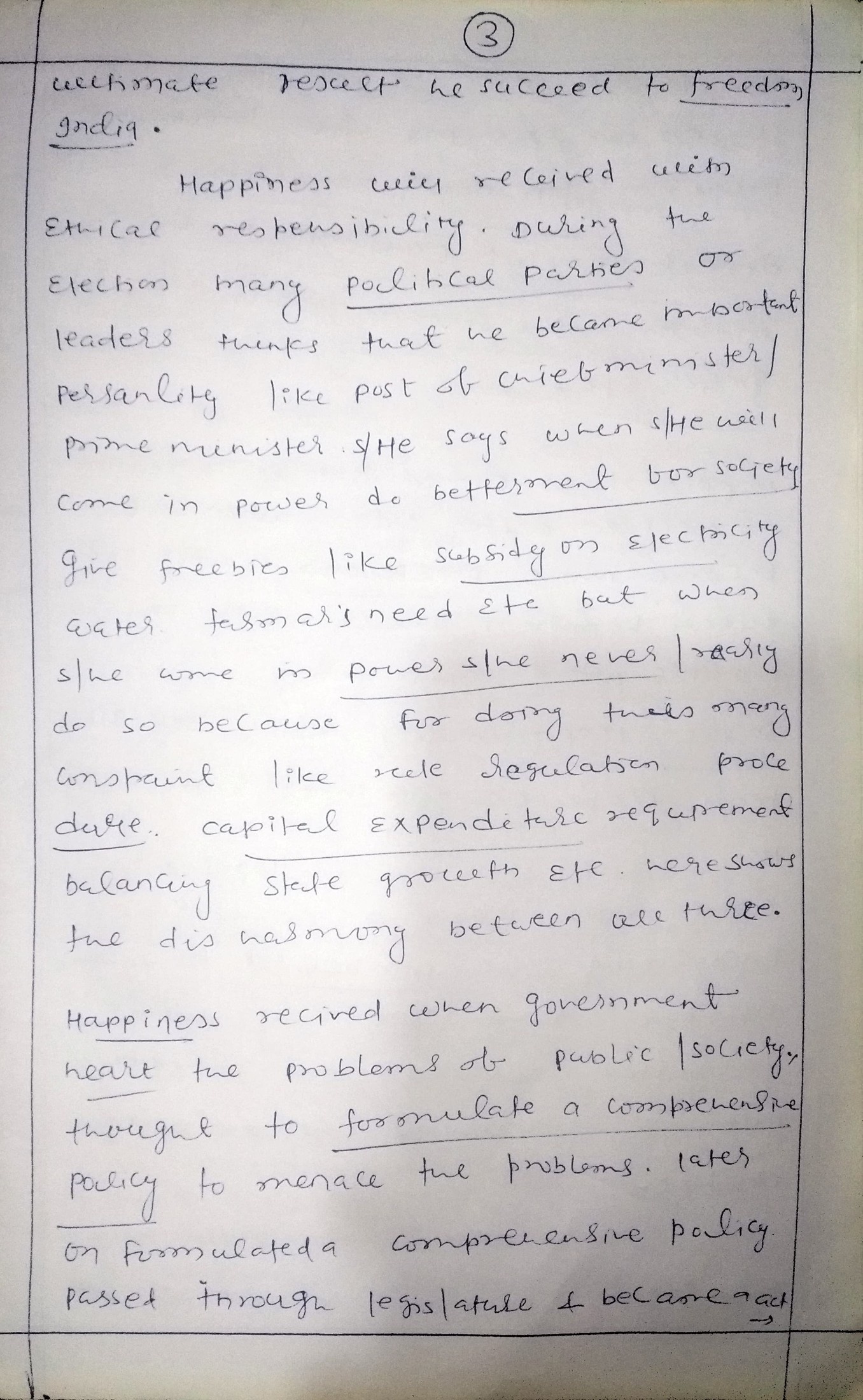 We can say that ethics and morals are necessary for a happy life, in the same way happiness at heart makes it easier to be moral and ethical. Thus, When the ethical choices we make resonate with our inner values, we experience a sense of integrity and elation. This integrity not only enriches our lives but ripples through society, inspiring others to uphold their beliefs consistently. It in turn makes us more empathetic and compassionate towards others. Examples like Mother Teresa, Florence Nightingale, Kailash Satyarthi, etc. give a face to such passion to serve others as a true path for happiness.