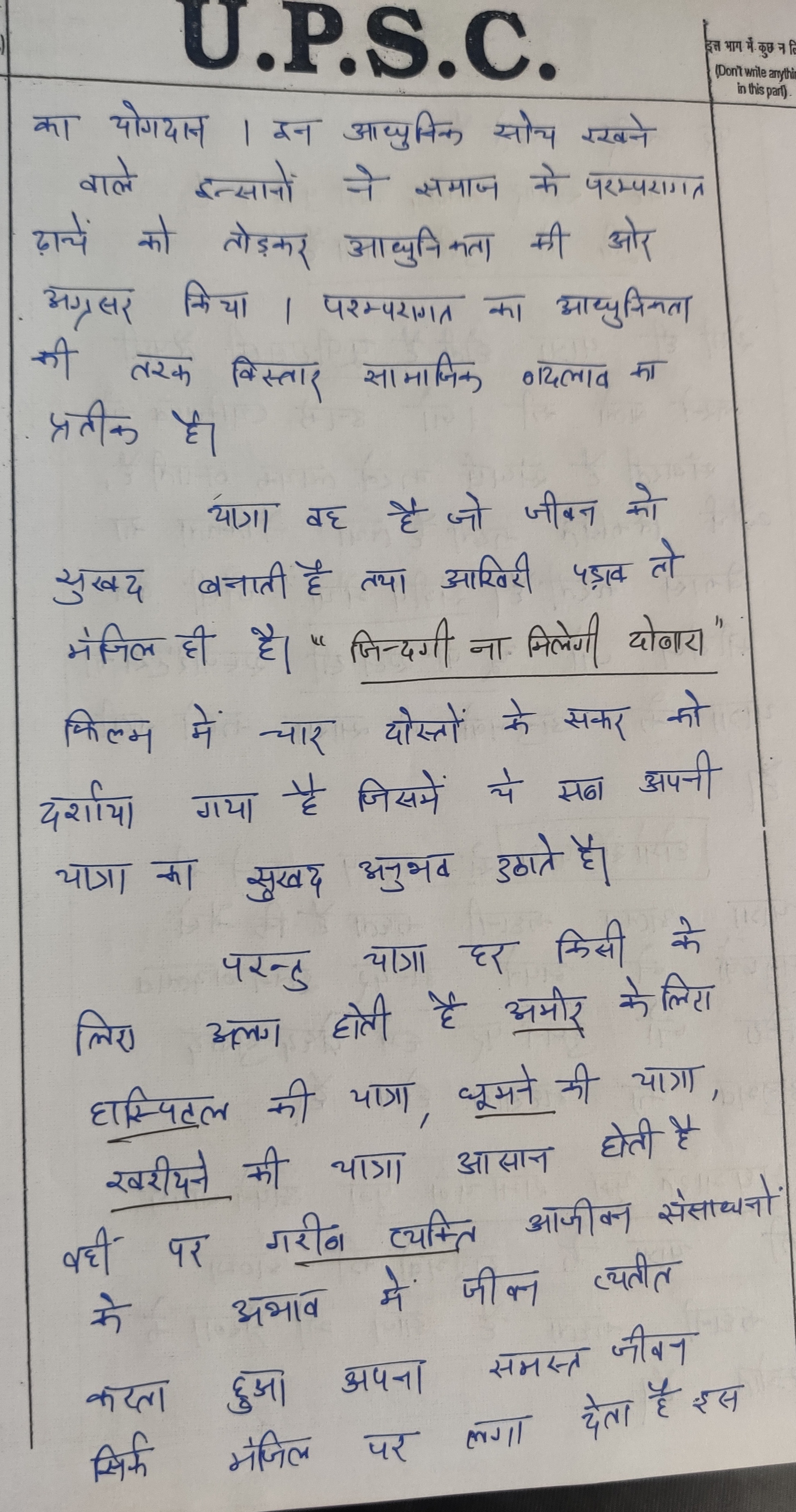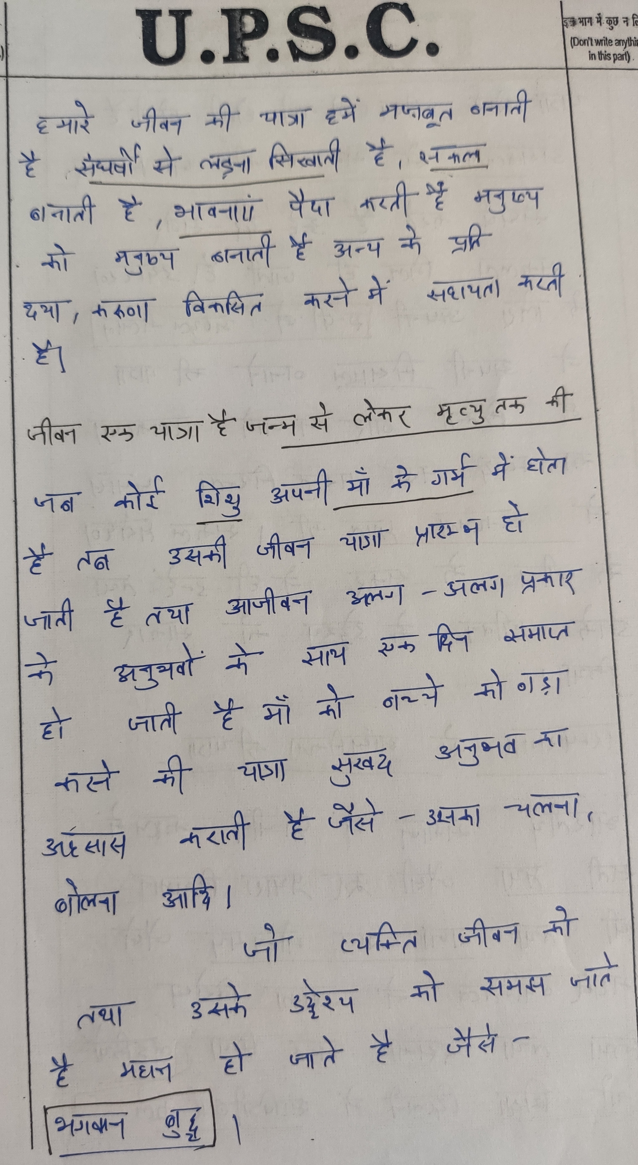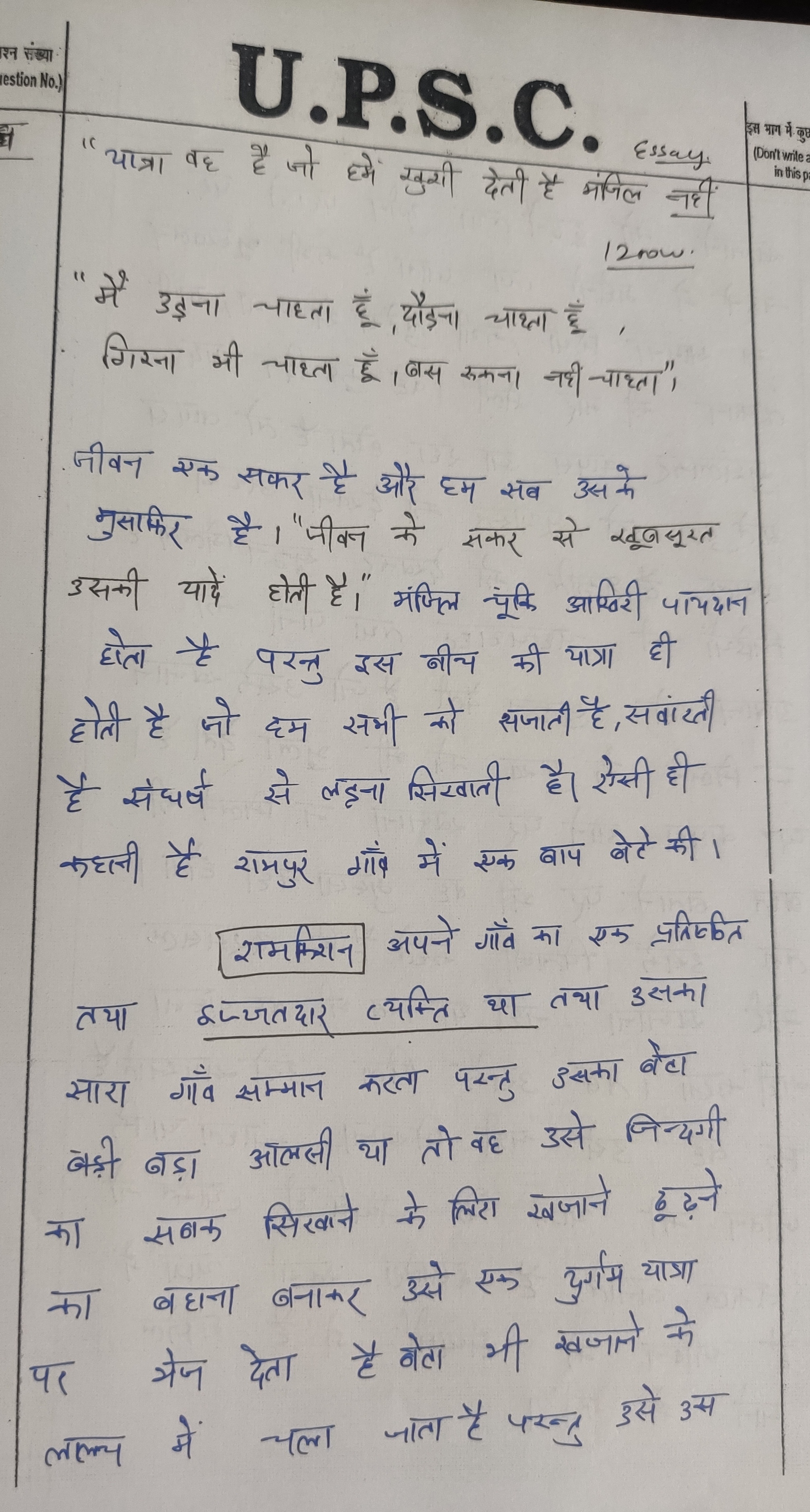 हमारे लक्ष्य की ओर यात्रा हमें व्यक्तिगत विकास, सीखने और आत्म–खोज का एक सुंदर अवसर प्रदान करती है। गौरतलब है कि चुनौतियों का सामना करने, गलतियाँ करने और उनसे महत्वपूर्ण अनुभव प्राप्त करने से हमें एक व्यक्ति के रूप में विकसित होने में मदद मिलती है। किसी लक्ष्य की ओर यात्रा अक्सर चुनौतियों, असफलताओं और आत्म–चिंतन के क्षणों से भरी होती है। इस प्रक्रिया के दौरान व्यक्तिगत विकास होता है, जिससे खुशी और संतुष्टि की व्यापक अनुभूति होती है। जब व्यक्ति किसी लक्ष्य को प्राप्त करने की ओर प्रयास करते हैं, तो उन्हें अपनी चुनौतियों का सामना करने, अपने सुविधाजनक क्षेत्र से बाहर निकलने और लचीलापन विकसित करने के लिए मजबूर होना पड़ता है। यह यात्रा एक परिवर्तनकारी अनुभव बन जाती है, जो उनके चरित्र को आकार देती है और उनके क्षितिज का विस्तार करती है। उदाहरण के लिए, एक प्रतियोगी परीक्षा में सफलता का लक्ष्य रखने वाला यूपीएससी उम्मीदवार शुरू में केवल परीक्षा पास करने पर ध्यान केंद्रित कर सकता है। हालाँकि, यह तैयारी, अध्ययन, विभिन्न विषयों से जुड़ने और नए विचारों की खोज करना जिससे वह वास्तव में बौद्धिक रूप से विकसित हो और अपने समग्र विकास और व्यापक व्यक्तित्व विकास को जोड़कर अपने क्षितिज का विस्तार कर सके, जो उन्हें जीवन के उतार-चढ़ाव वाले दौर में खुद को क्रियान्वित करने में मदद करेगा, चाहे वे अंततः उक्त परीक्षा को पास कर सकें या नहीं। स्टीव जॉब्स ने एक बार स्टैनफोर्ड यूनिवर्सिटी में एक भाषण में कहा था, “यात्रा ही पुरस्कार है।” उन्होंने केवल विशिष्ट लक्ष्यों को प्राप्त करने पर ध्यान केंद्रित करने के बजाय अपने जुनून को बनाये रखने और अपने सपनों को जिन्दा रखने की प्रक्रिया में खुशी खोजने के महत्व पर जोर दिया। इस प्रकार, यह यात्रा आत्म–खोज और विकास को उत्प्रेरित करती है , अंततः हमें मंजिल से भी अधिक खुशी प्रदान करती है।