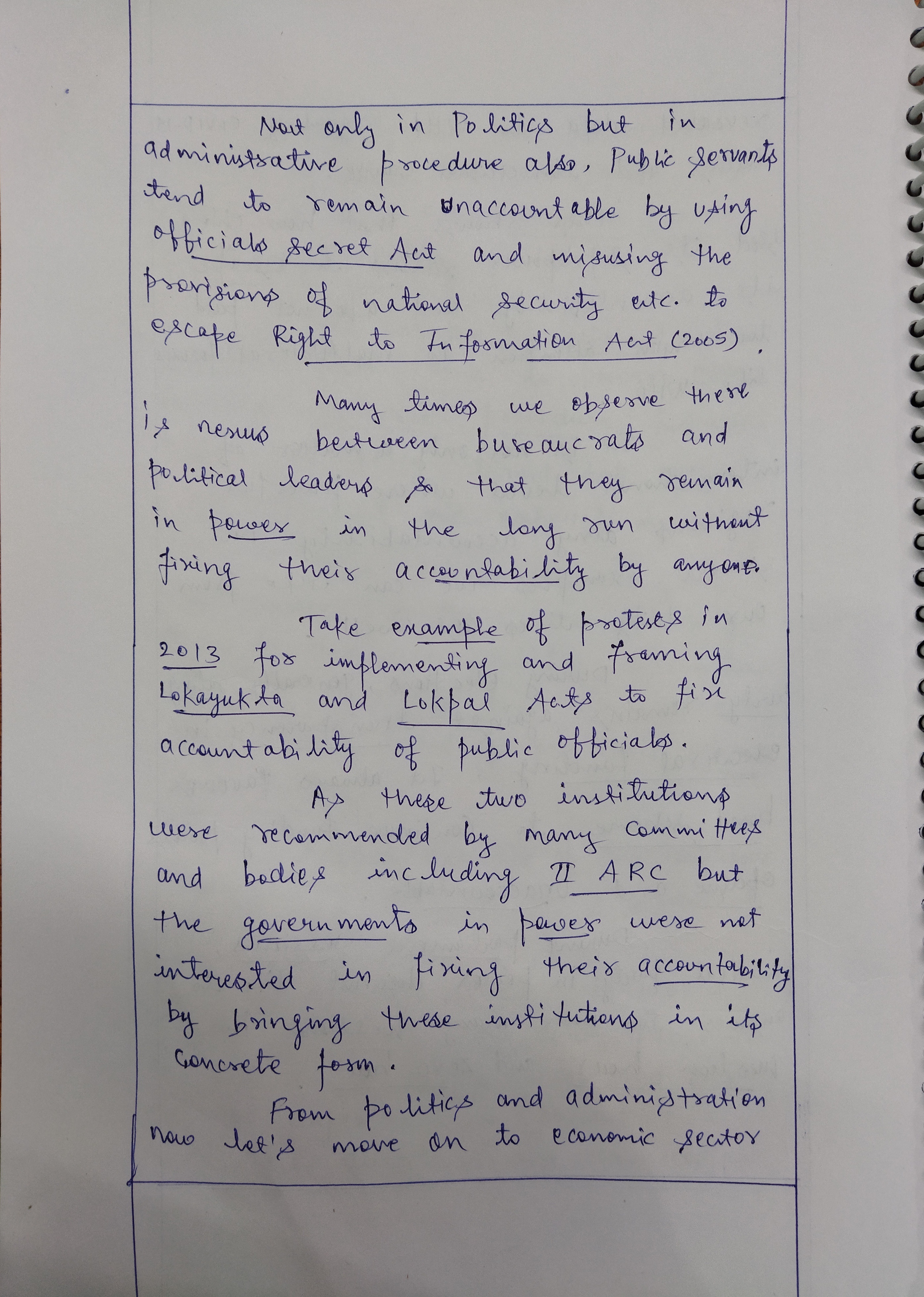 One key reason for the resistance to accountability is rooted in self-interest and self-preservation. Individuals in positions of power may fear the consequences of being held accountable, such as loss of reputation, legal repercussions, or the erosion of their authority. As a result, they may actively resist measures that seek to hold them accountable. For instance, During the Indian anti-corruption movement in 2011, politicians resisted the implementation of the Lokpal Bill, fearing accountability. They opposed measures to create an independent ombudsman to investigate corruption allegations against public officials, highlighting their reluctance to be held accountable.